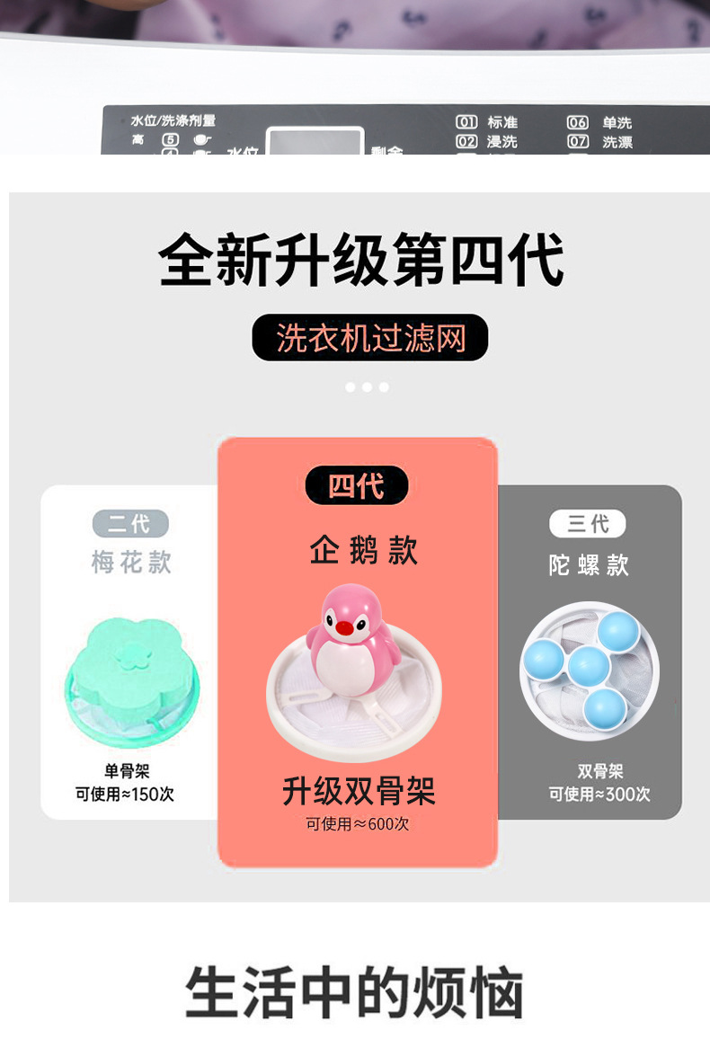 企鹅洗衣机洗衣过滤网通用型神器吸毛滤清洁网兜滚筒式洗护球
