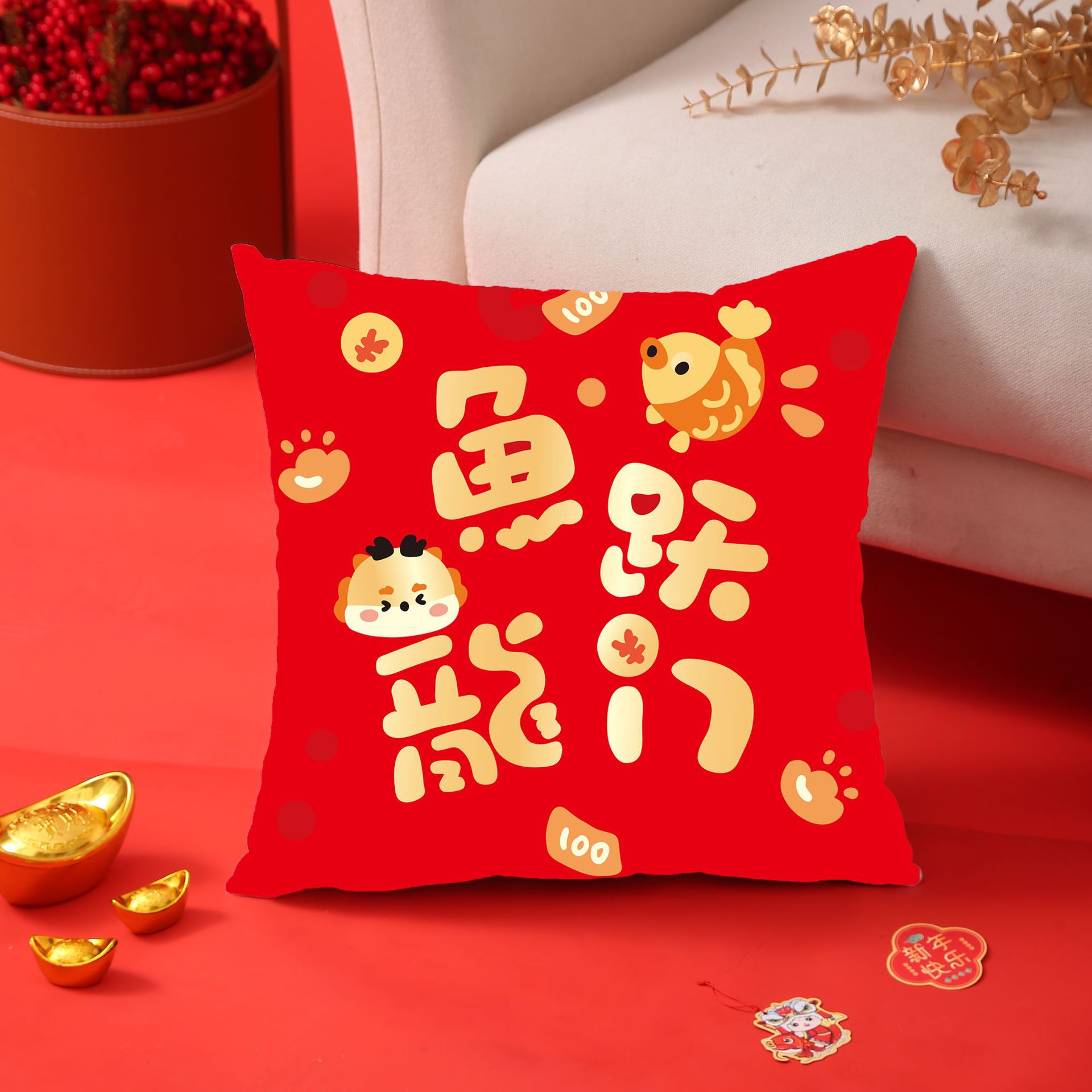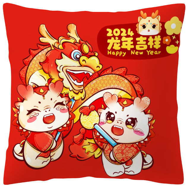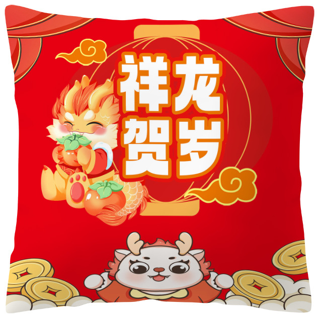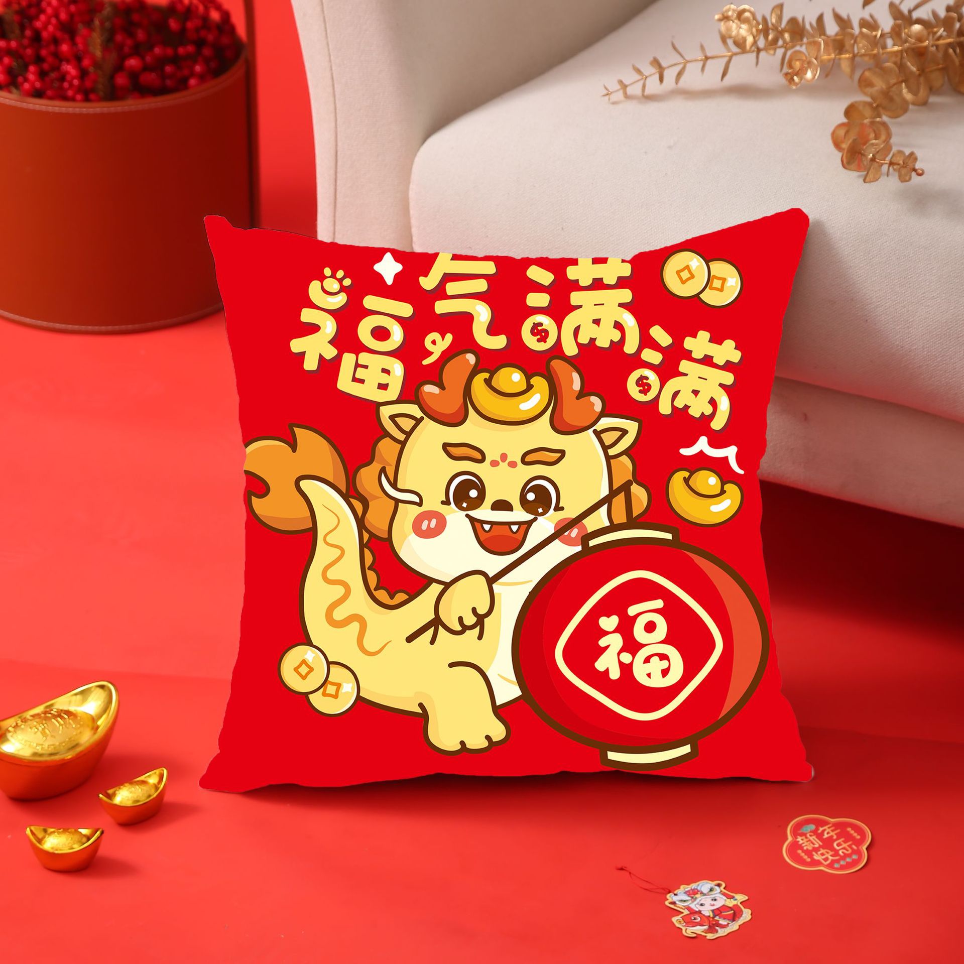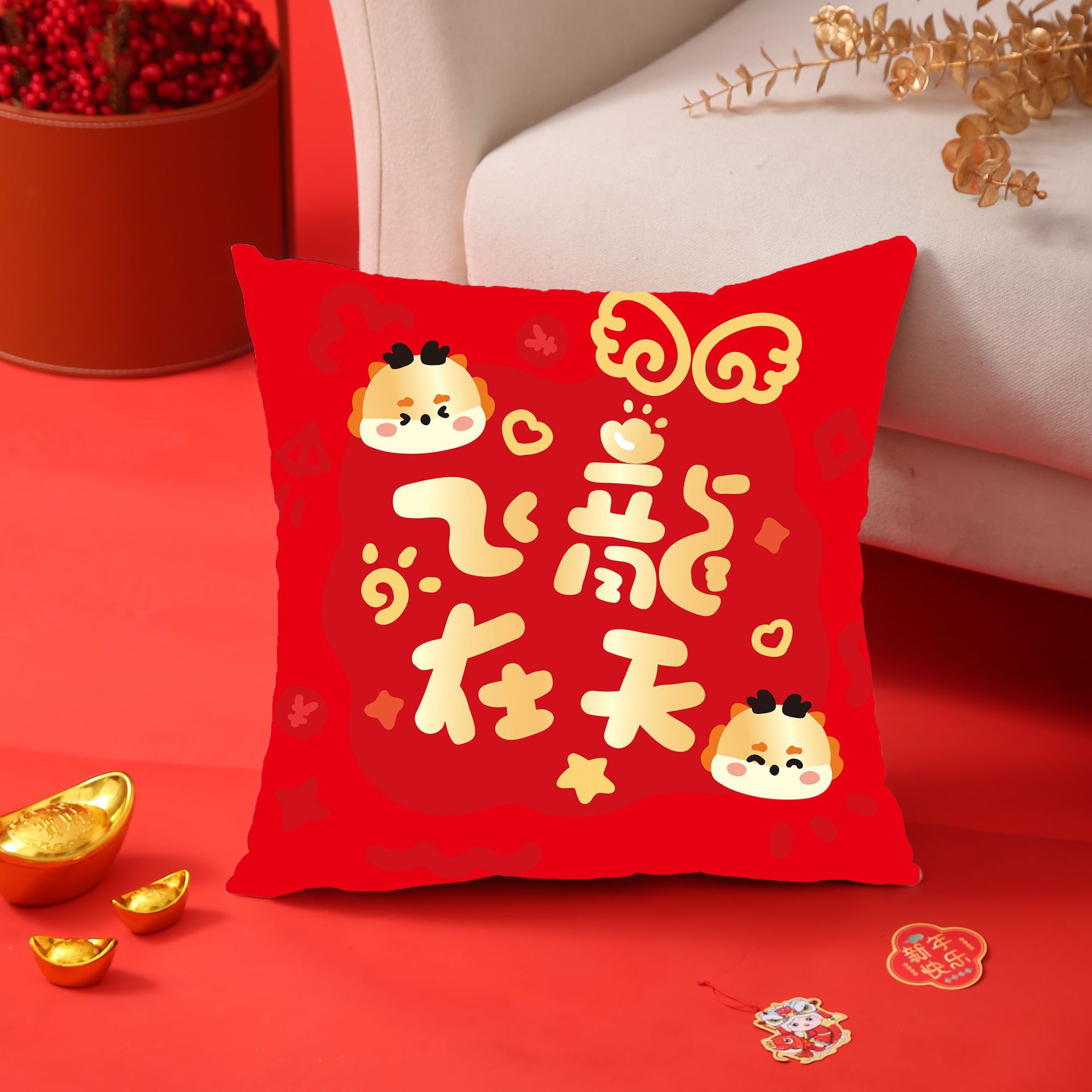 龙年抱枕批发爆款新年抱枕套企业logo年会礼品沙发靠枕双面印图