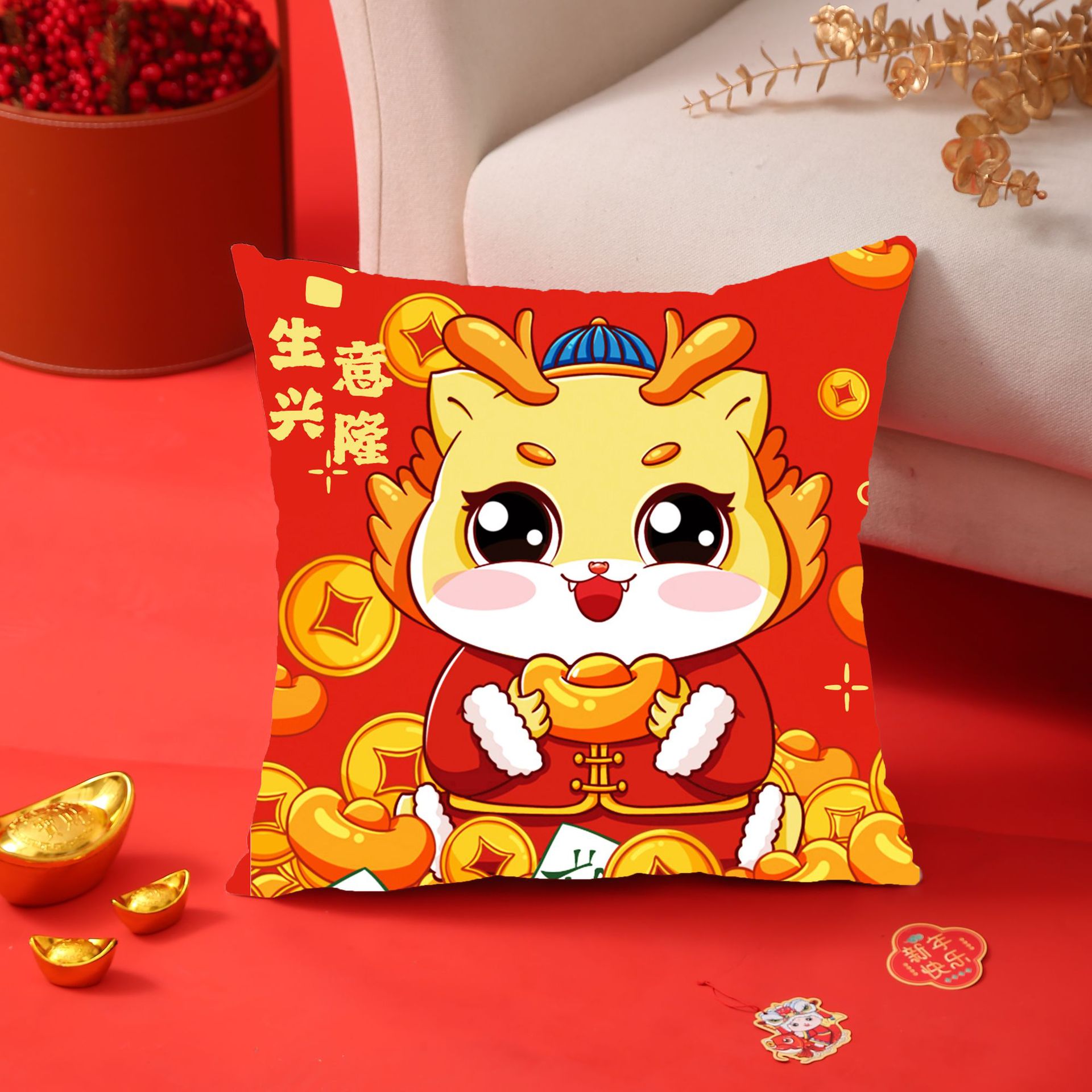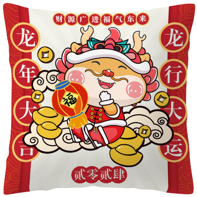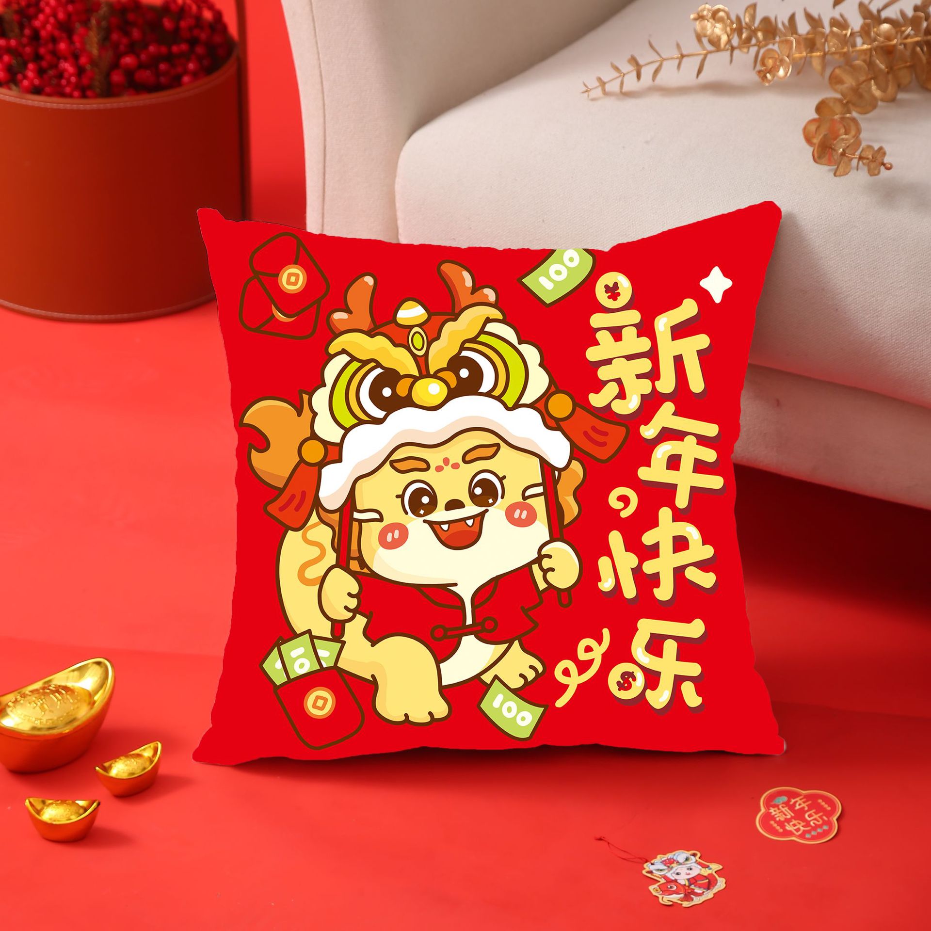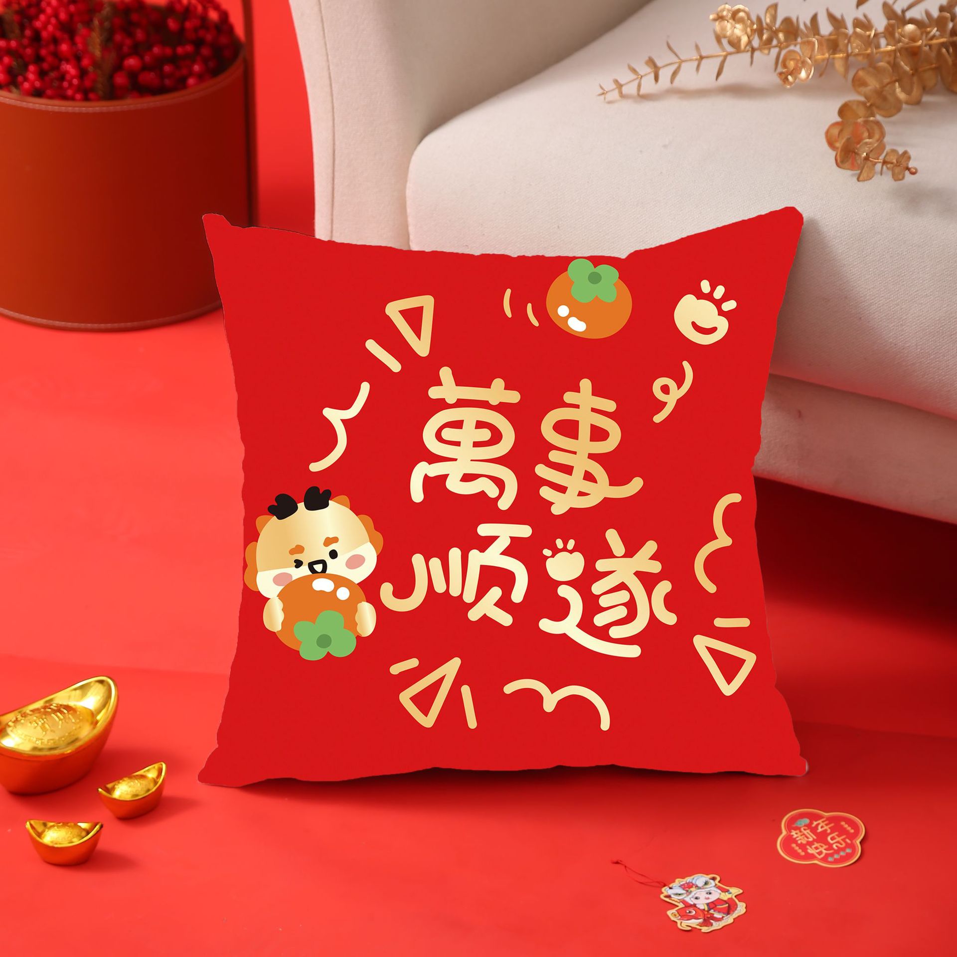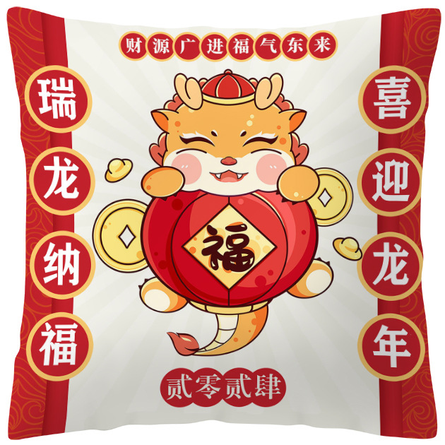龙年抱枕批发爆款新年抱枕套企业logo年会礼品沙发靠枕双面印图