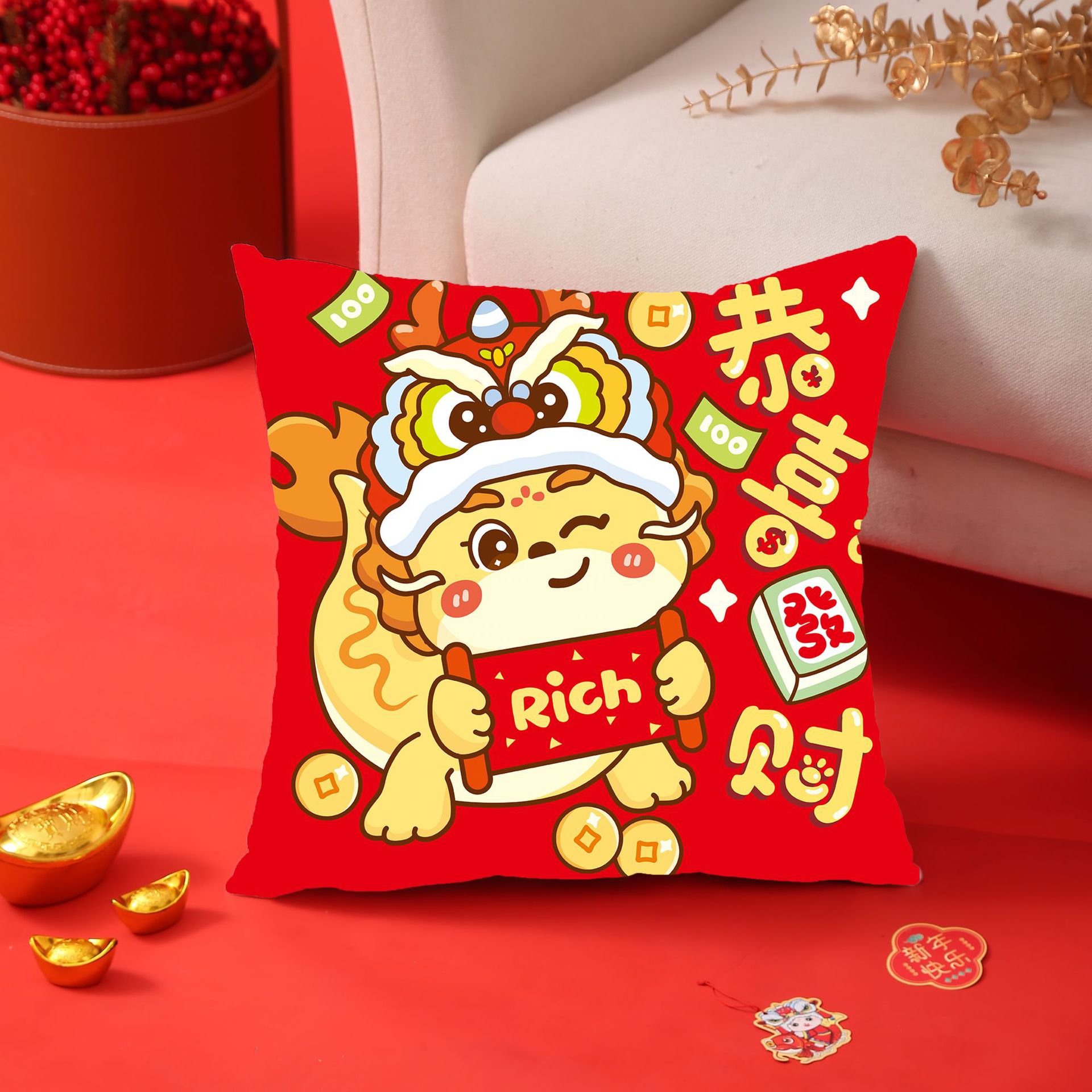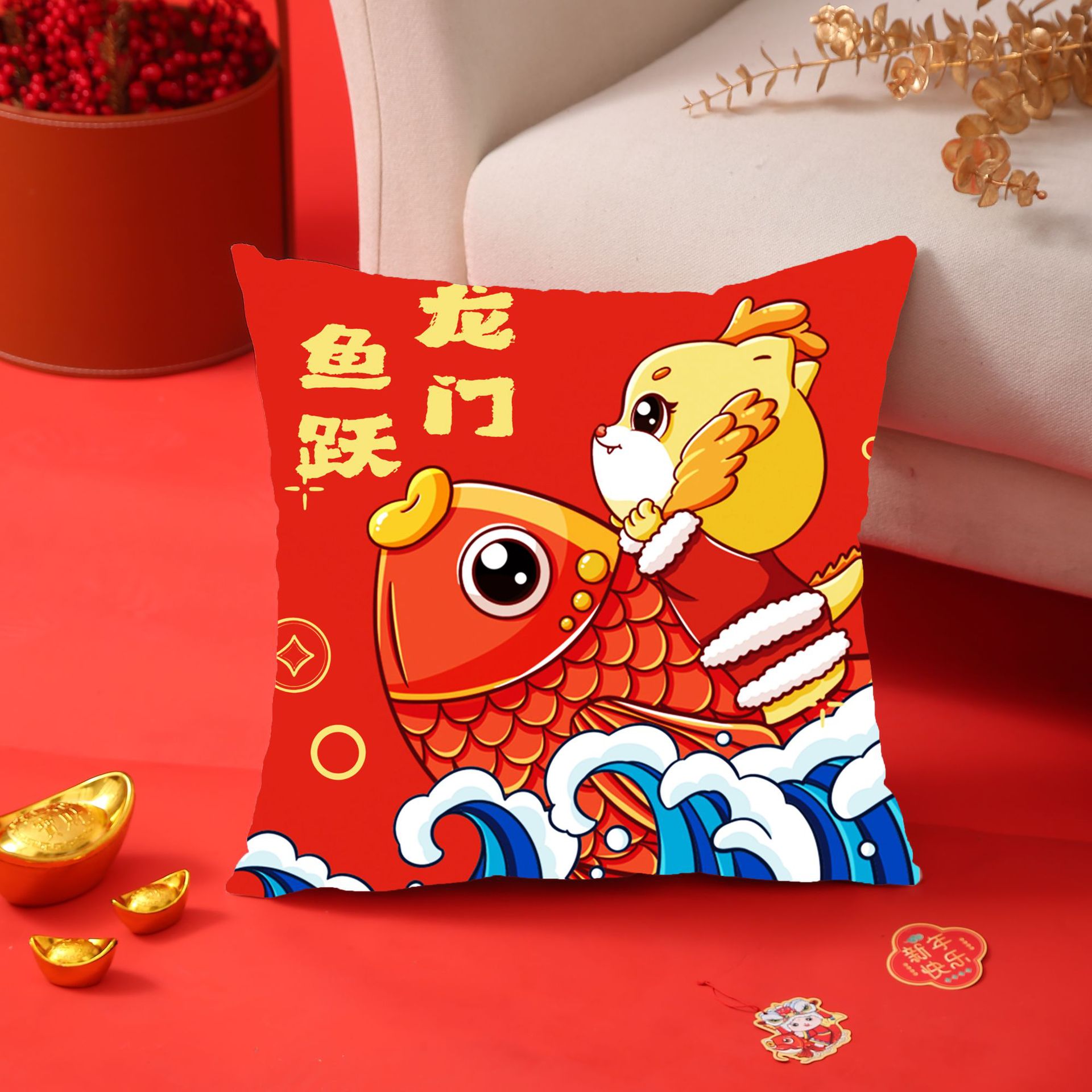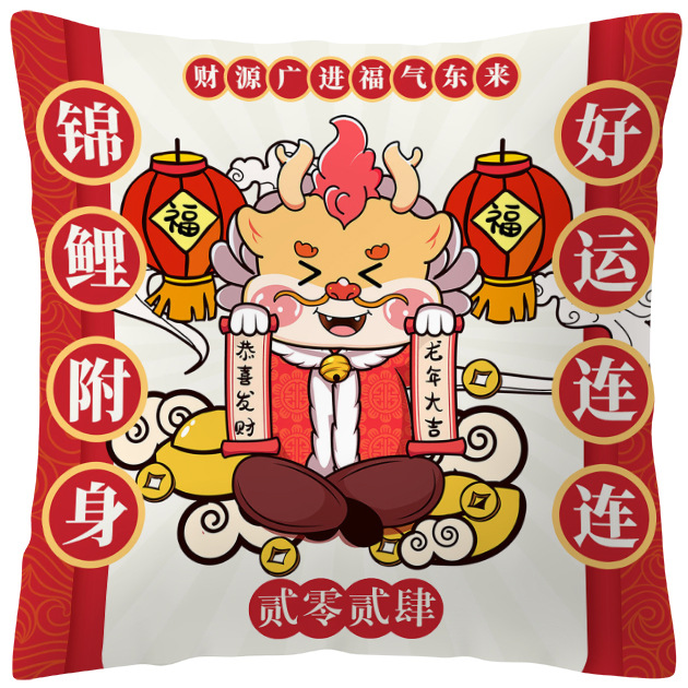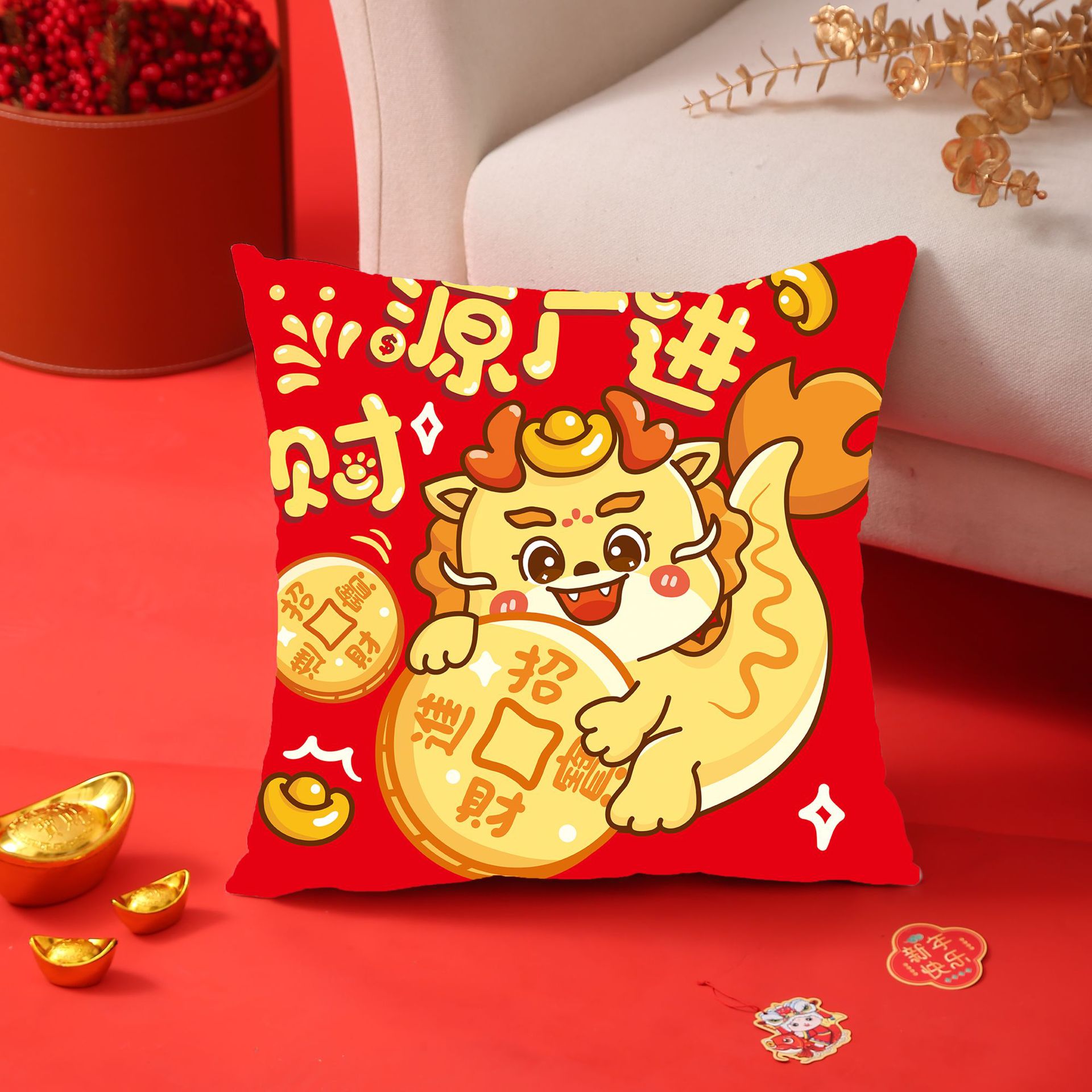 龙年抱枕批发爆款新年抱枕套企业logo年会礼品沙发靠枕双面印图