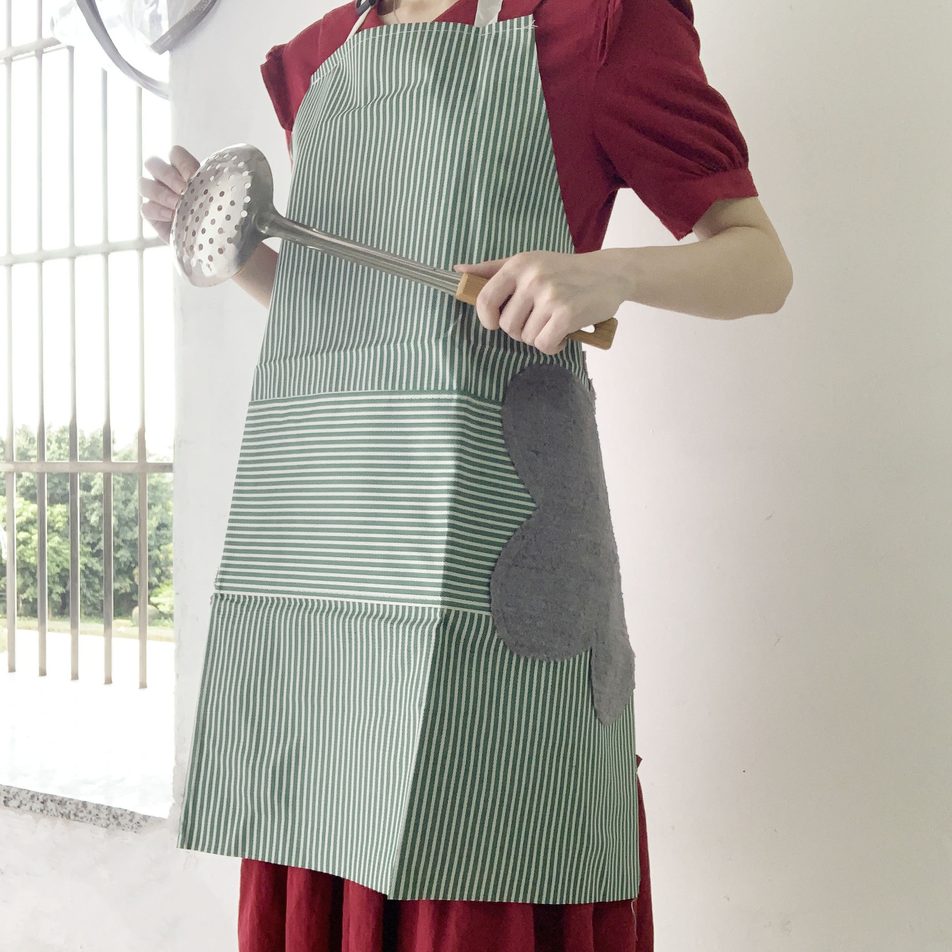 可擦手围裙亚麻围裙系带无袖围裙家居大口袋擦手巾防水围裙