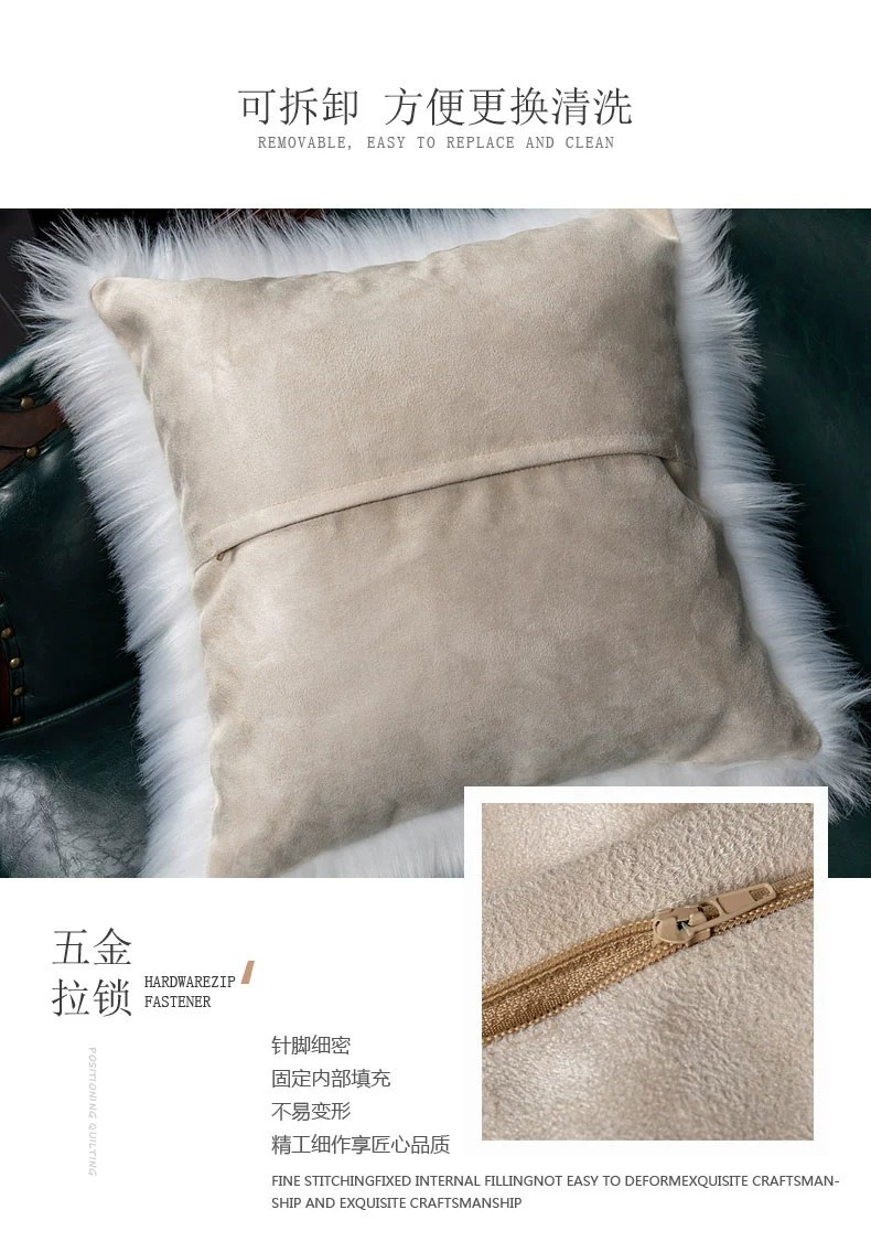 跨境 家用简约长毛绒 抱枕套北欧仿羊毛靠垫毛绒沙发床头枕