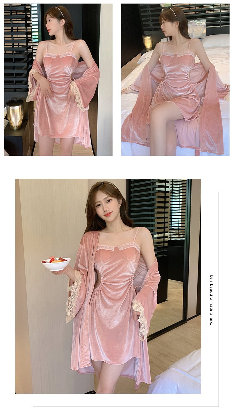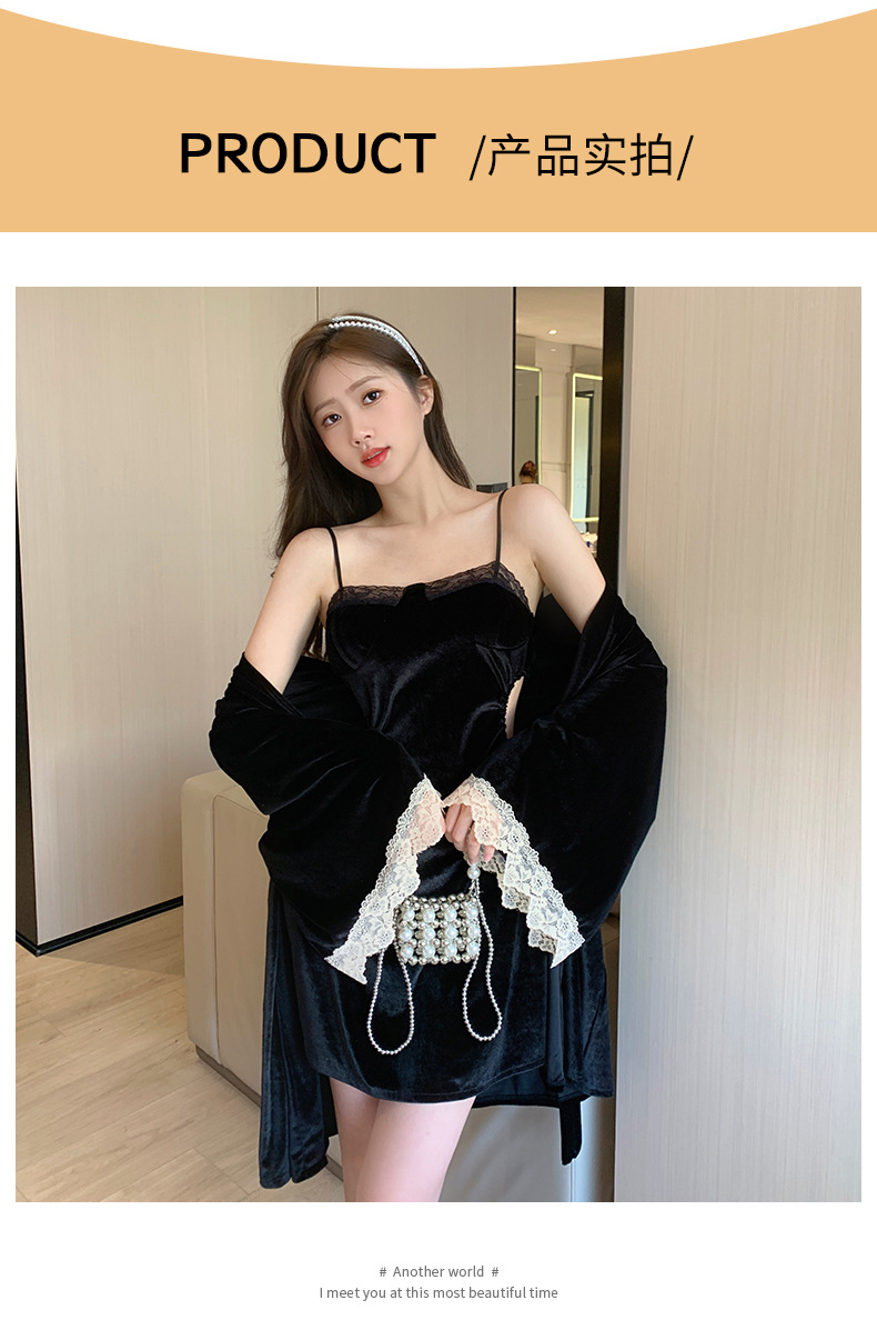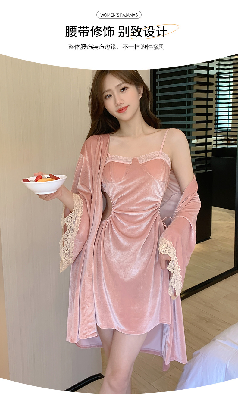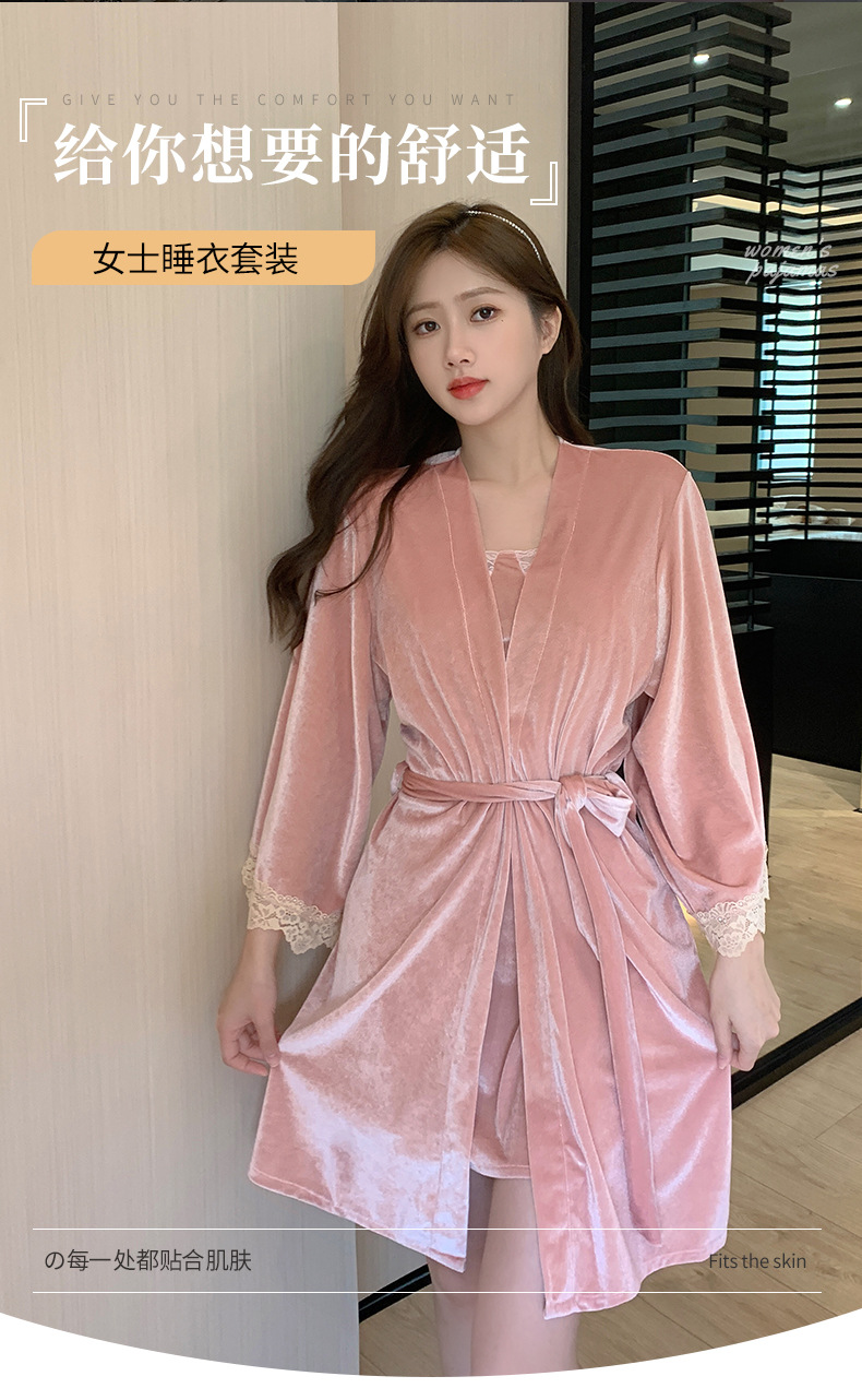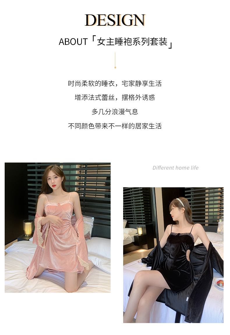 性感纯欲风吊带裙睡衣 多色金丝绒女士睡衣 吊裙睡袍两件套家居服