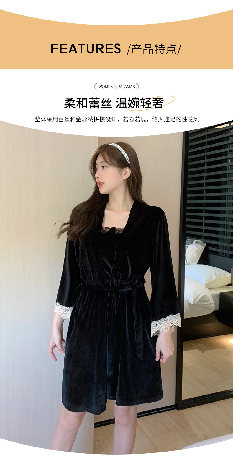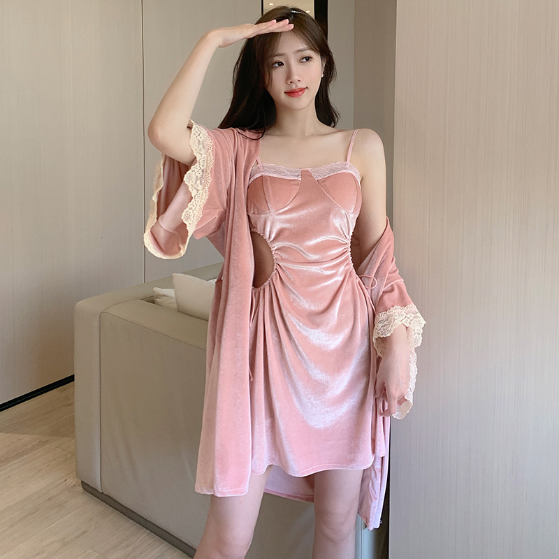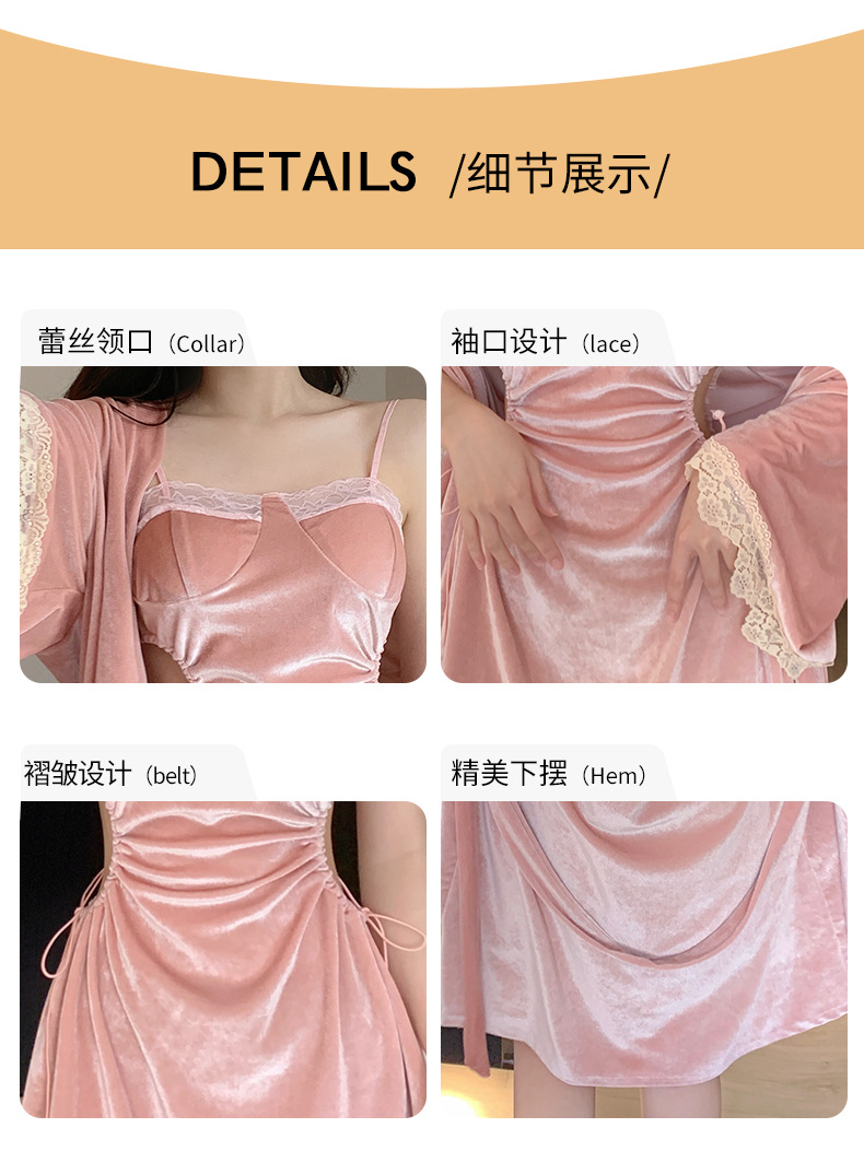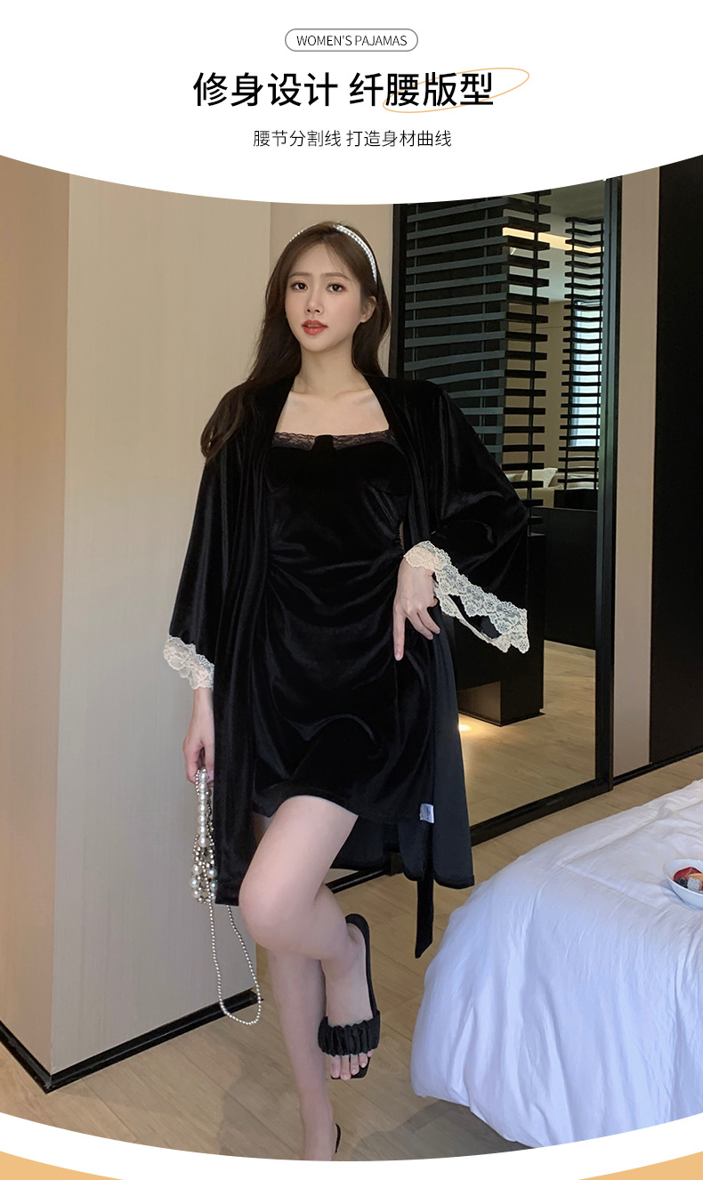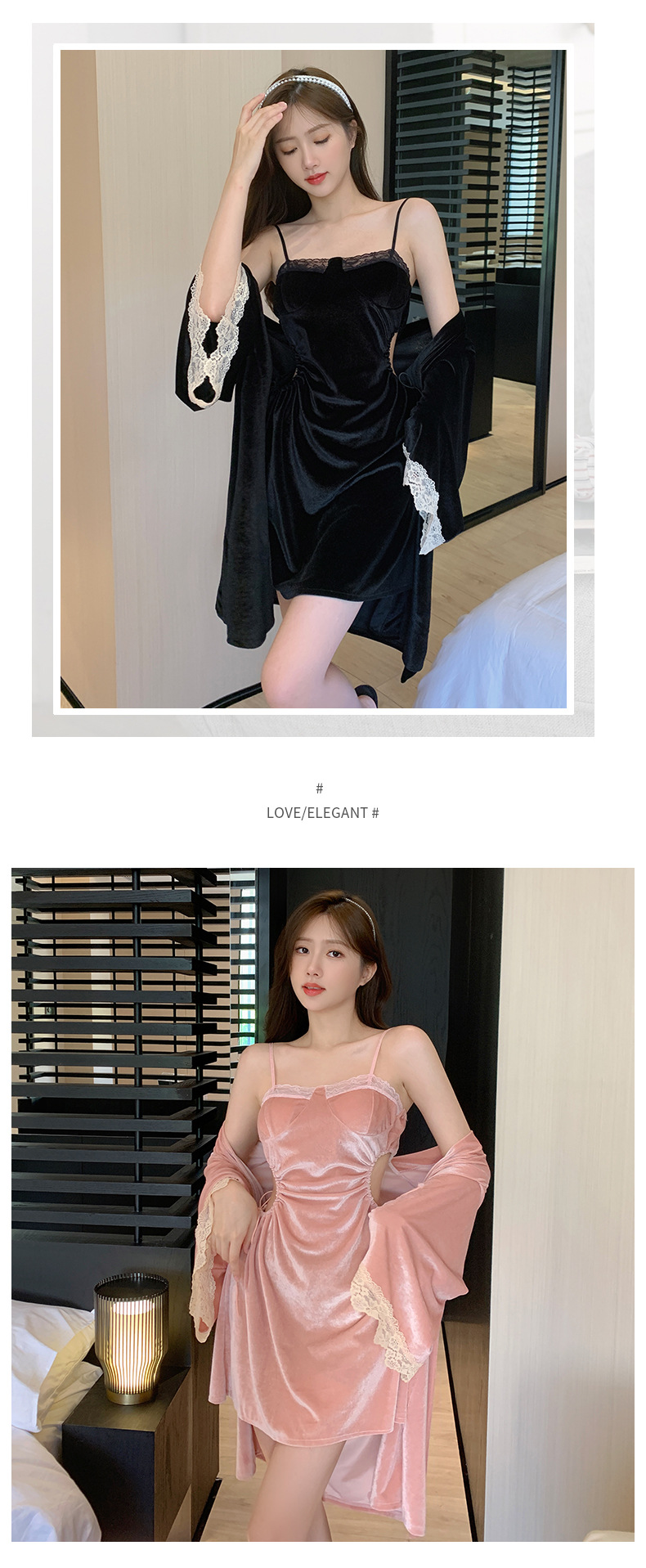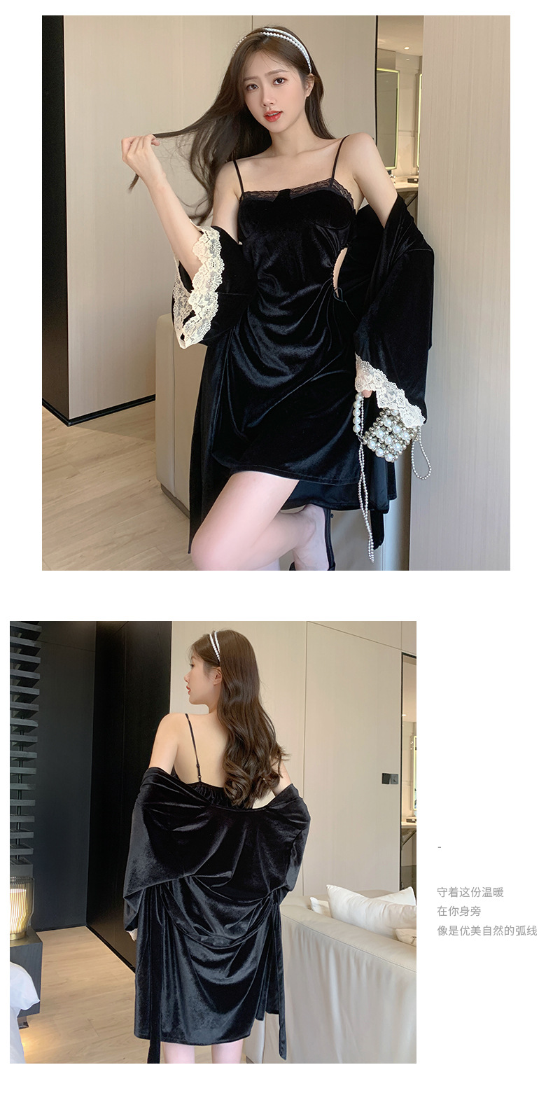 性感纯欲风吊带裙睡衣 多色金丝绒女士睡衣 吊裙睡袍两件套家居服