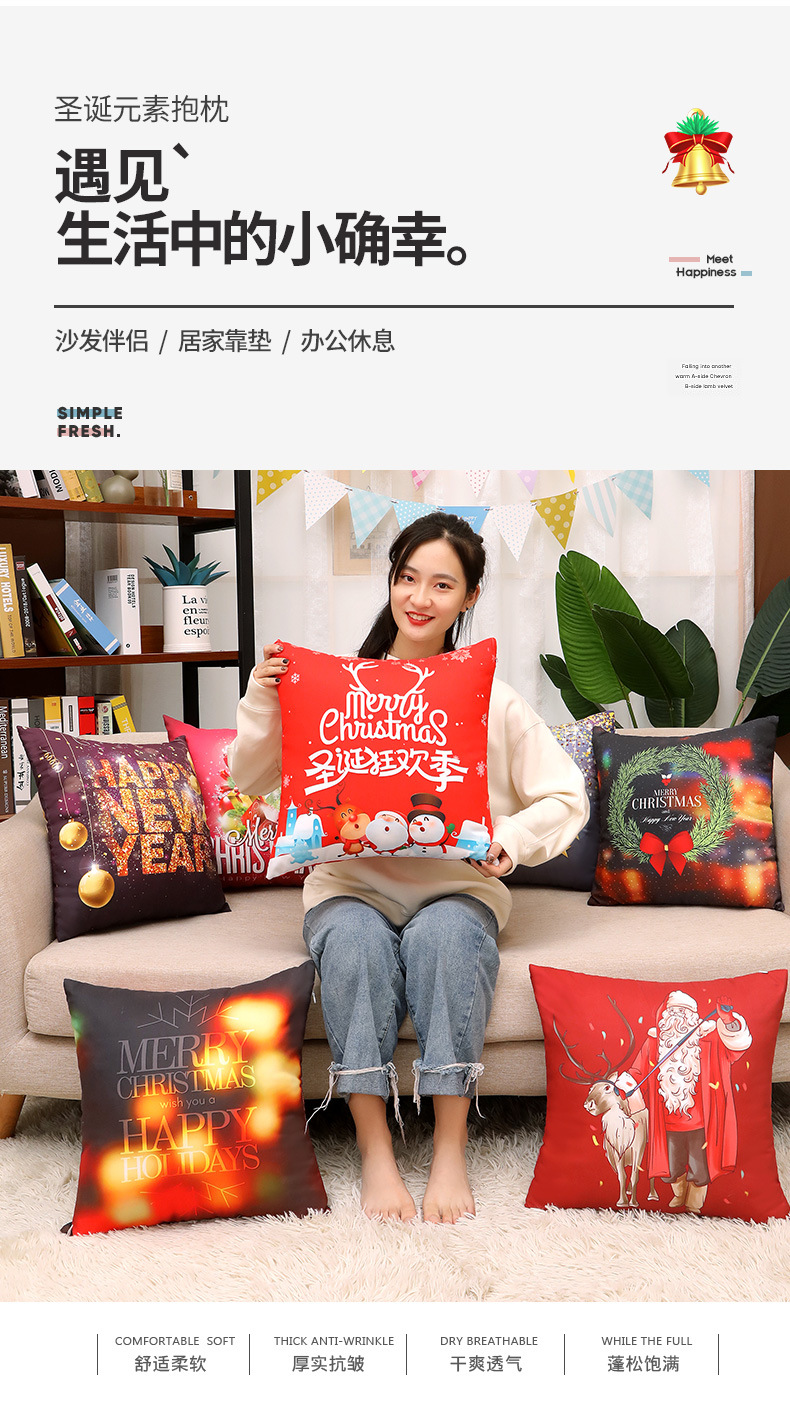 跨境新款节日抱枕 北欧沙发靠垫腰靠长圣诞节装饰抱枕套Christmas
