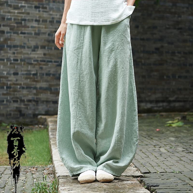 24春夏棉麻女装新品念百秀纺国风禅意复古显瘦水洗休闲灯笼裤长裤