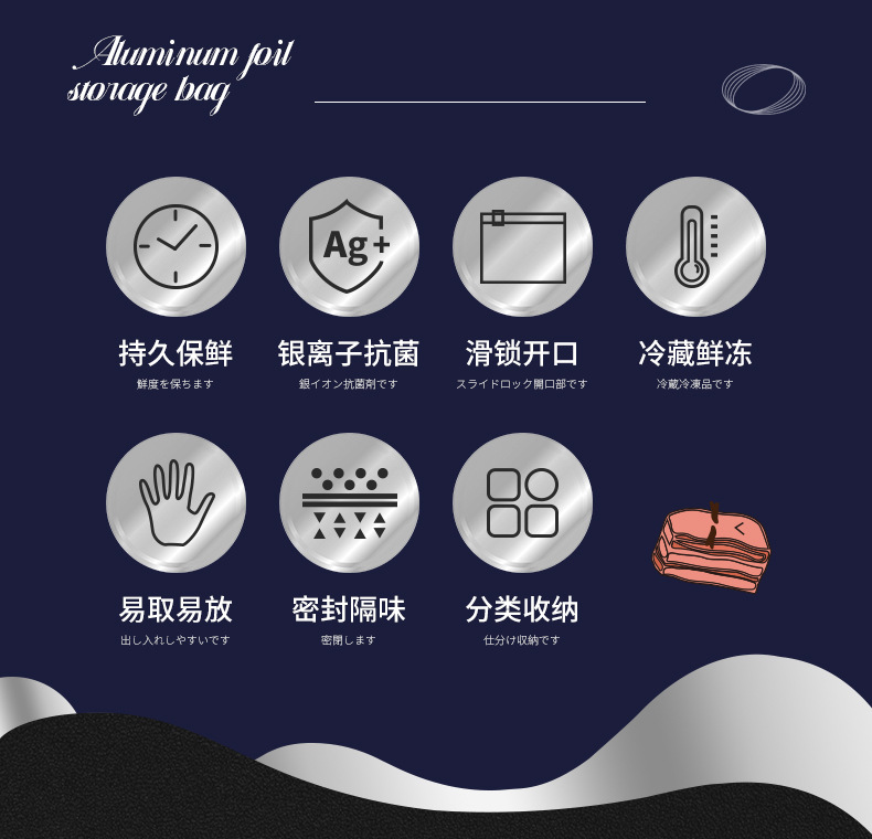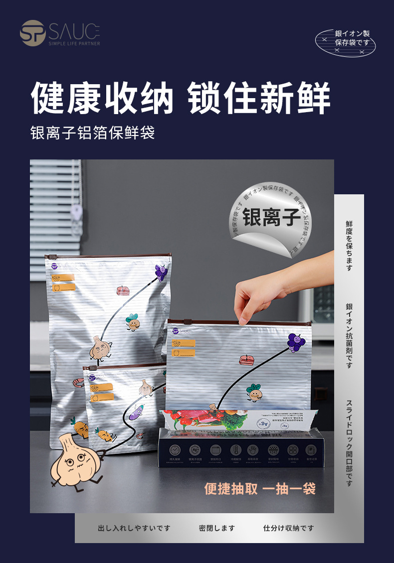 日本铝箔保鲜袋食品级加厚密封家用拉链式冰箱专用冷冻封口密实袋
