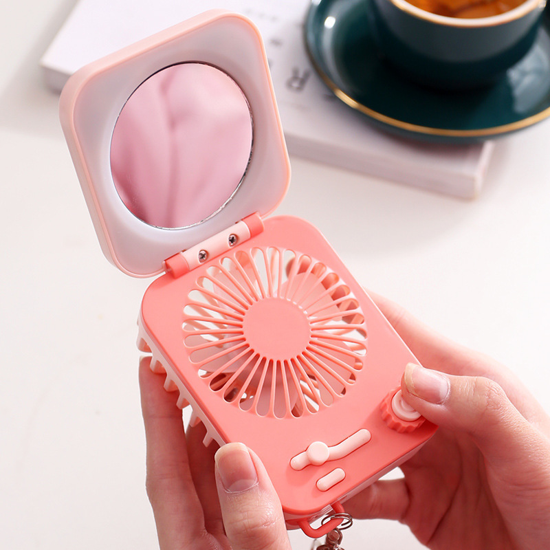 多用复古收音机美妆镜补光灯USB风扇学生手持桌面口袋迷你风扇