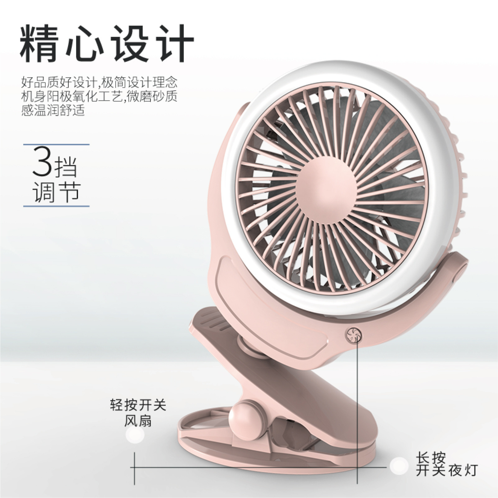 新款创意手持便携迷你办公室桌面小风扇夹子夜灯学生宿舍USB风扇