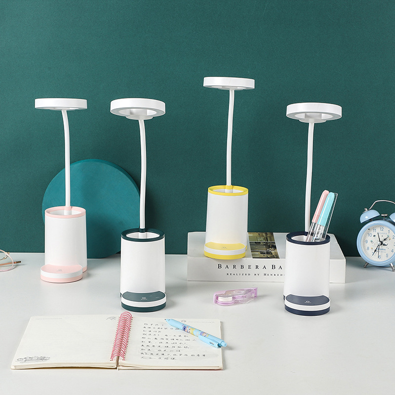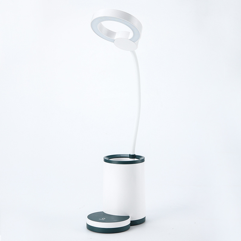 少女心圆形镂空笔筒台灯 手机架LED充电3档调光触摸小夜灯DIY贴纸
