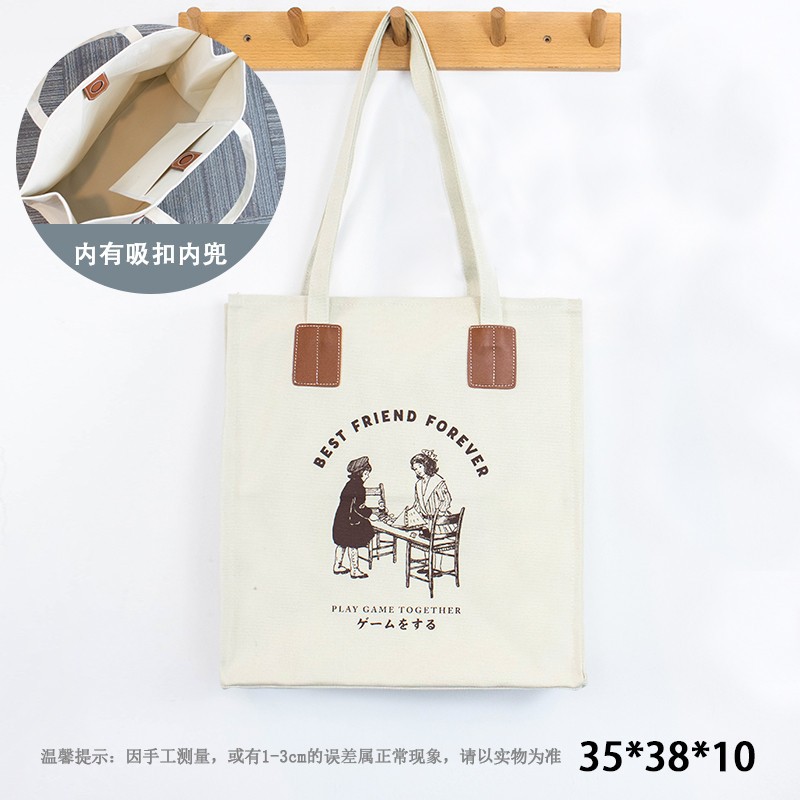 帆布包定 制2022新款女夏日系拼接托特包大容量时尚购物袋帆布袋