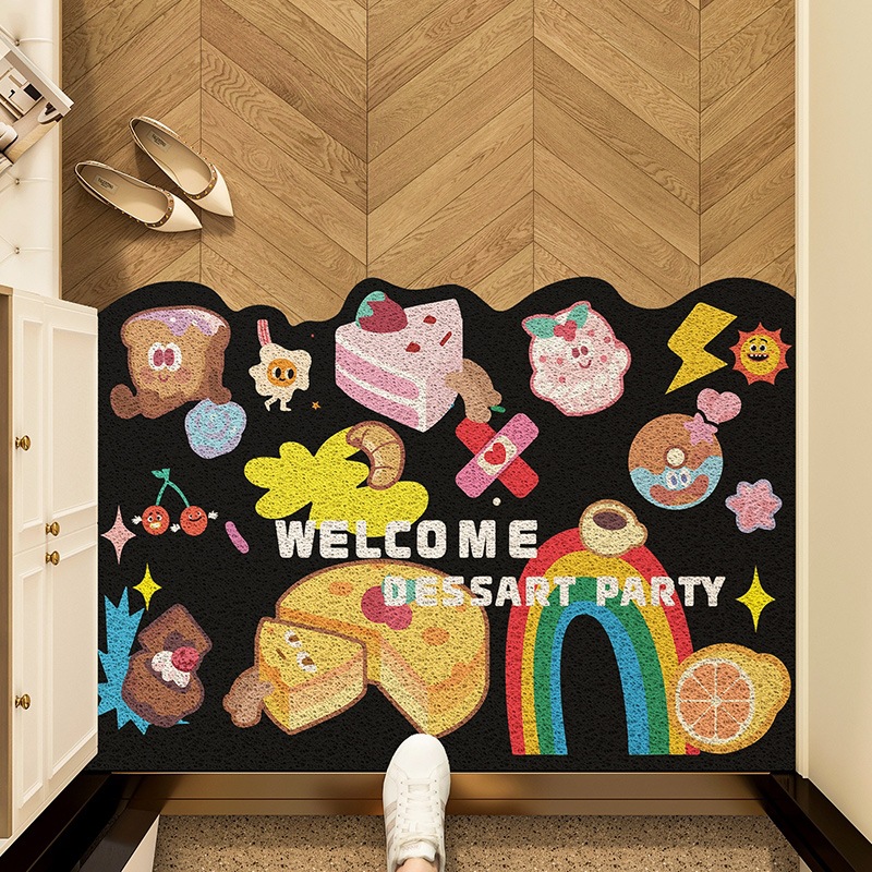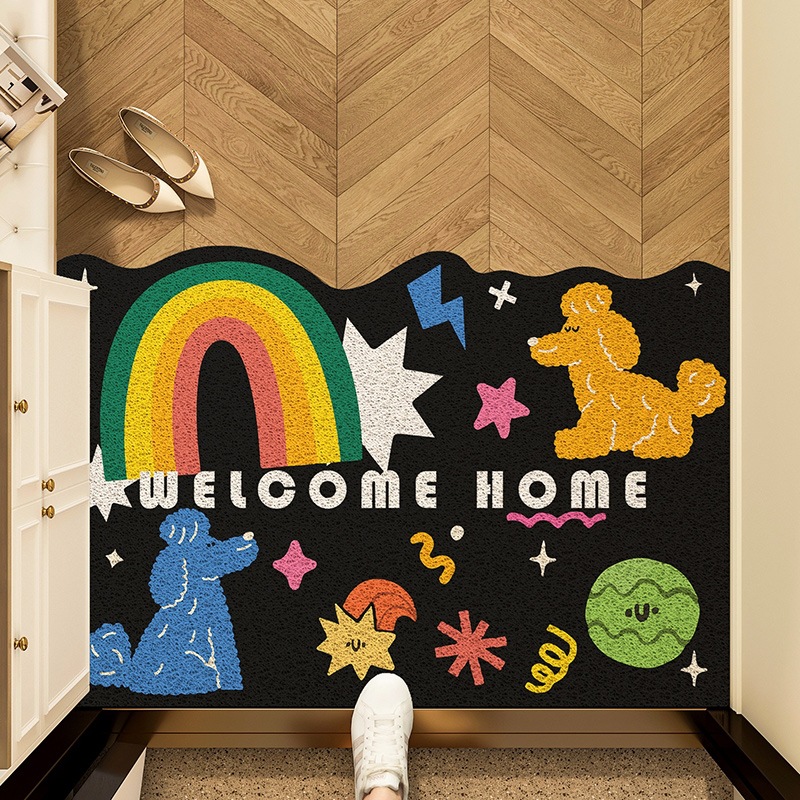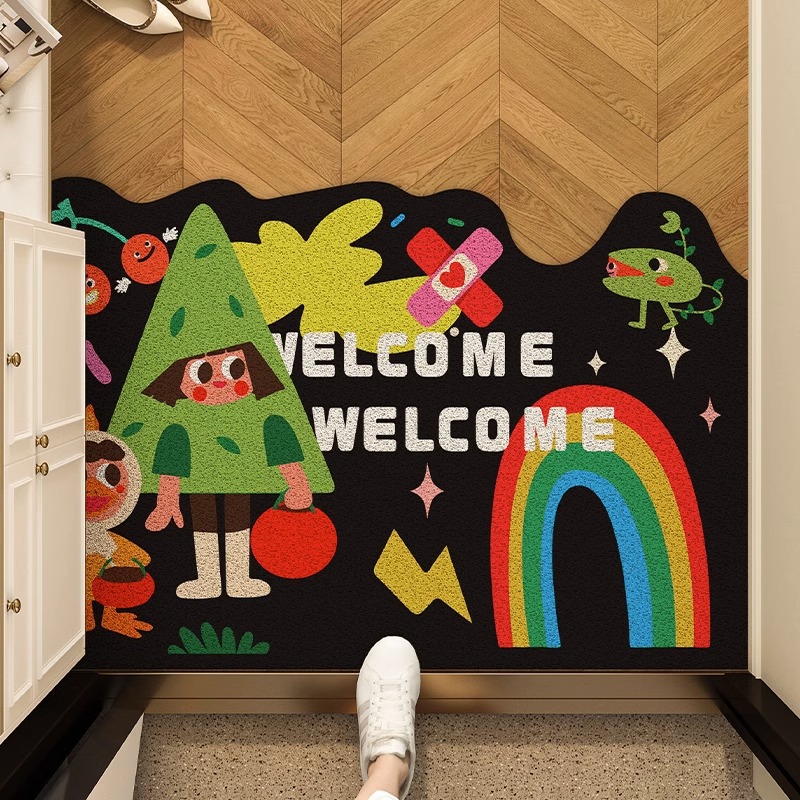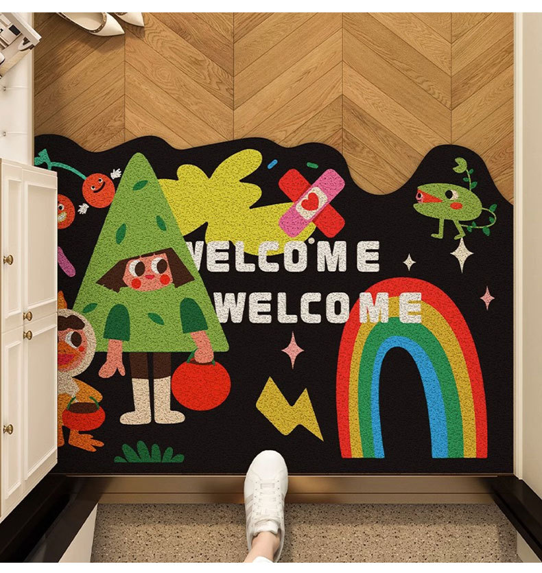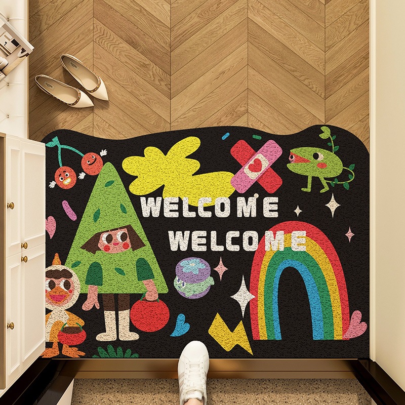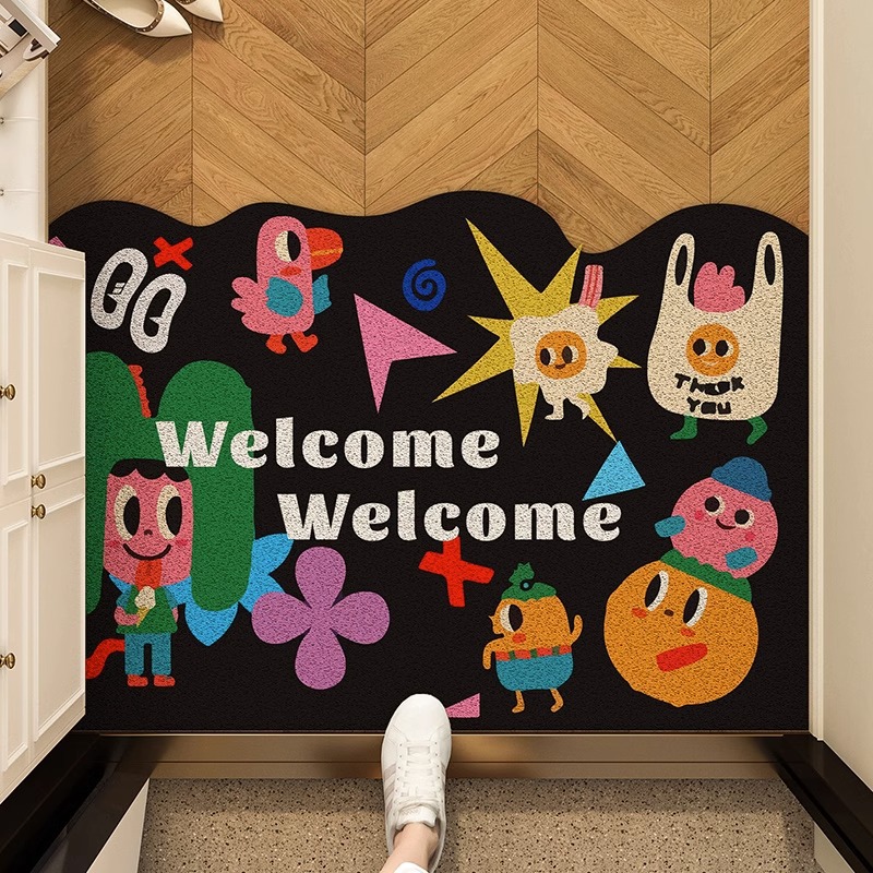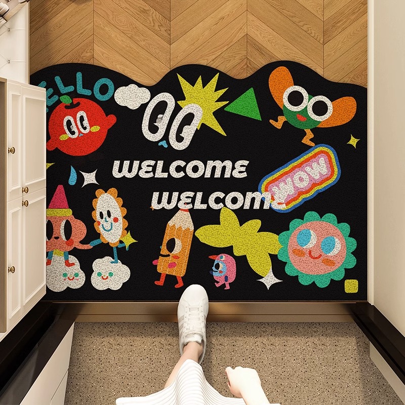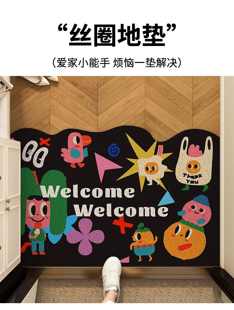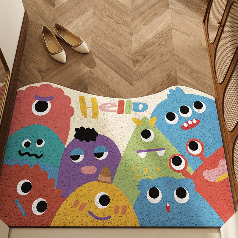可爱卡通小怪兽耐脏门垫玄关可剪裁丝圈地垫家用门口防滑入户地垫
