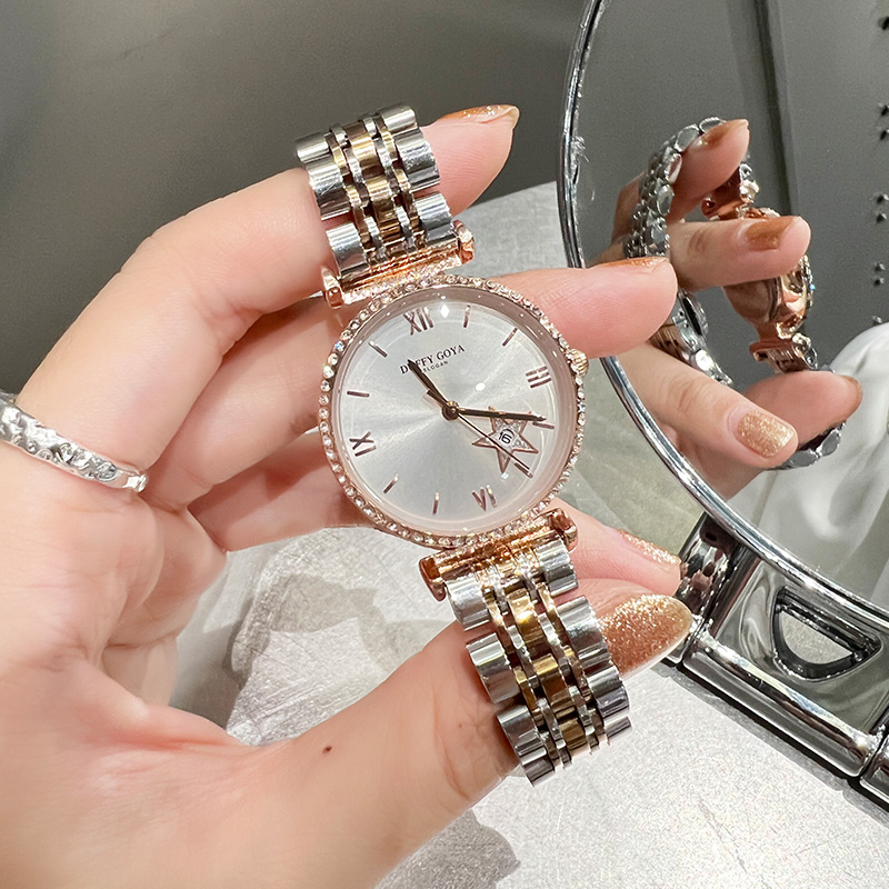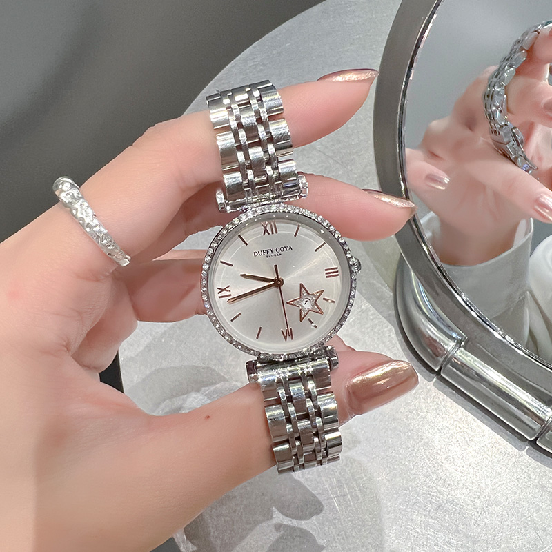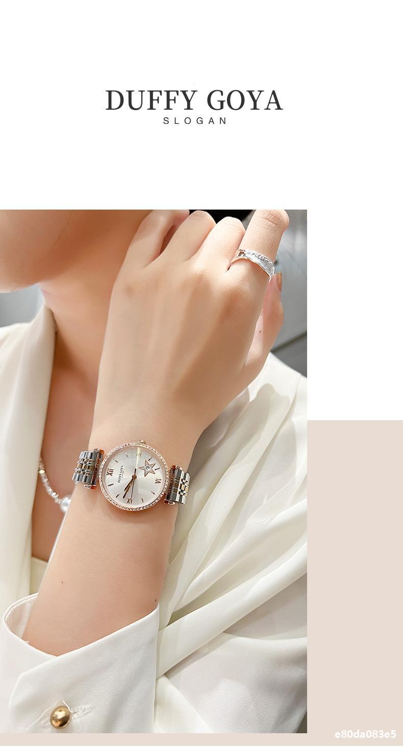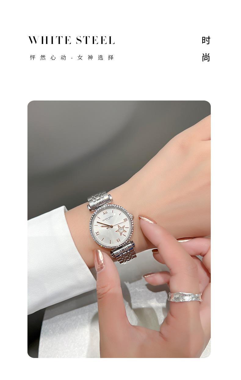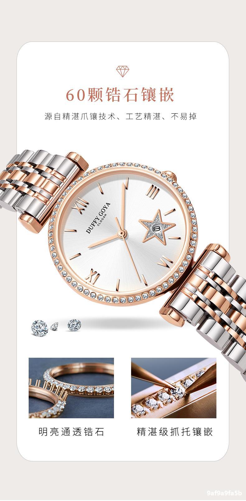 瑞士女士2023新款名牌女式学生轻奢小众镂空满钻气质防水气质手表