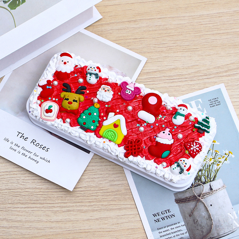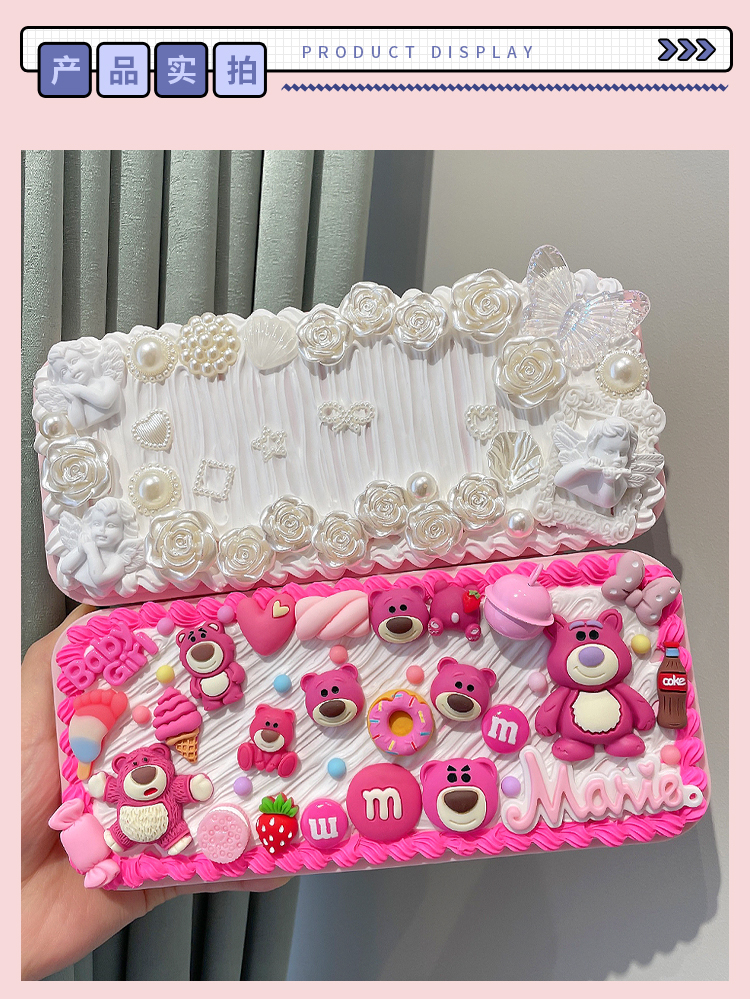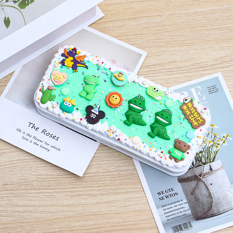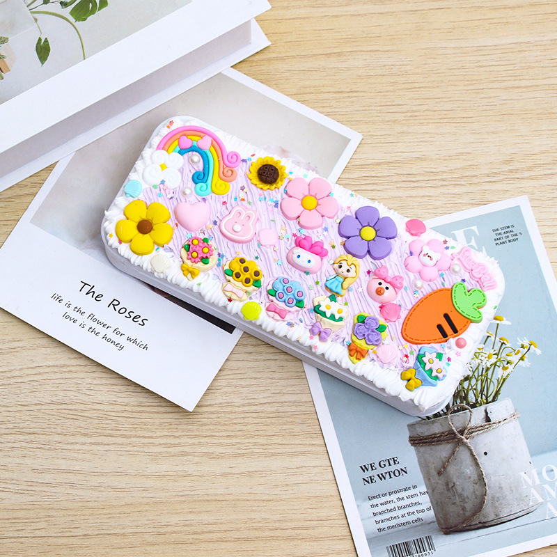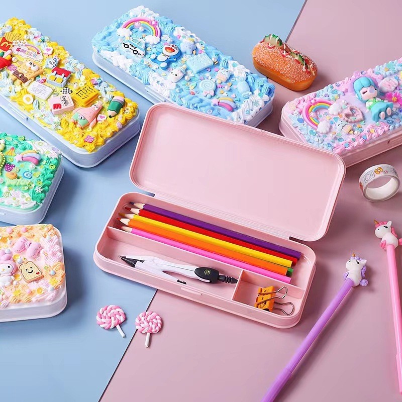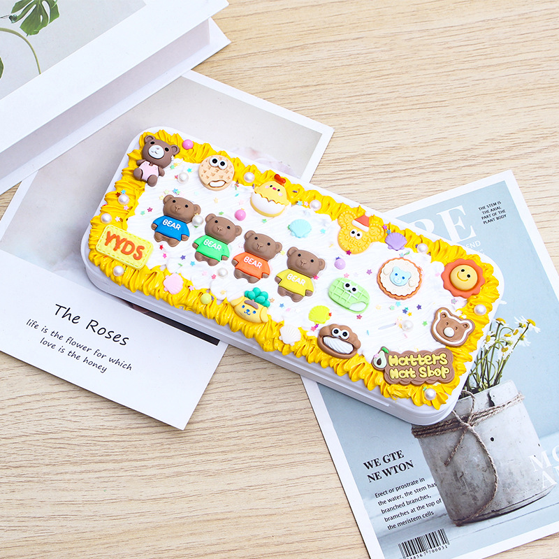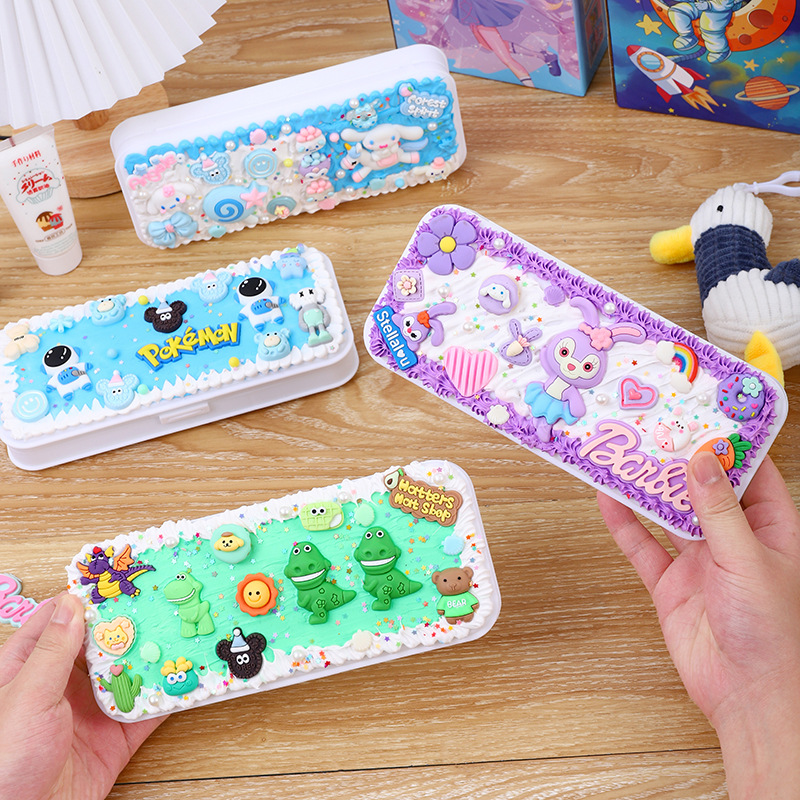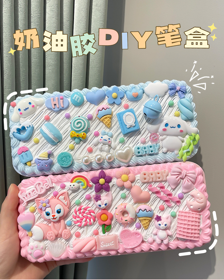 DIY创意网红奶油胶文具盒 可爱配饰自制铅笔盒儿童益智铅笔盒批发