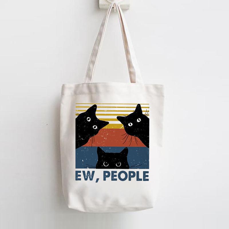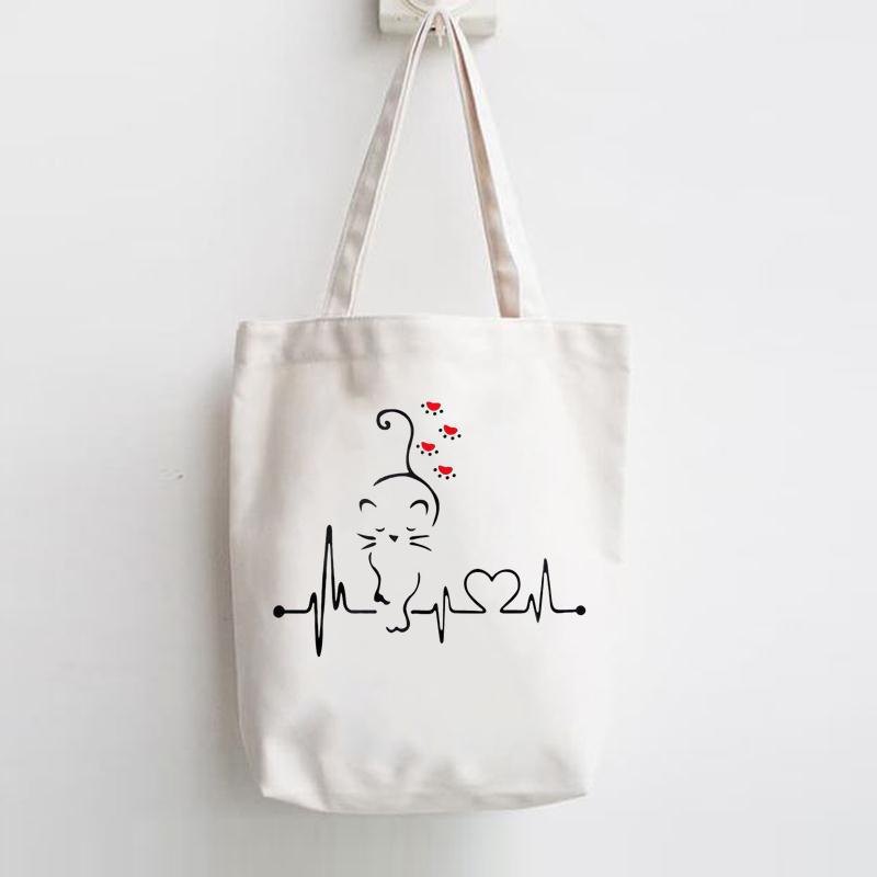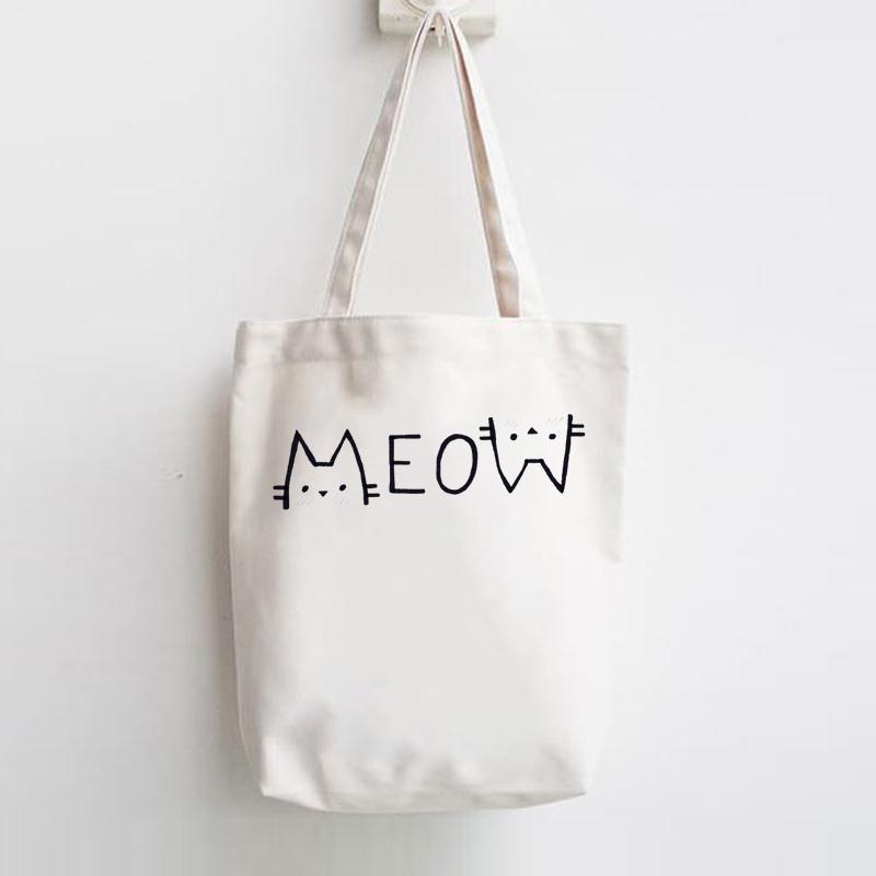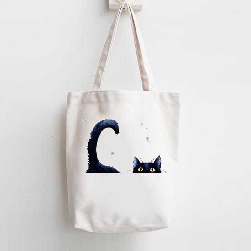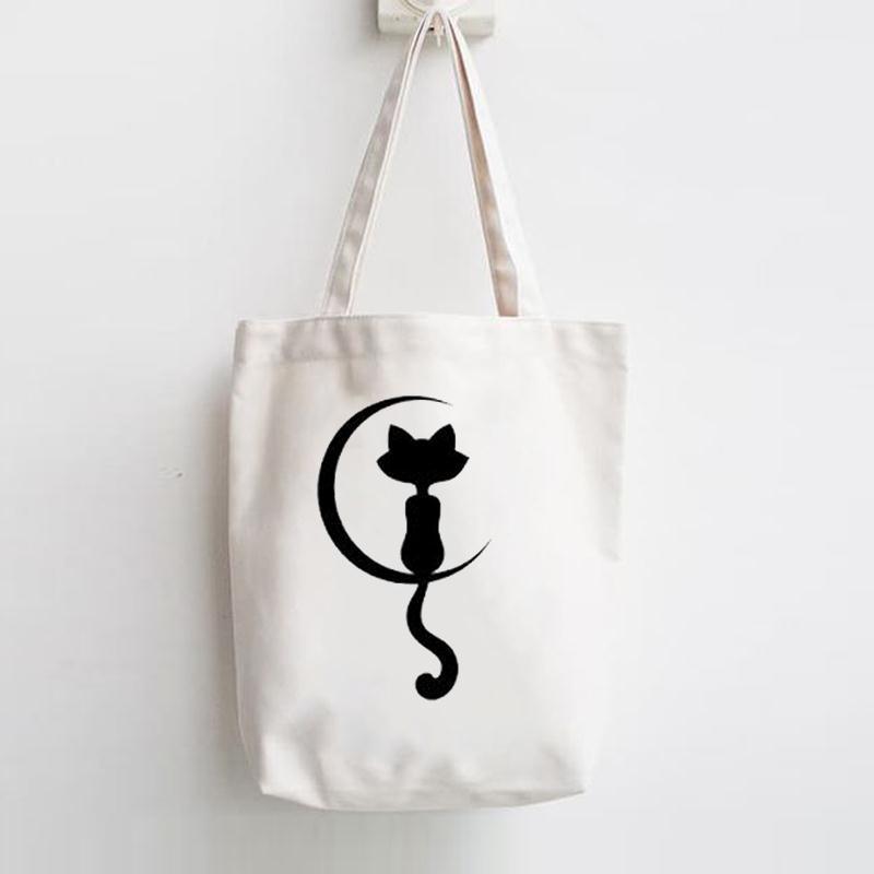 跨境外贸Letter可爱黑猫印花帆布包原宿单肩包手提袋购物袋亚马逊