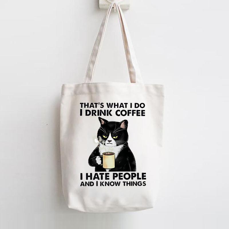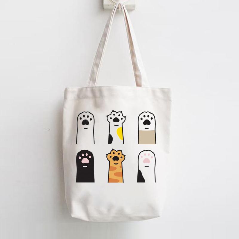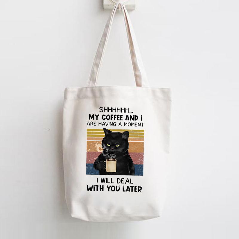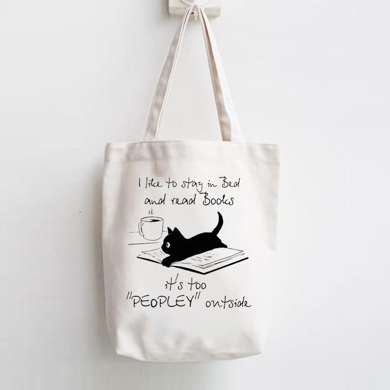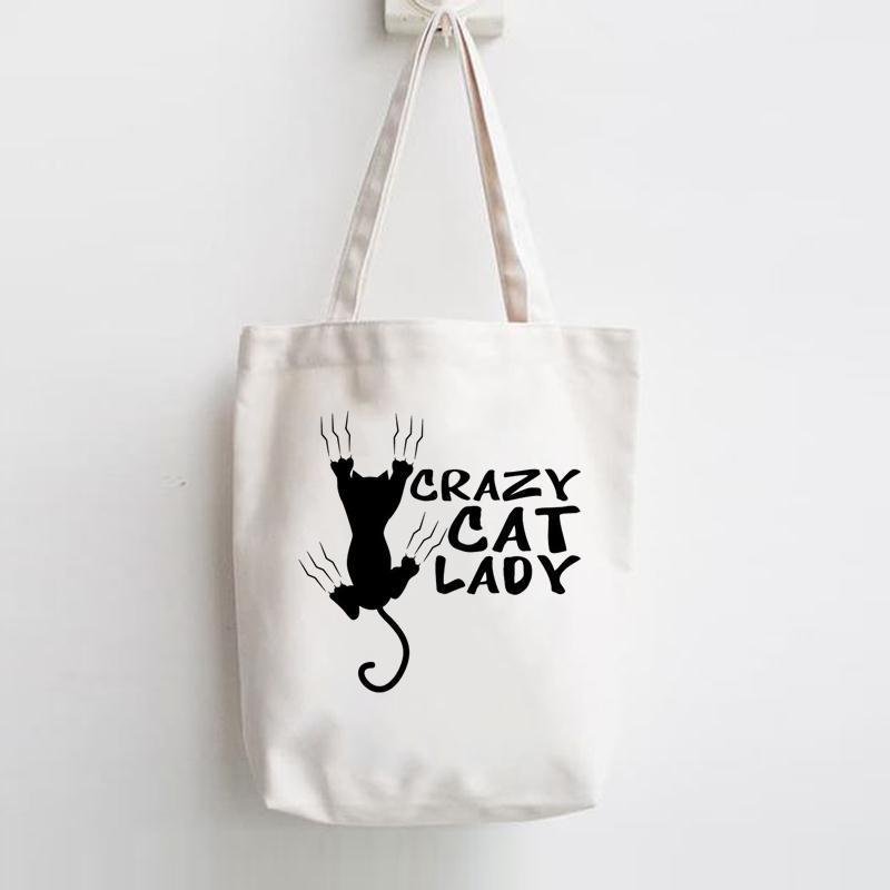 跨境外贸Letter可爱黑猫印花帆布包原宿单肩包手提袋购物袋亚马逊
