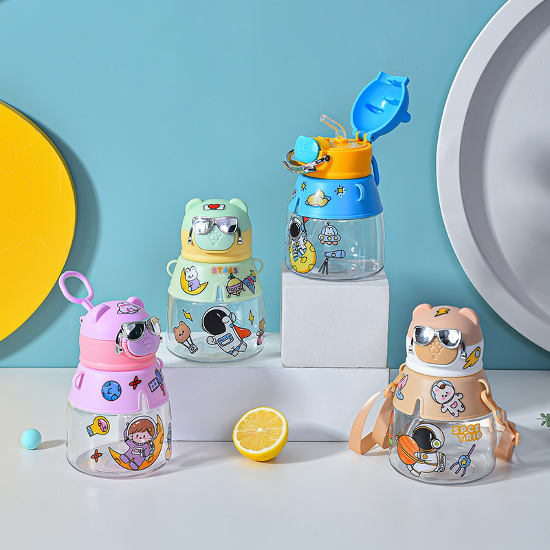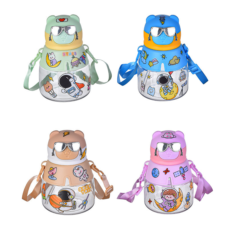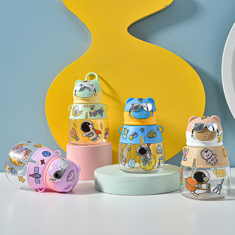 杯创潮酷电镀眼镜卡通儿童可爱男孩女孩吸管水杯防摔个性随手杯子