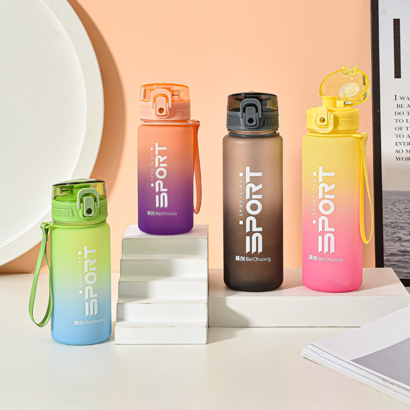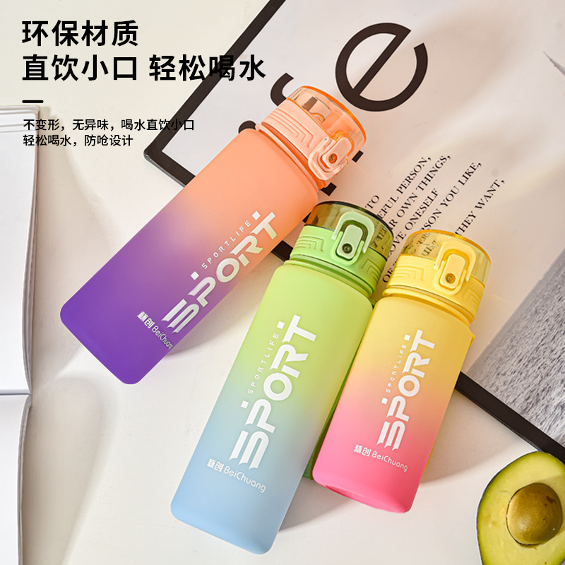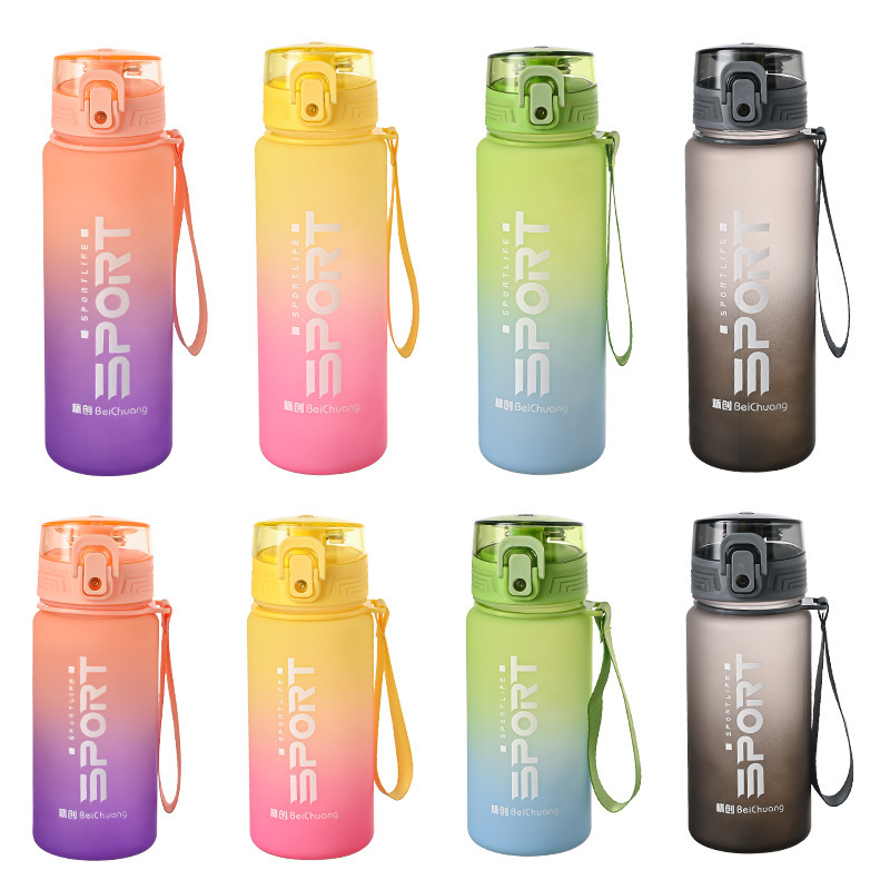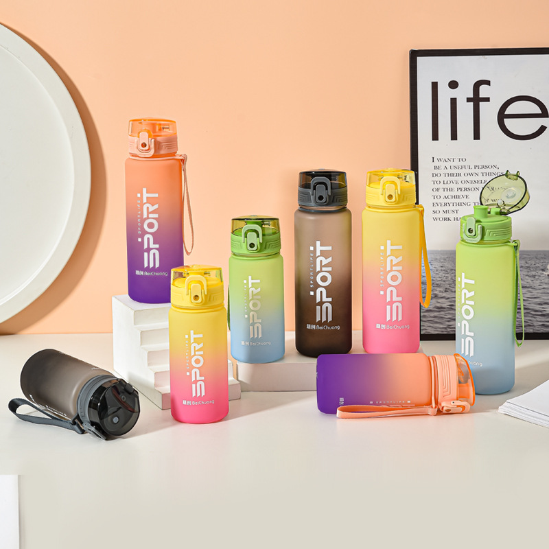 渐变色运动户外学生情侣ins磨砂塑料随手杯带提绳 厂家广告太空杯