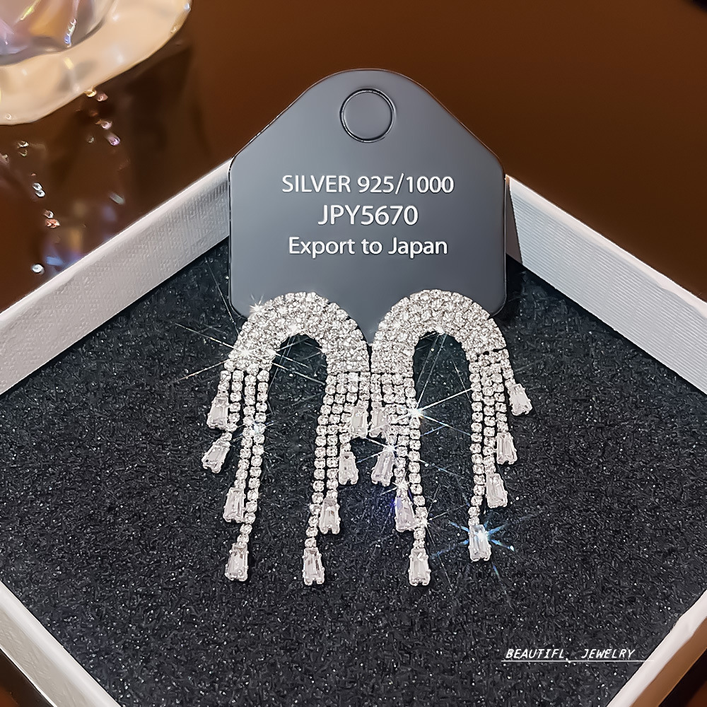 S925银针网红流苏耳环女高级感耳钉韩版名媛气质耳饰小众设计耳坠