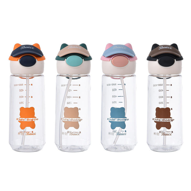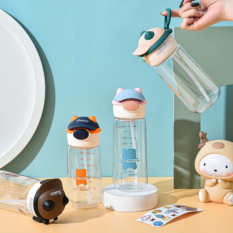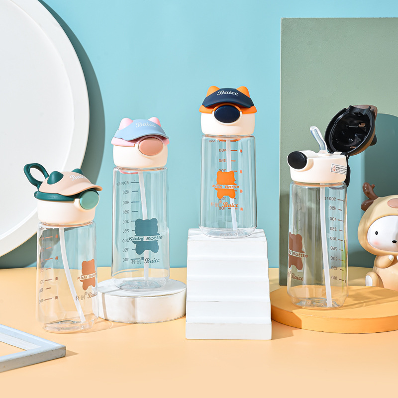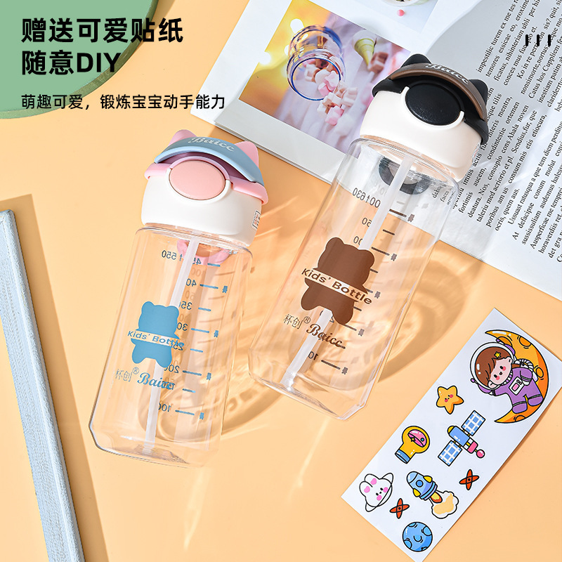 杯创可爱卡通水杯带吸管塑料杯ins男女学生上学便携水壶加厚防摔