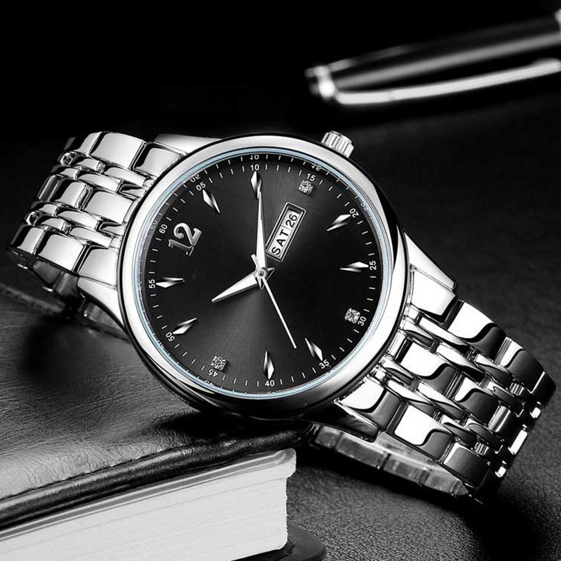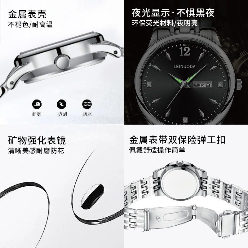 男士手表简约实用石英表双日历夜光商务情侣腕表女表潮流时尚防水