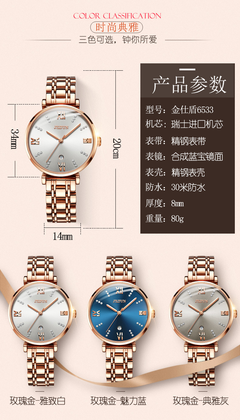 一件代发金仕盾品牌手表批发防水镶钻石英表韩版学生女士手表女表
