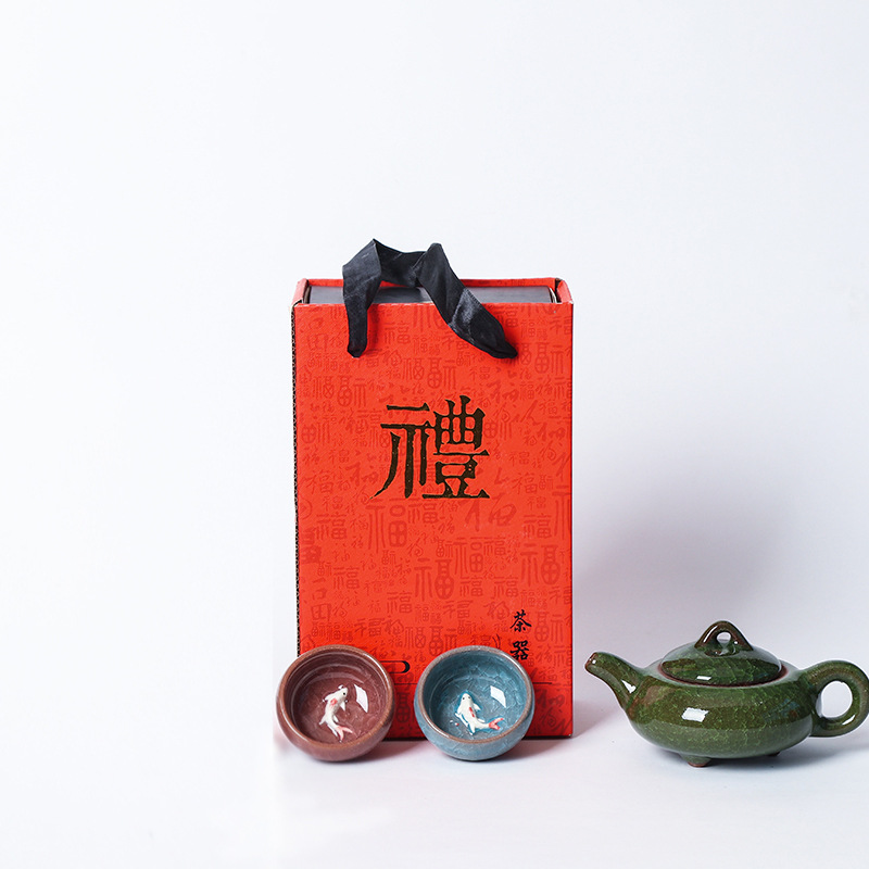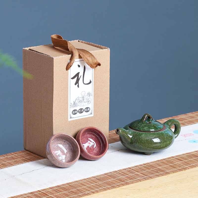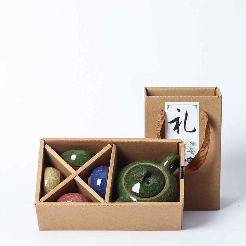 七彩冰裂釉陶瓷功夫茶具一壶四杯旅行便携套装开业礼品
