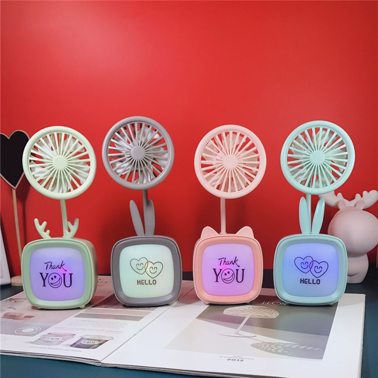 少女心米奇迷你桌面小风扇卧室床头带灯可爱电风扇便携式USB充电