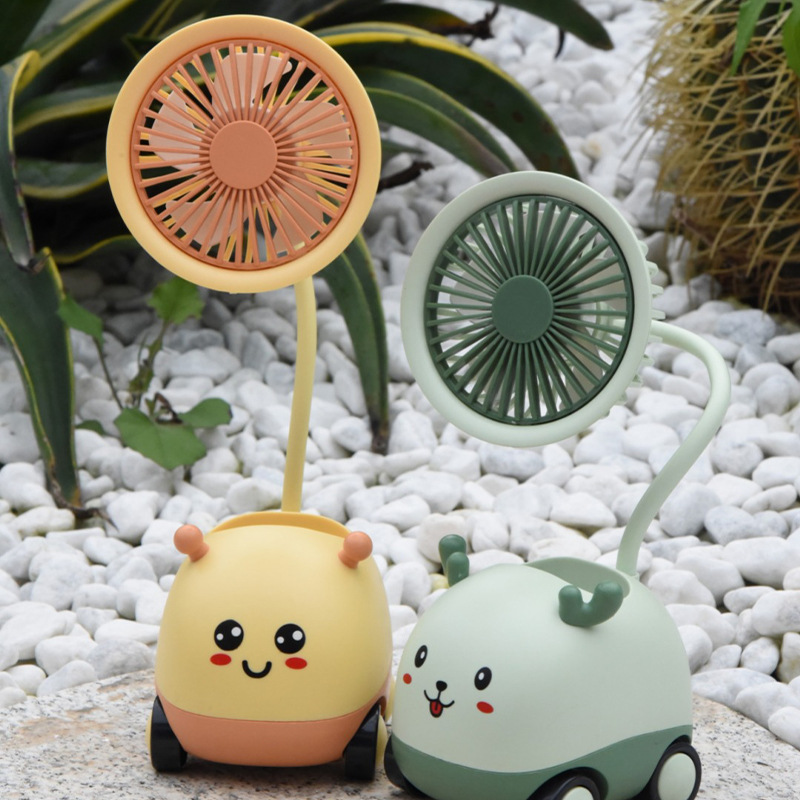 卡通车小风扇USB充电软管可调节角度夏季散热儿童房间桌面电风扇