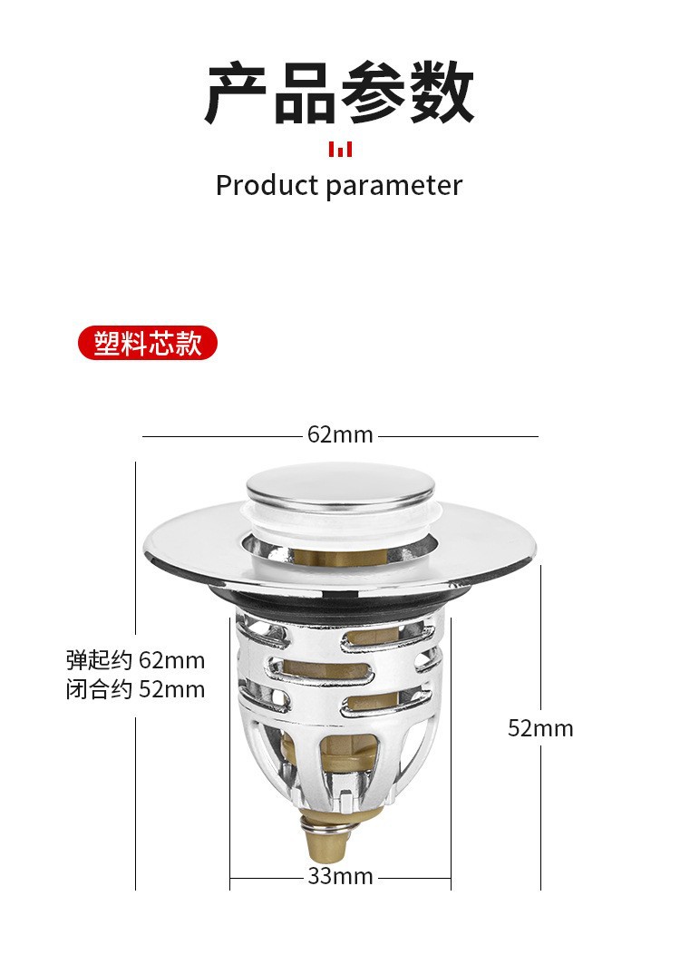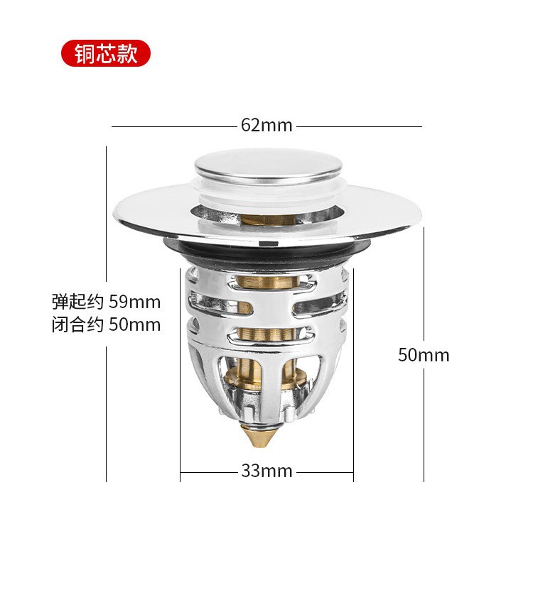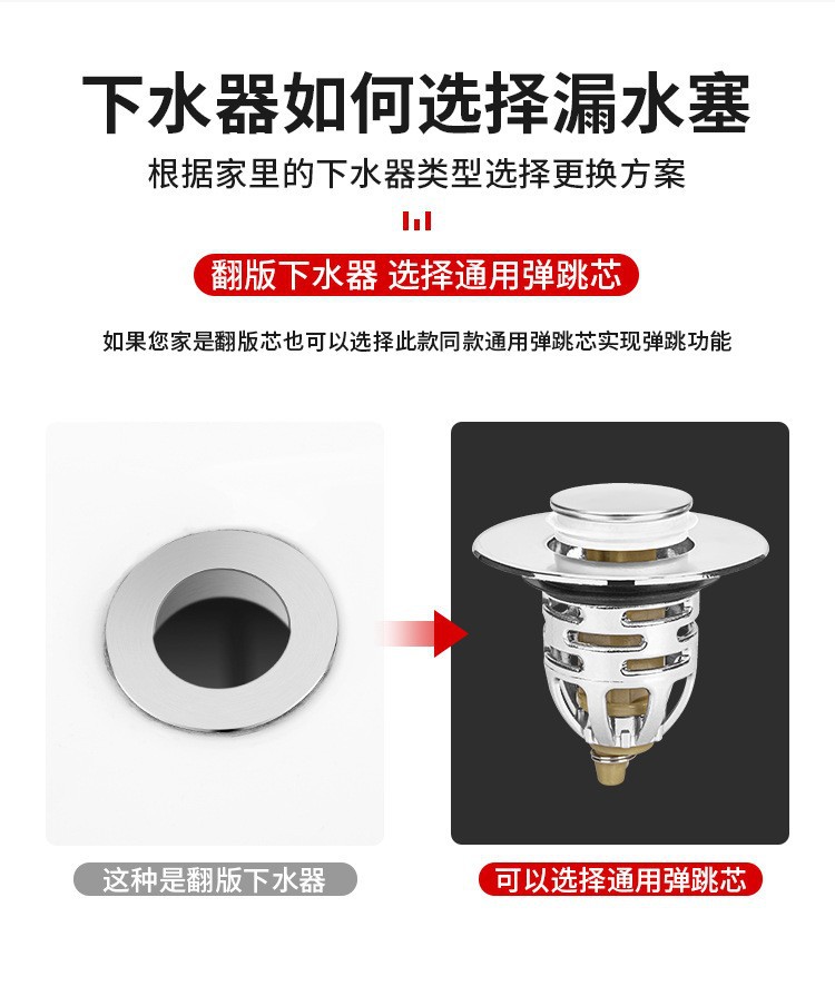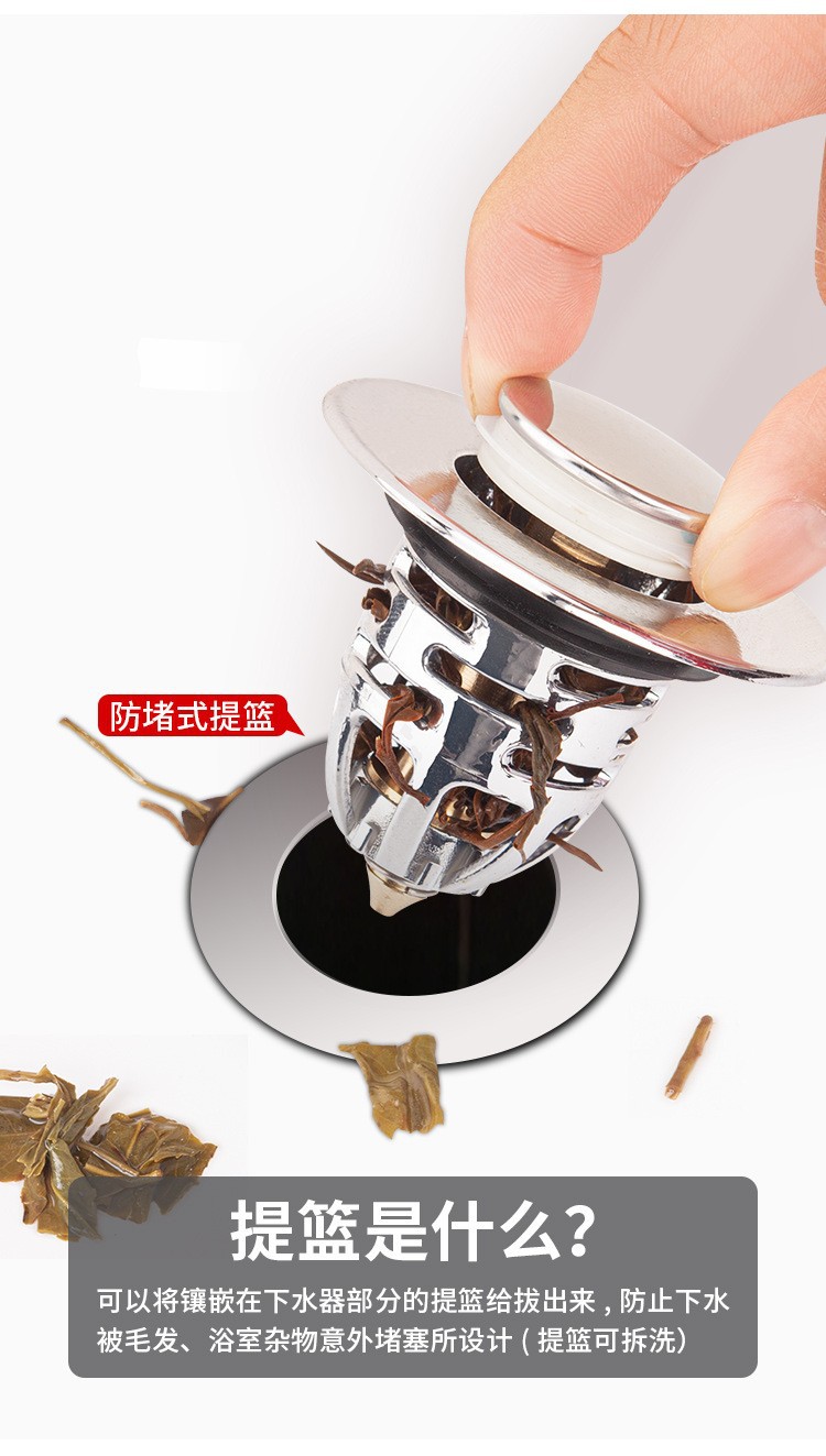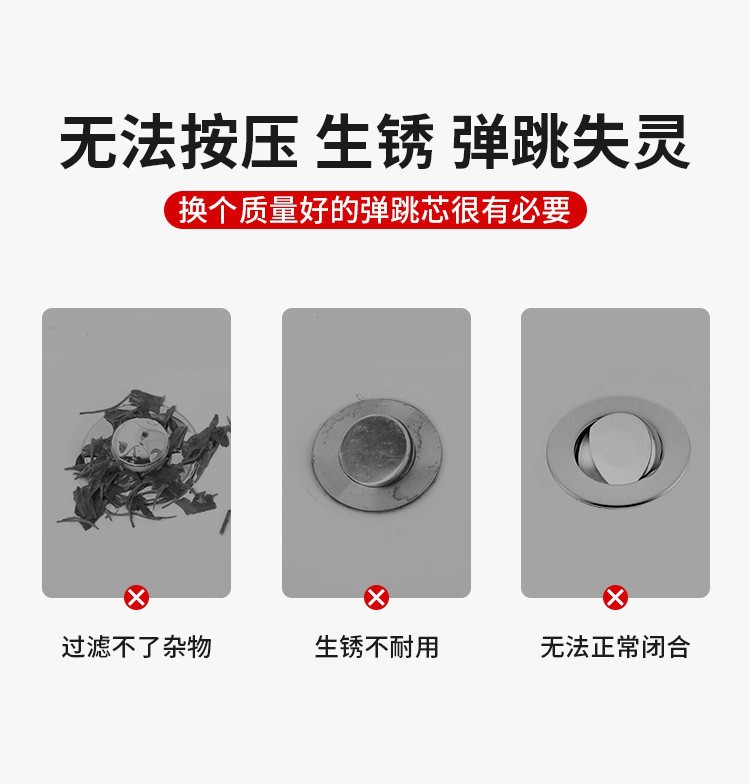 脸盆洗手池下水器弹跳芯漏水塞子水管水不锈钢按压式防臭塞配件