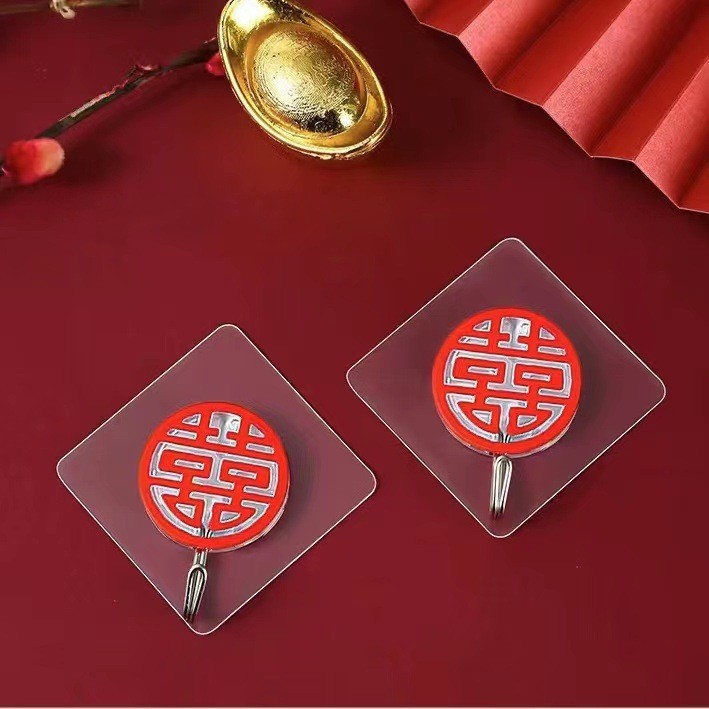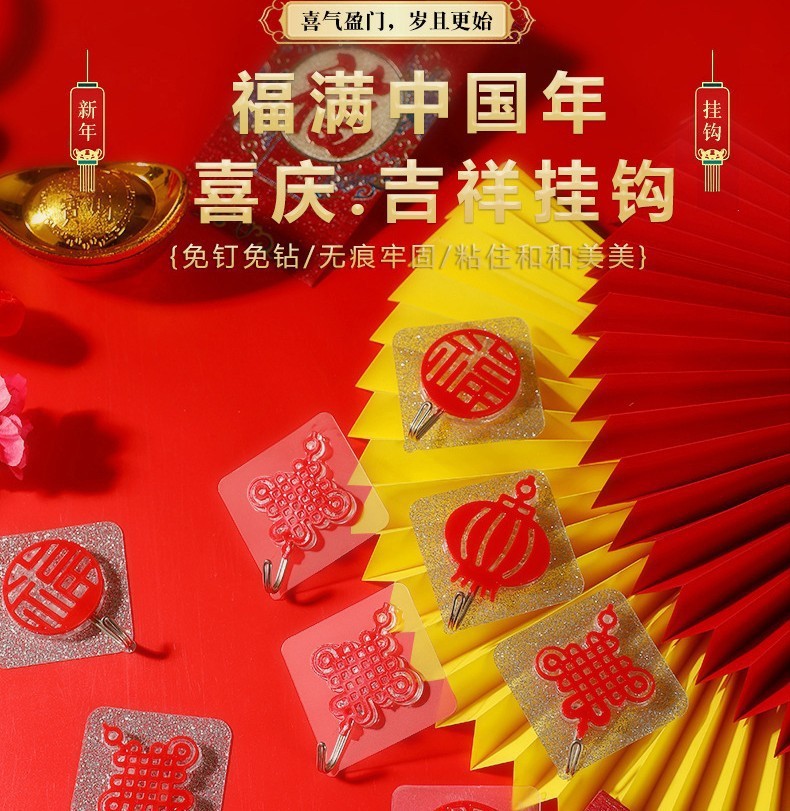 创意年味无痕挂钩过年福字喜庆挂钩 红色灯笼中国结透明吉祥挂钩
