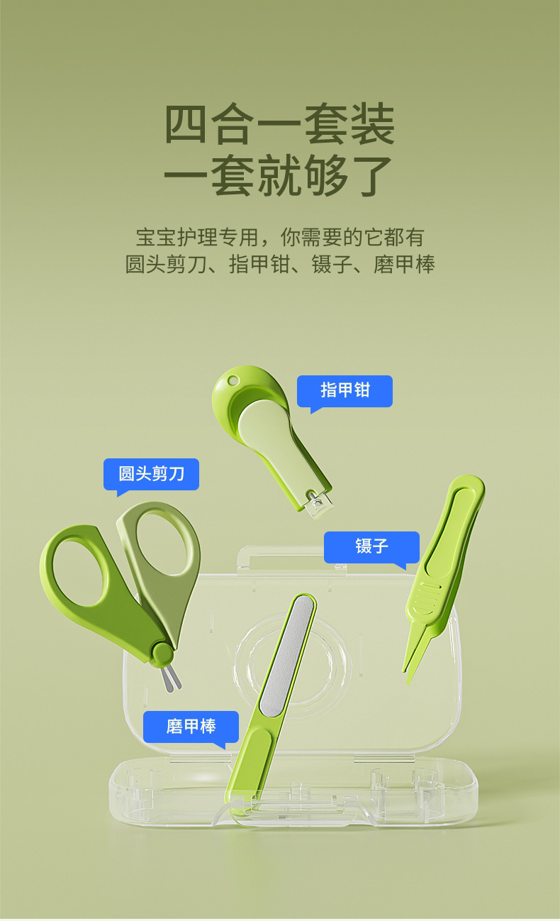 婴儿指甲剪新生儿宝宝指甲刀套装儿童指甲锉安全剪刀防夹肉指甲钳