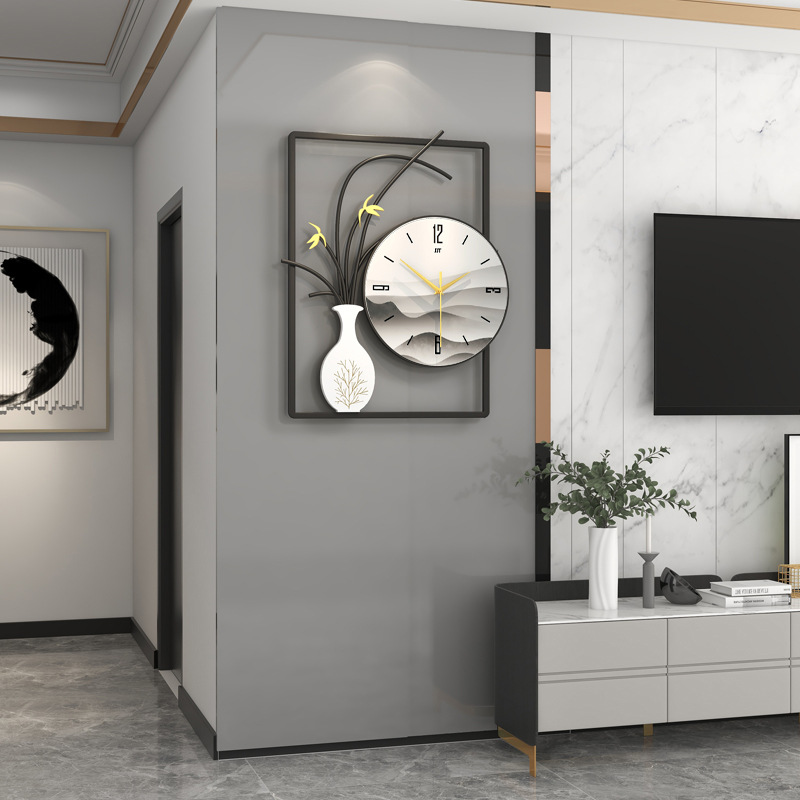 新中式挂钟客厅轻奢现代简约创意个性时尚家用时钟表挂墙网红装饰