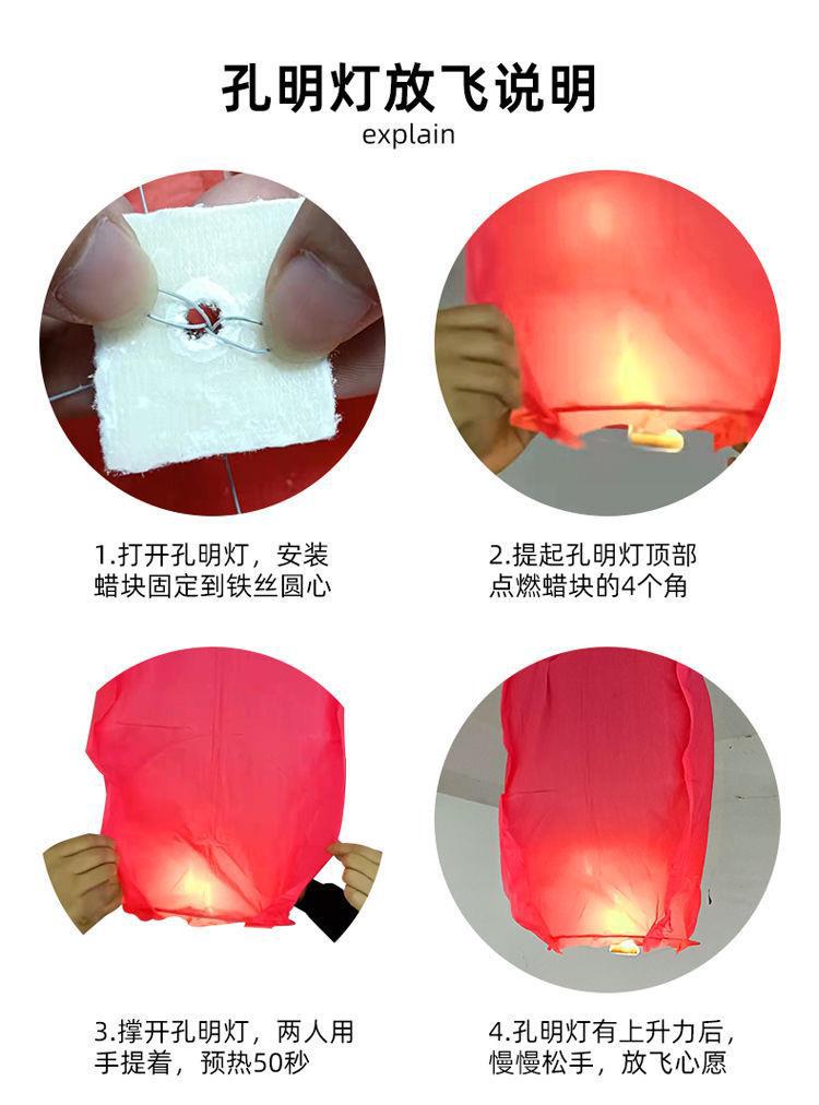 厂家批发现货大号孔明灯质量好许愿灯红色春节加厚阻燃纸祈福天灯