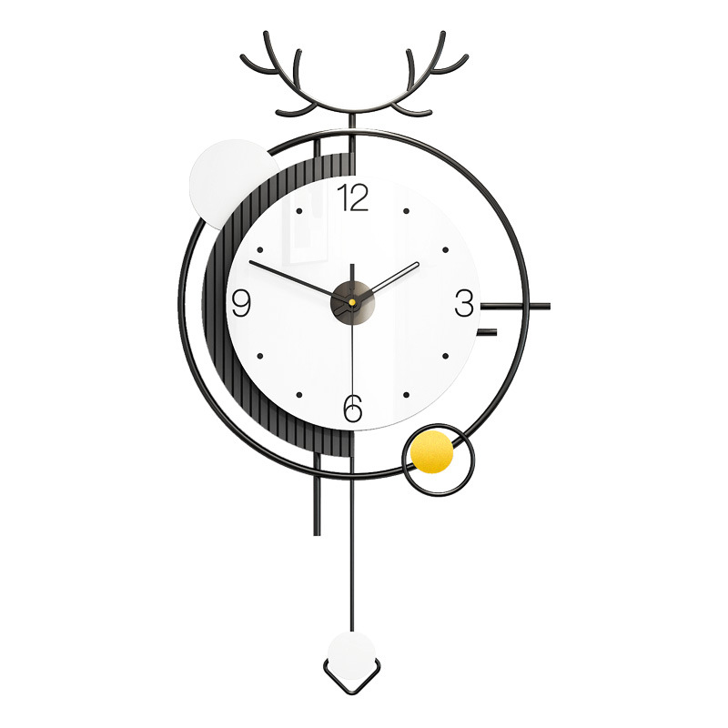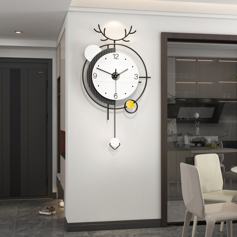 工厂批发挂钟现代简约客厅钟表创意时尚鹿头免打孔静音装饰石英钟