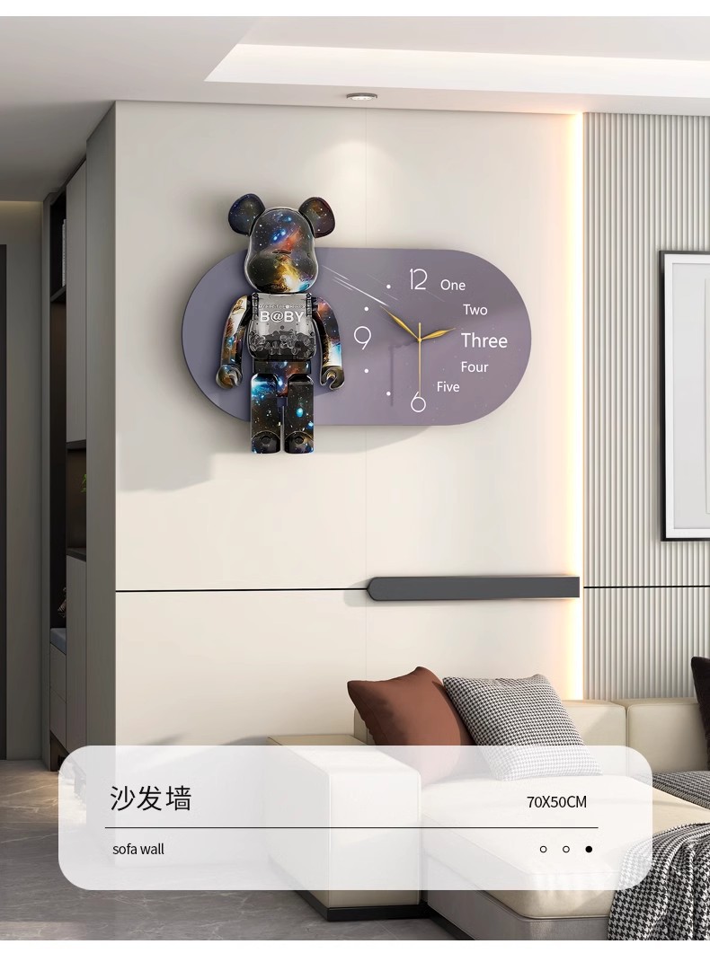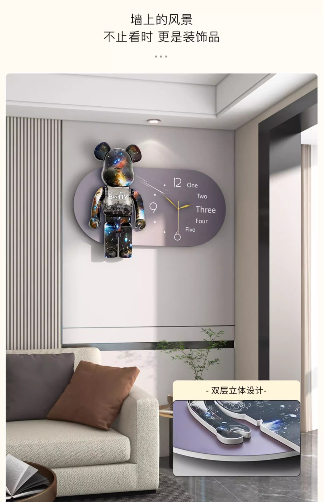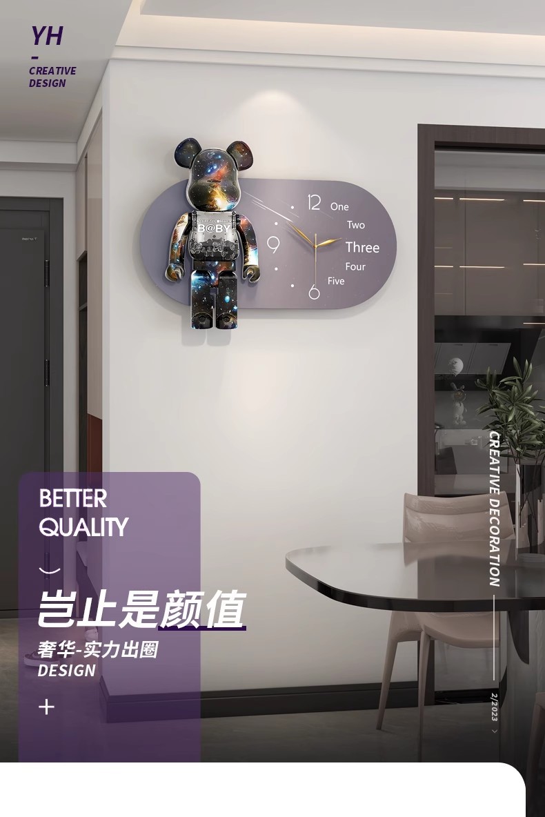 暴力熊客厅挂钟简约现代大气新款家用静音钟表创意时钟挂墙免打孔
