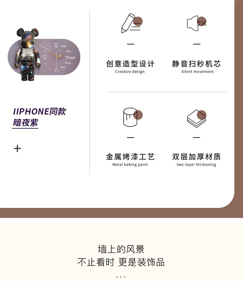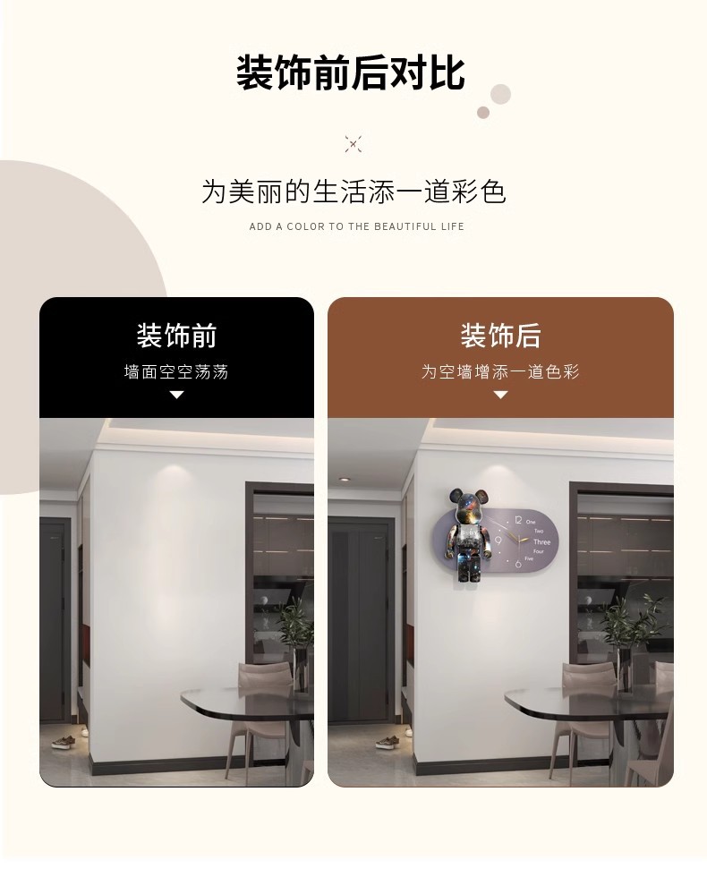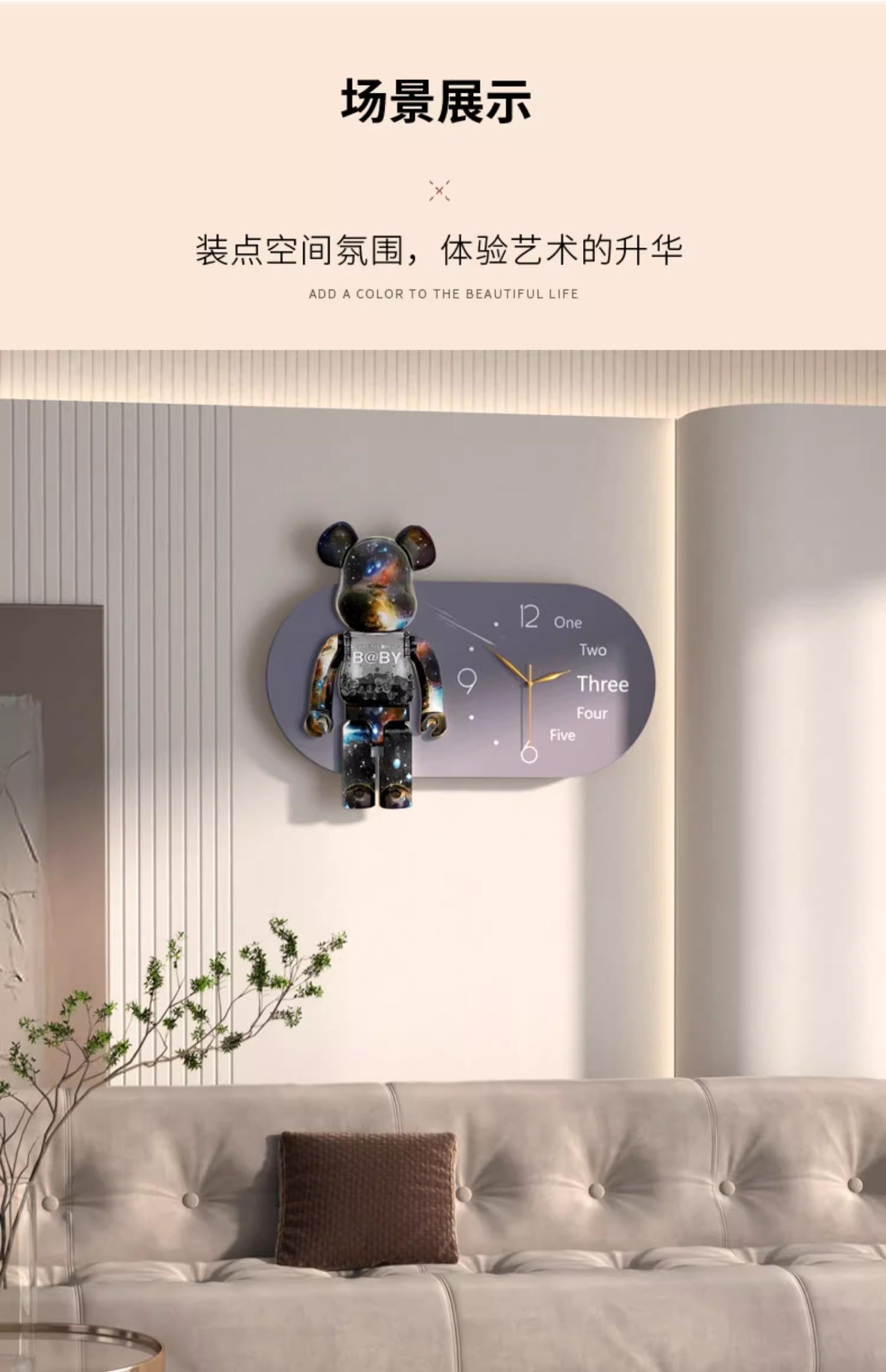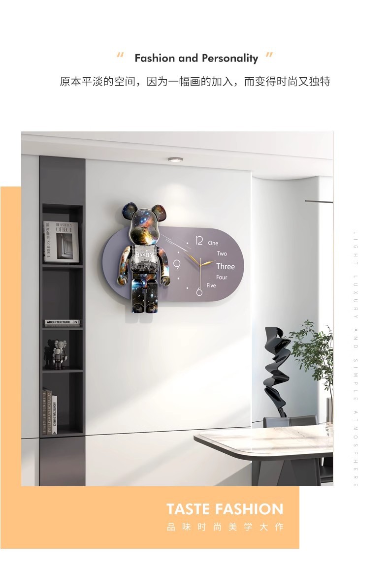 暴力熊客厅挂钟简约现代大气新款家用静音钟表创意时钟挂墙免打孔