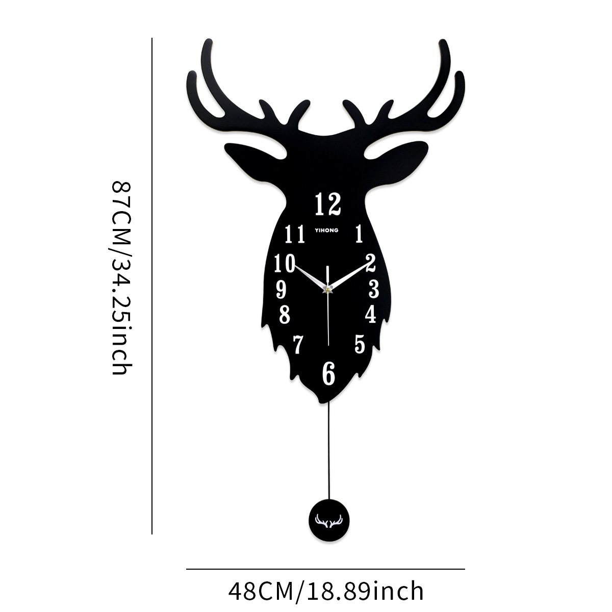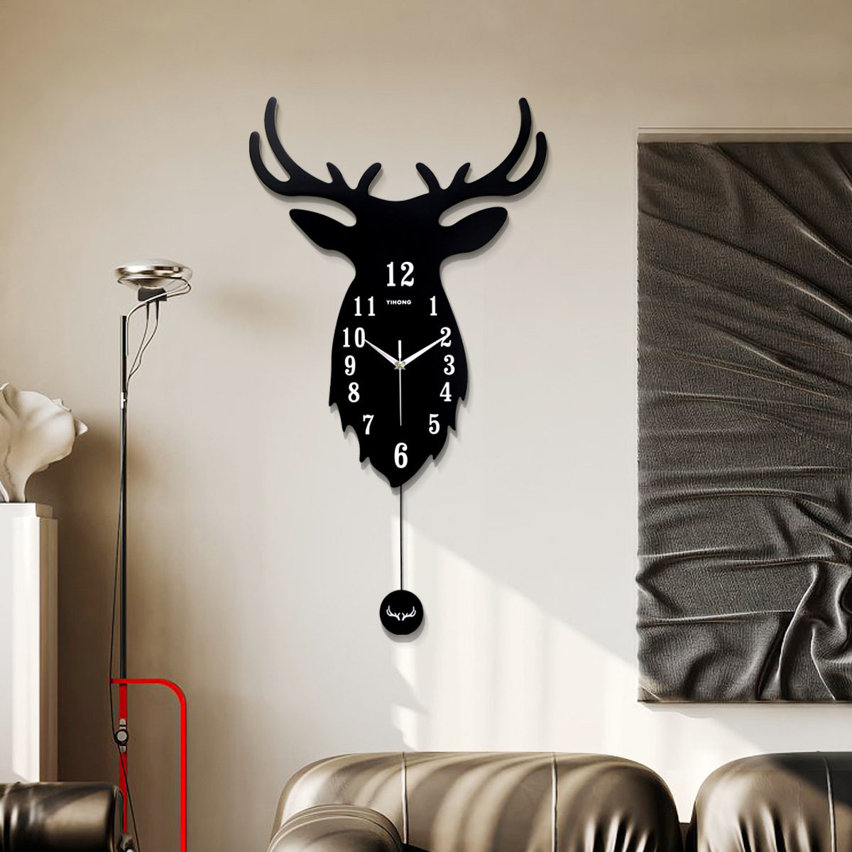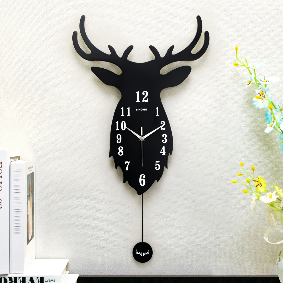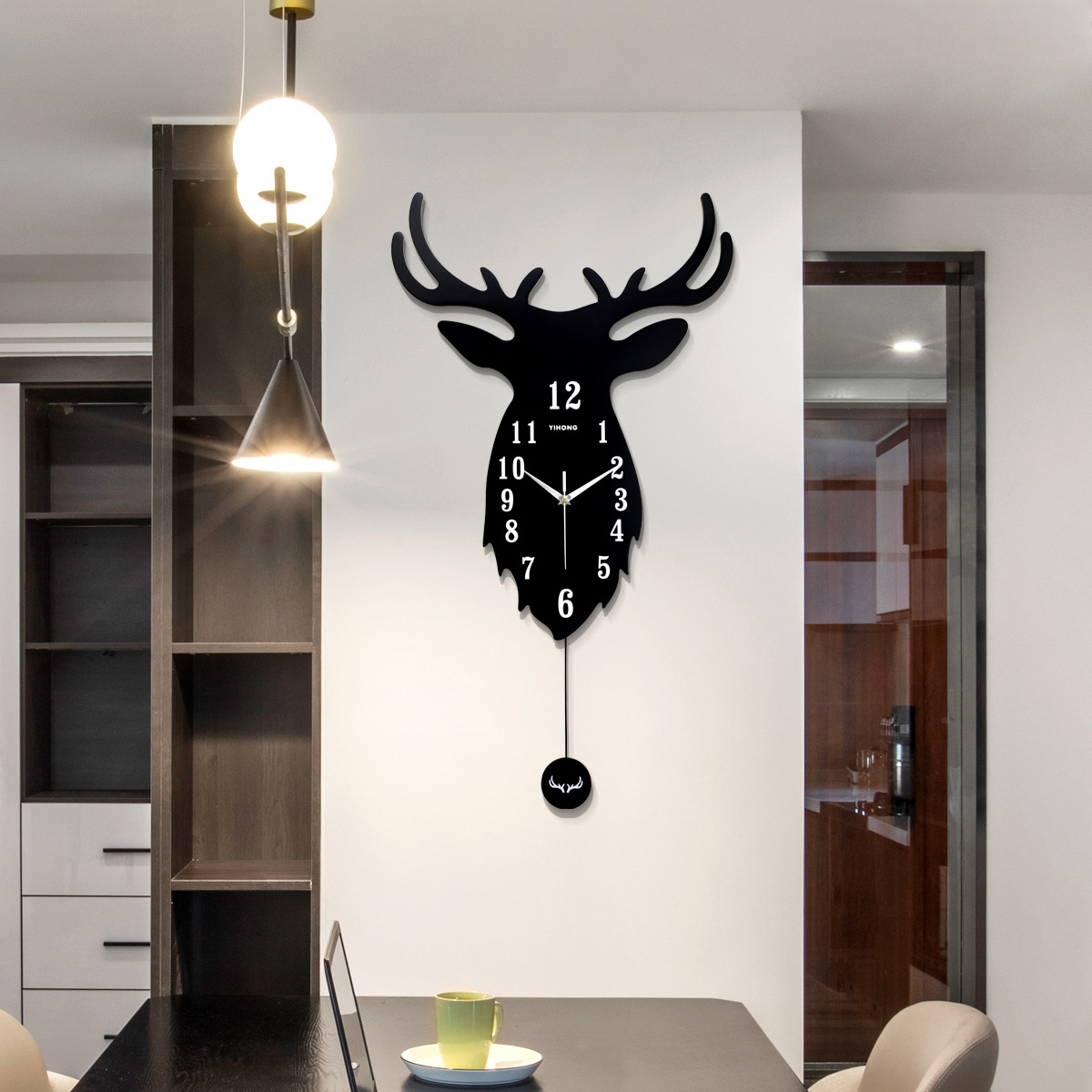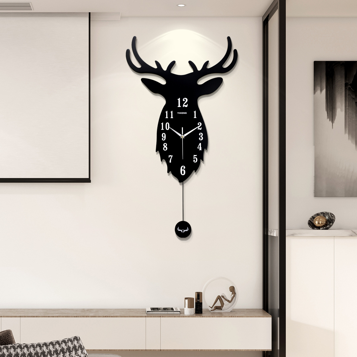 鹿角时钟客厅挂钟大气挂表创意家用时钟挂钟客厅装饰静音摇摆时钟