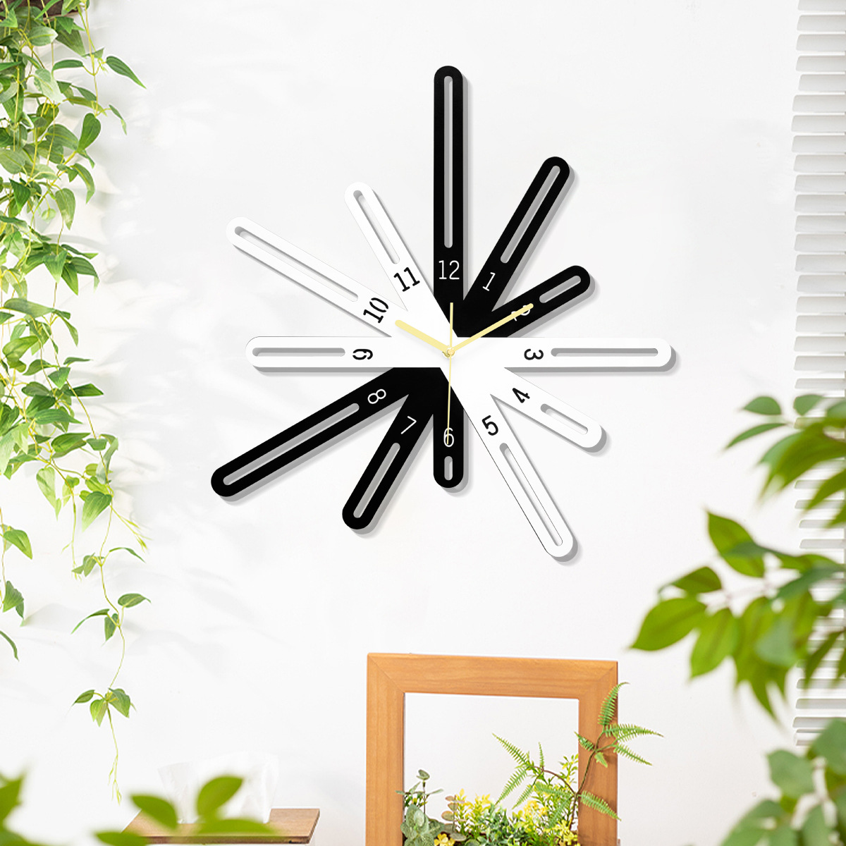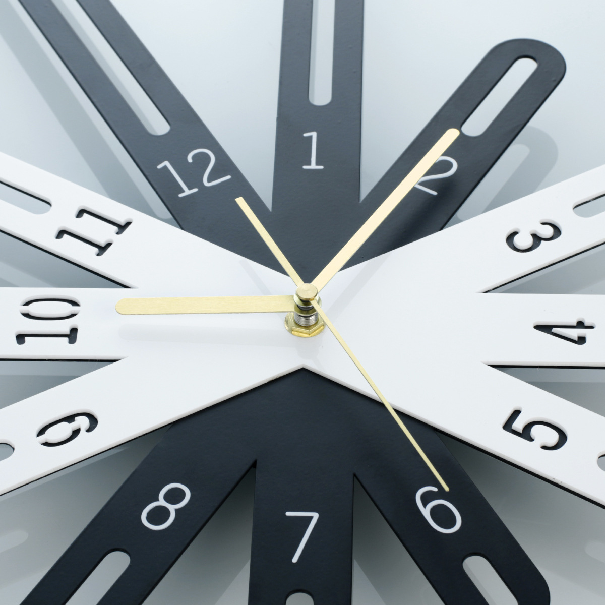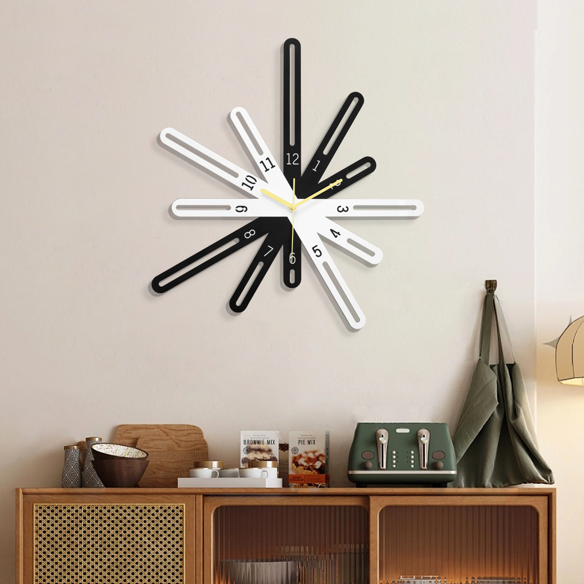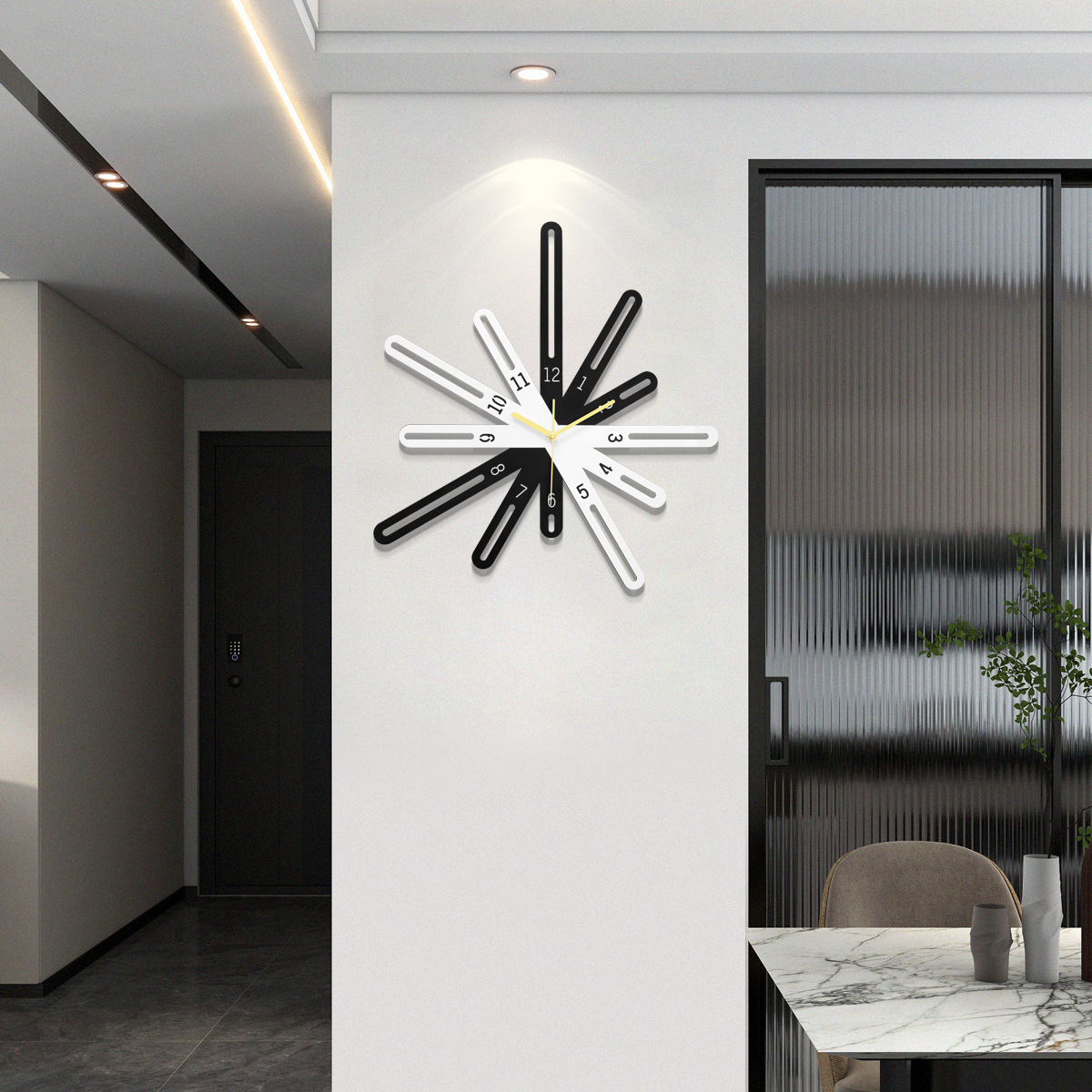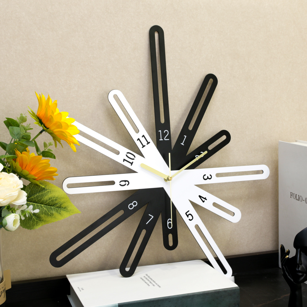 北欧时尚轻奢铁艺异形挂钟用于客厅卧室餐厅装饰静音挂钟黑白色