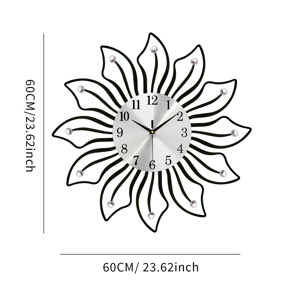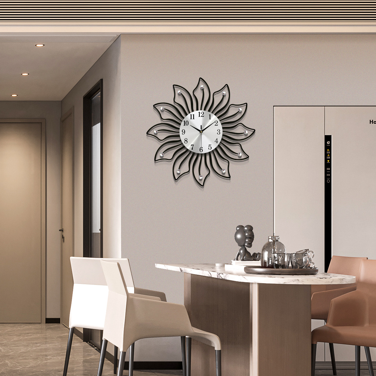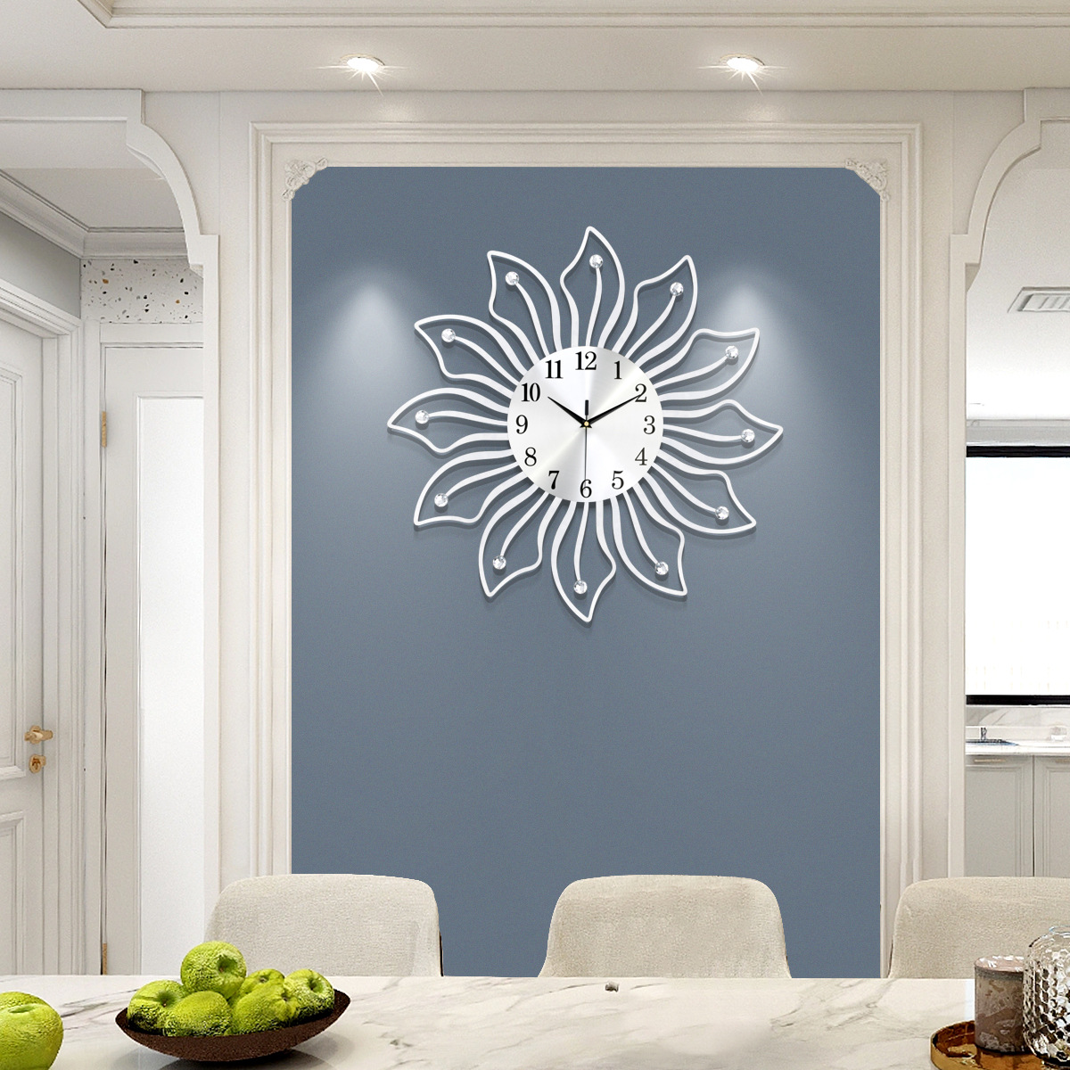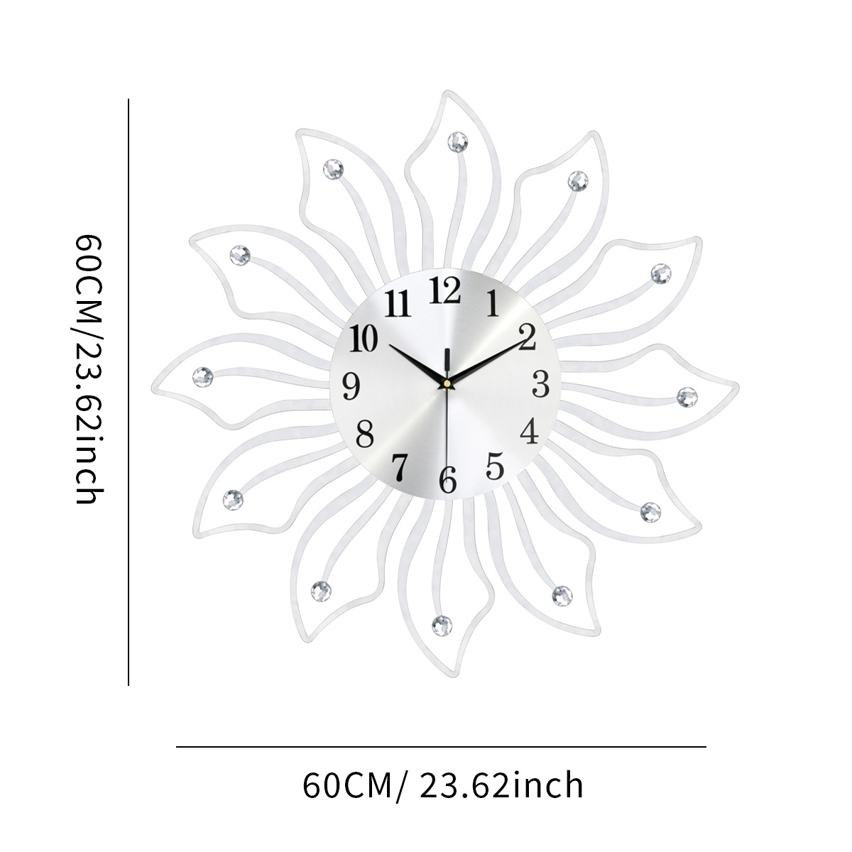现代简约花朵金属挂钟亚克力钻装饰适用于家庭客厅卧室餐厅静音