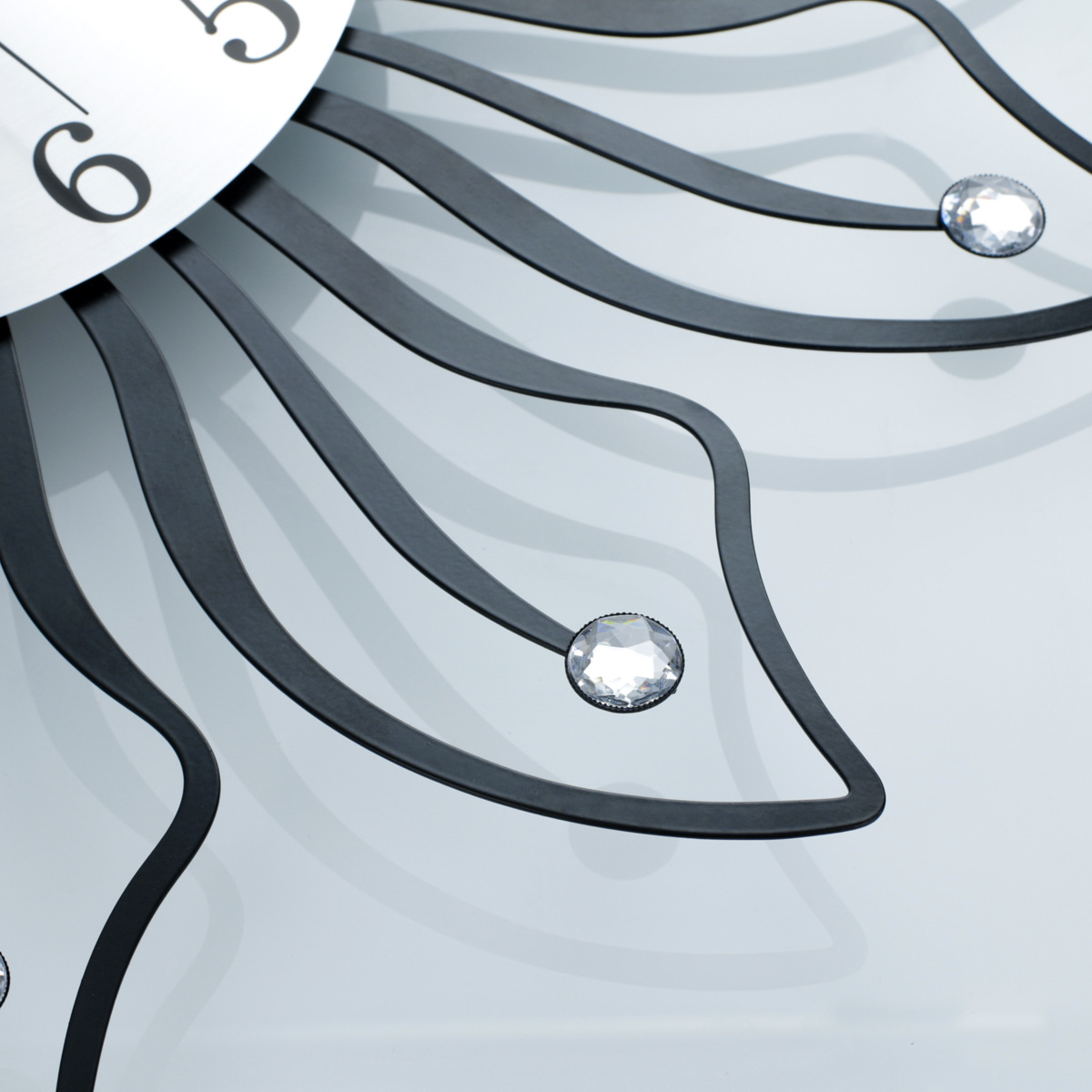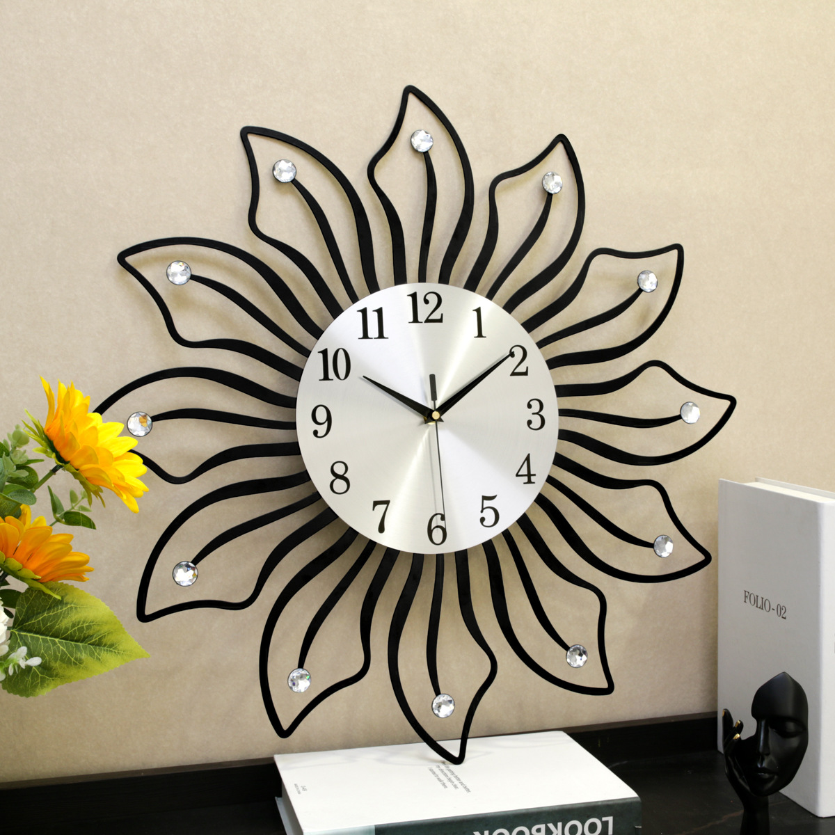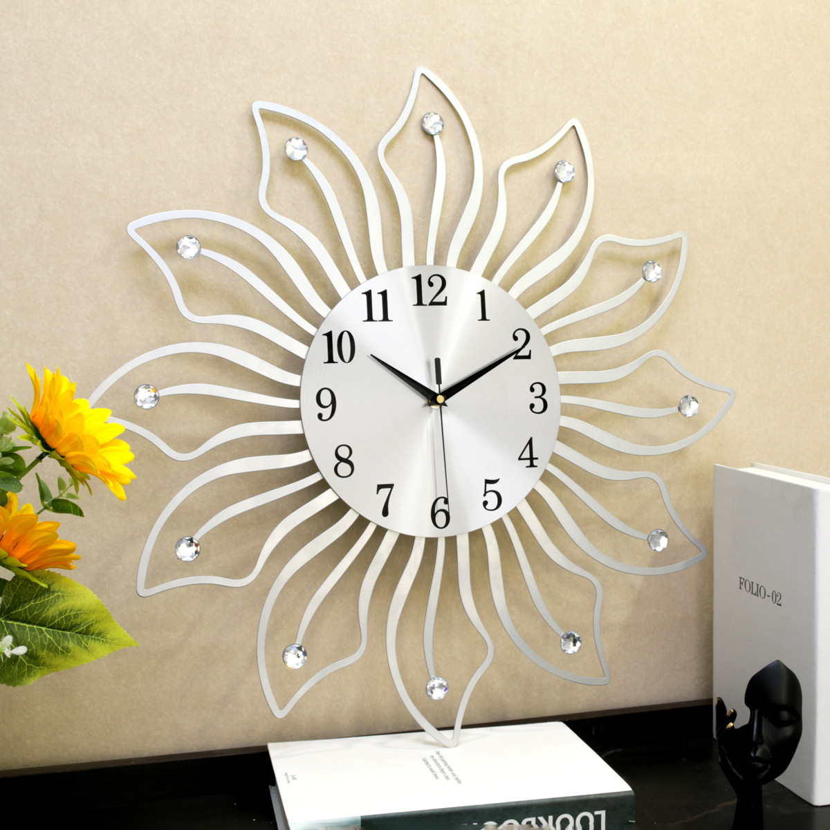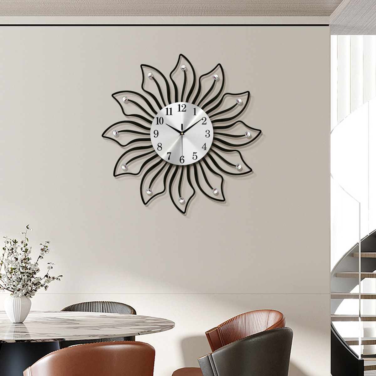 现代简约花朵金属挂钟亚克力钻装饰适用于家庭客厅卧室餐厅静音