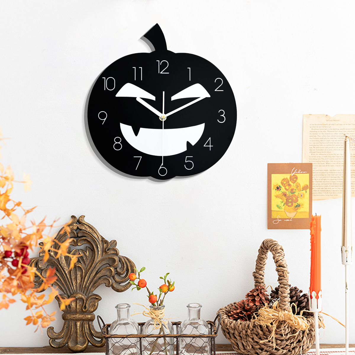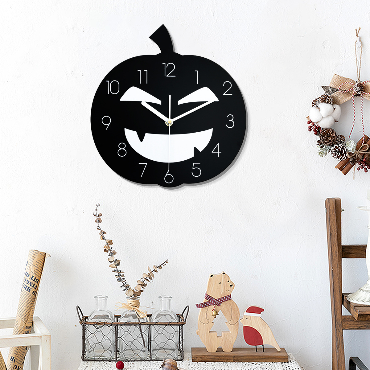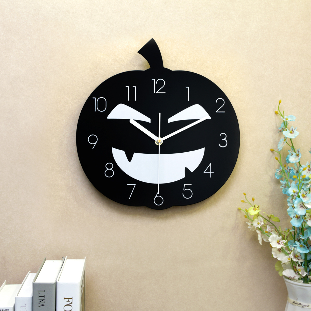 恐怖笑脸南瓜挂钟适用于万圣节派对墙壁装饰家居艺术设计静音时钟