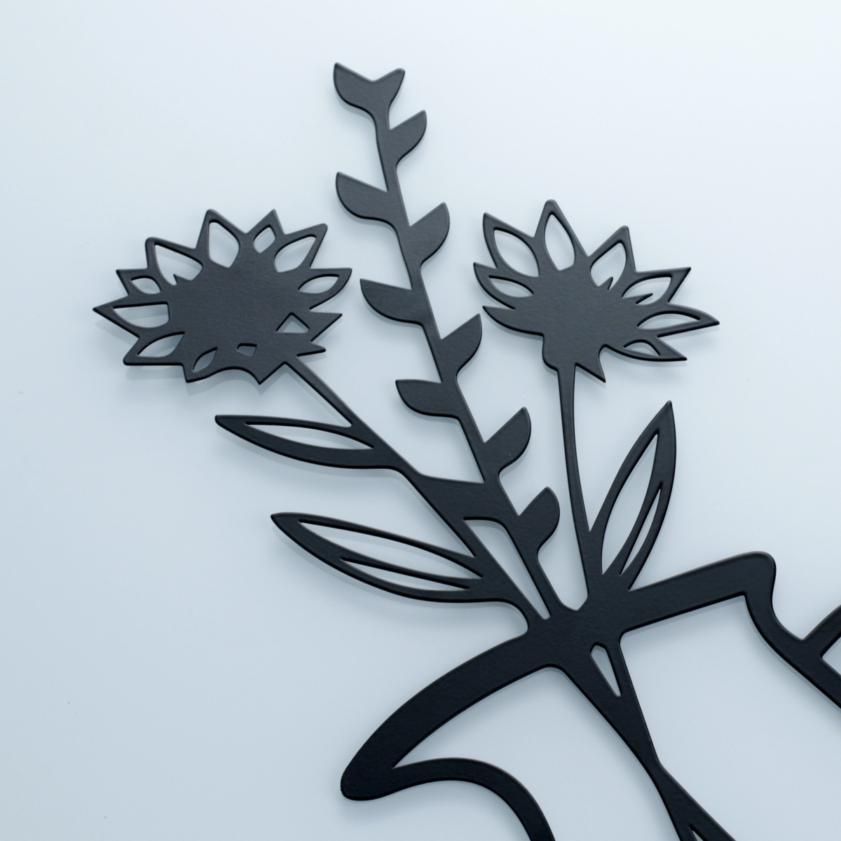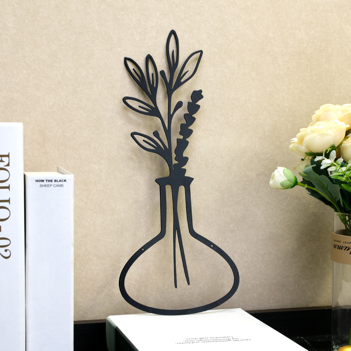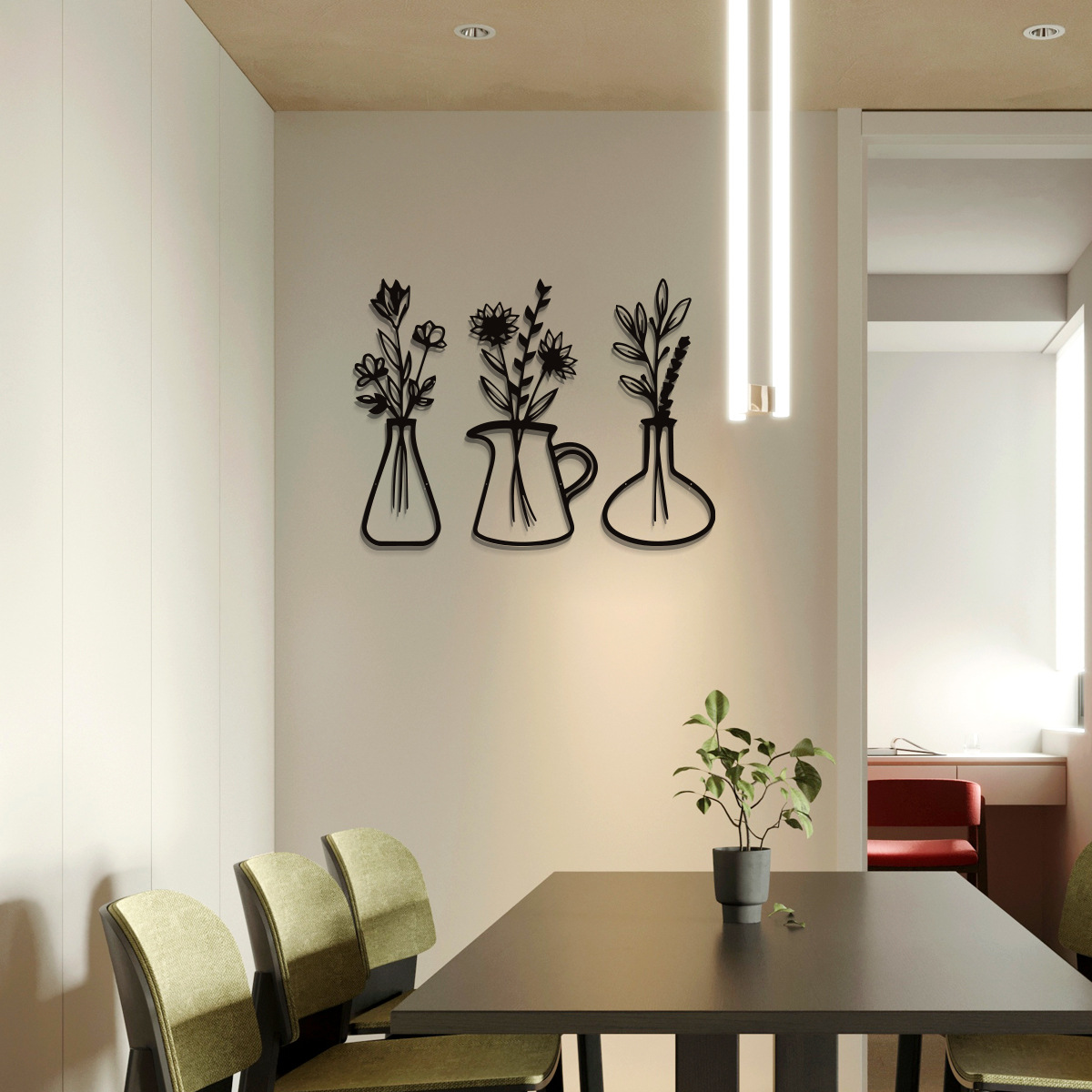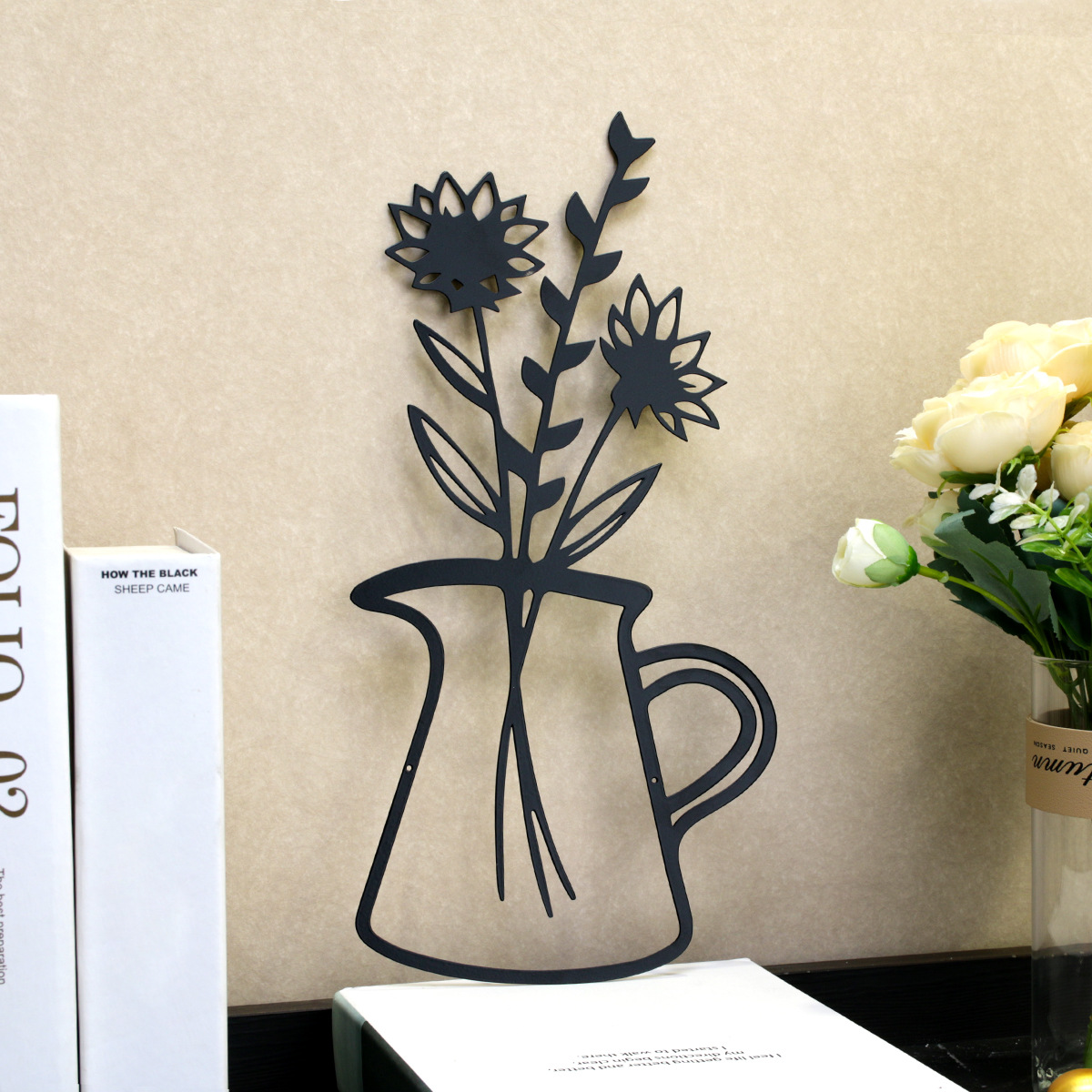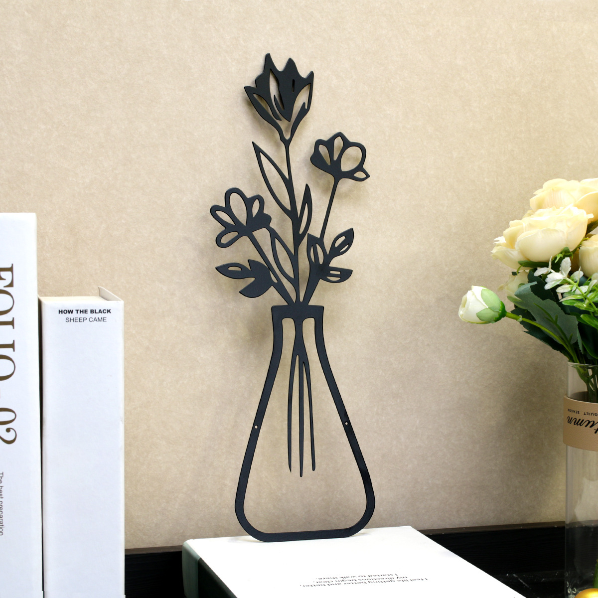 3件金属墙艺术壁挂式花瓶艺术黑色花卉图案墙雕塑艺术品家庭墙
