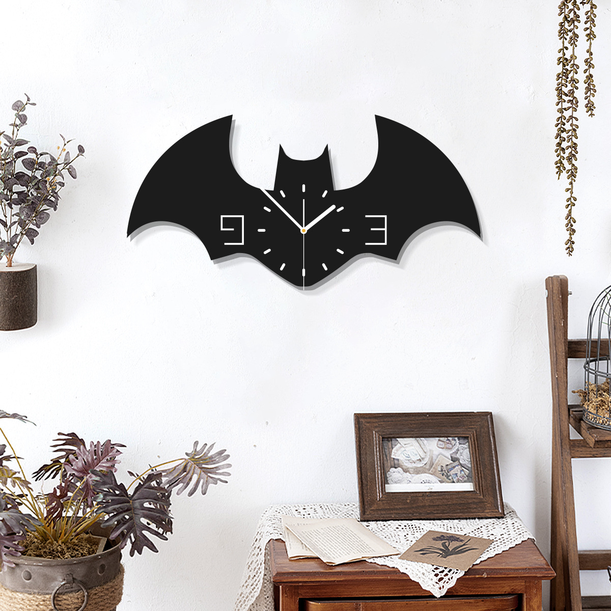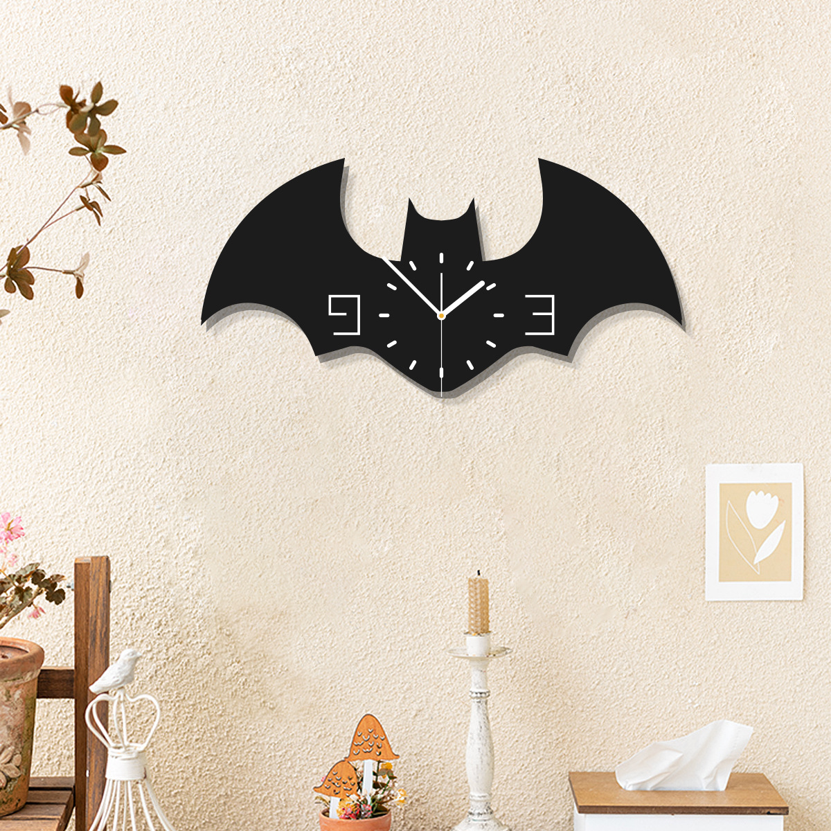 黑色创意蝙蝠挂钟用于万圣节派对装饰家庭客厅装饰静音时钟