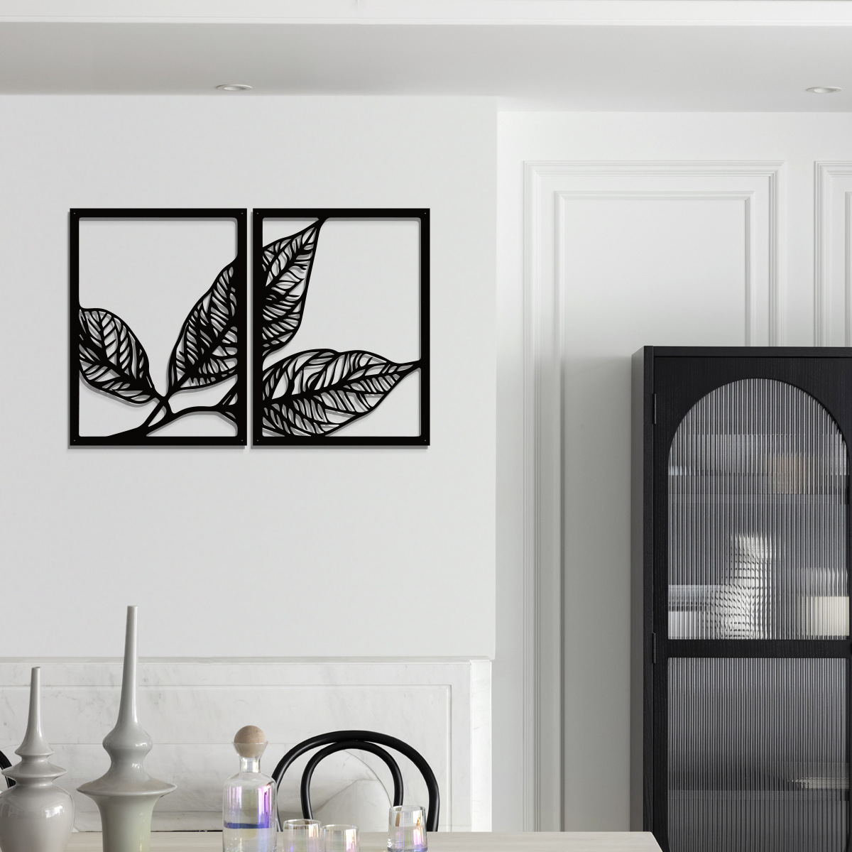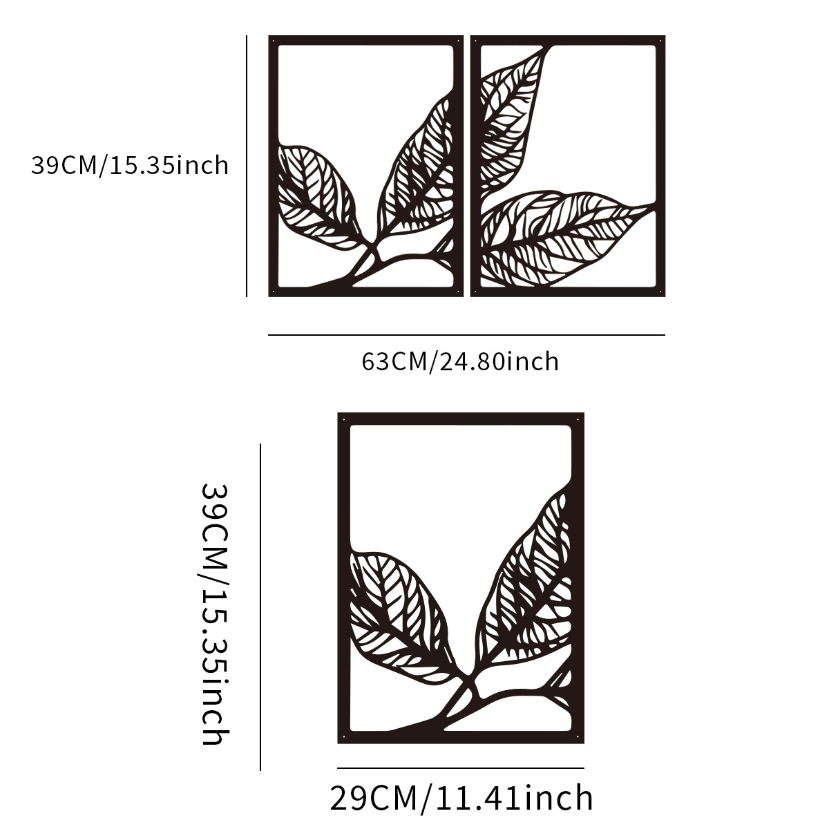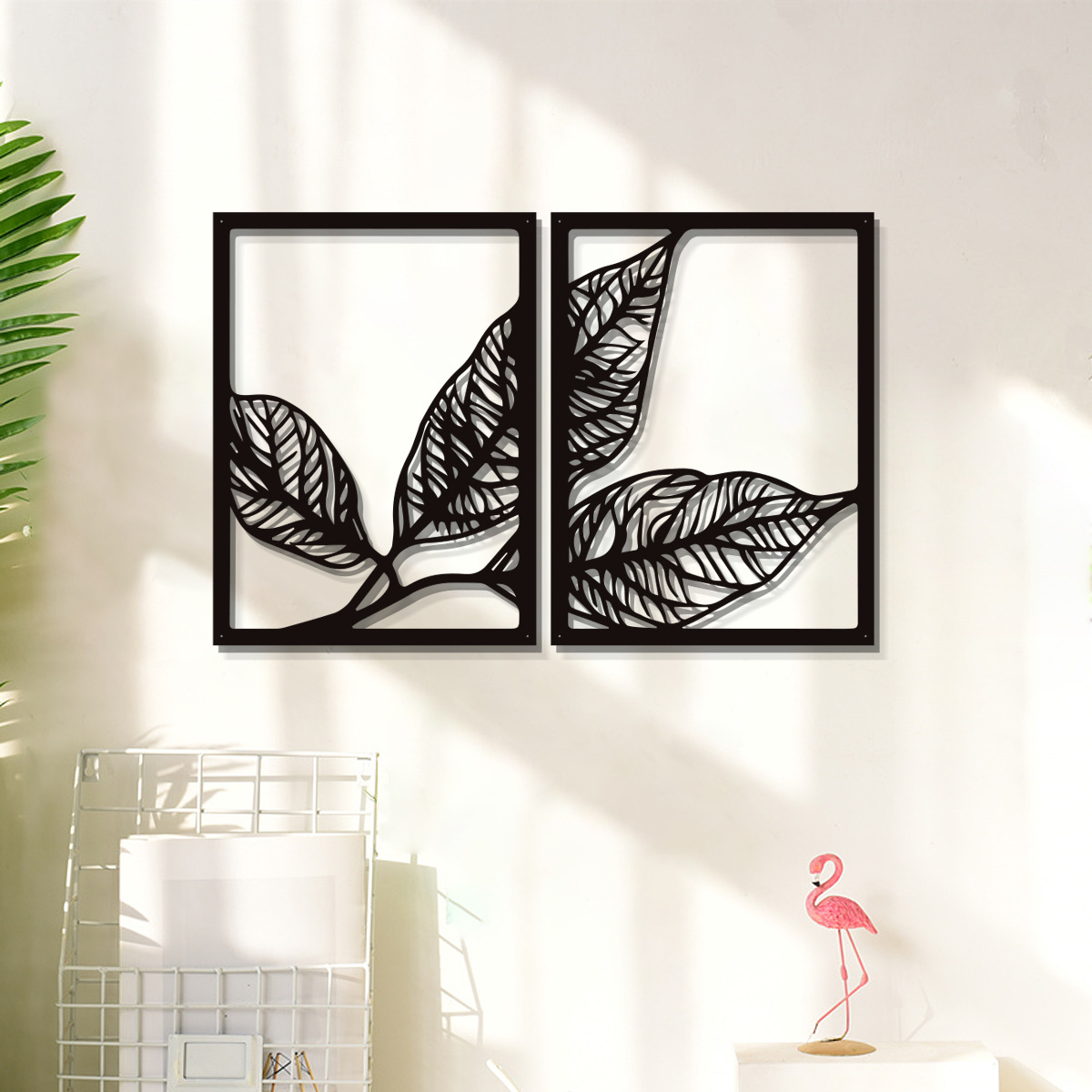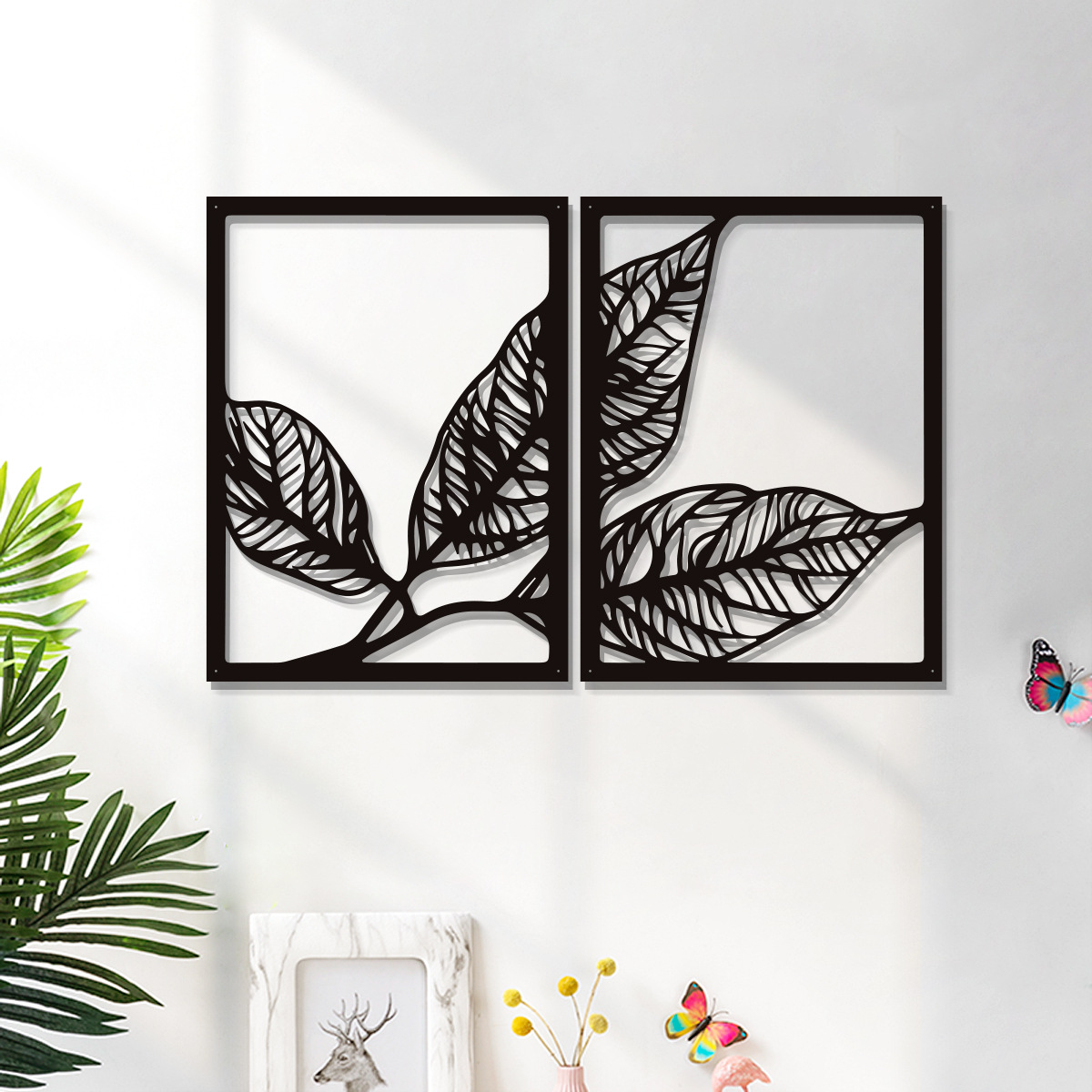 2件简约和豪华风格的金属叶墙壁装饰用于客厅卧室书房墙面壁挂式