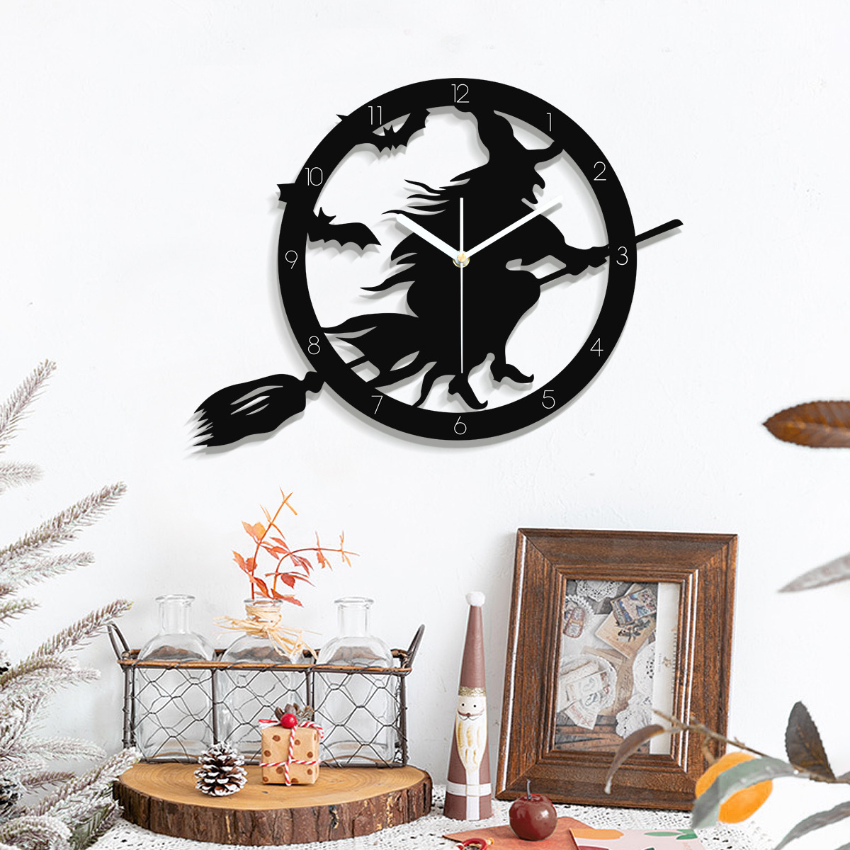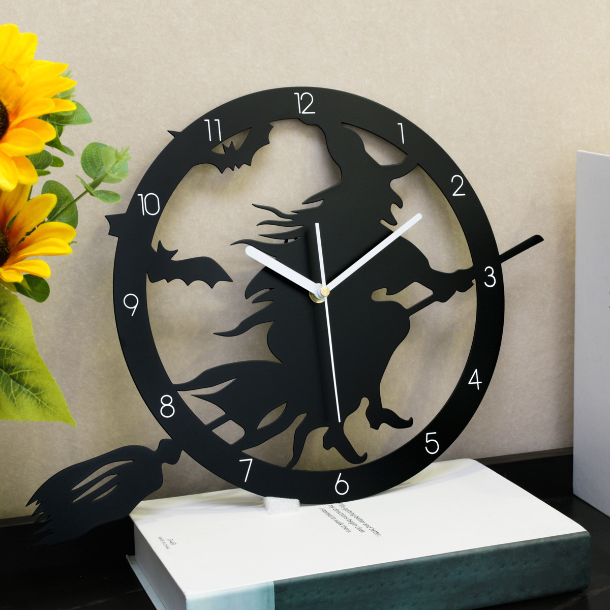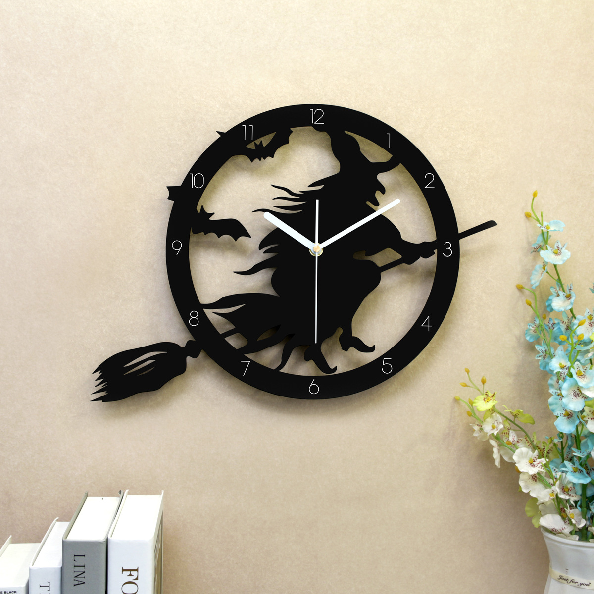 黑色女巫时钟大型挂钟静音时钟家居万圣节装饰派对挂钟艺术设计