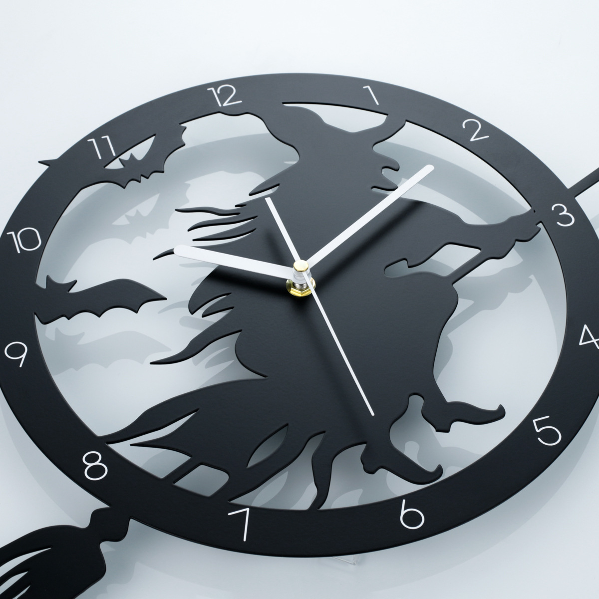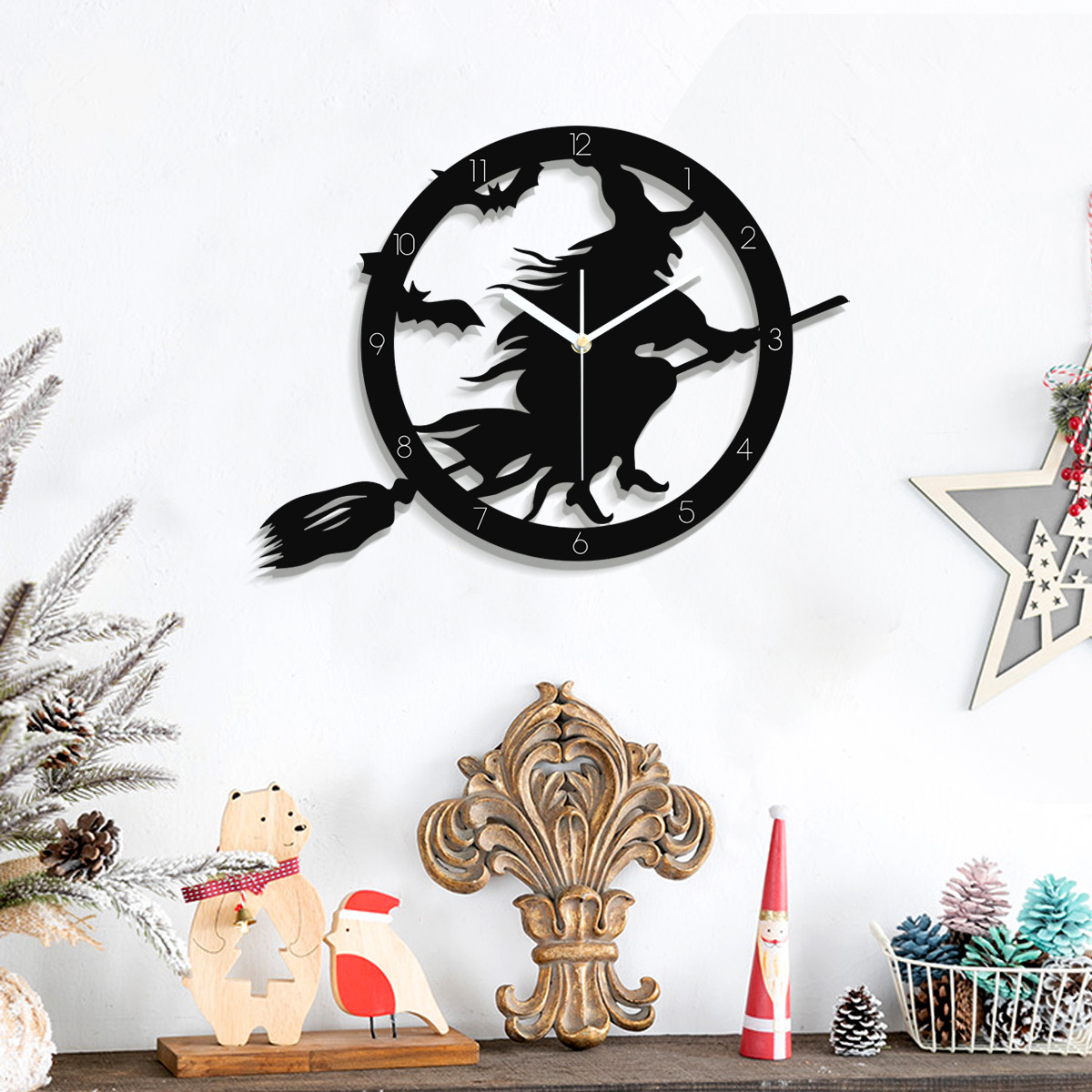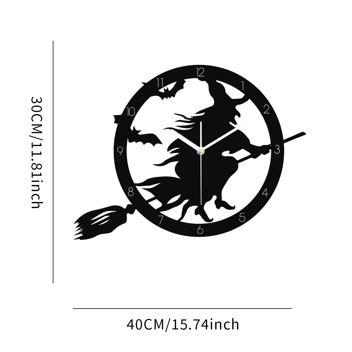 黑色女巫时钟大型挂钟静音时钟家居万圣节装饰派对挂钟艺术设计
