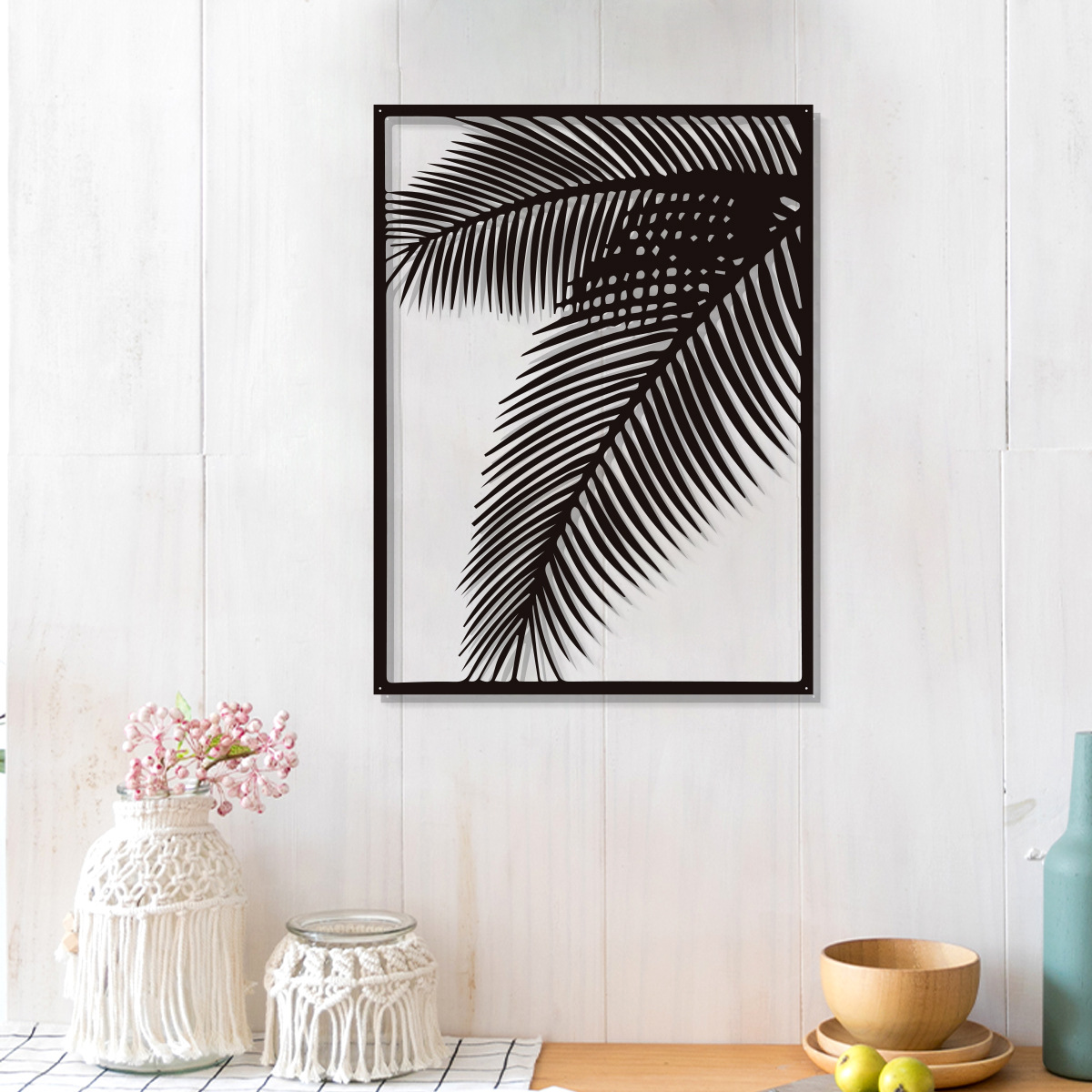 1件金属树叶墙面装饰棕榈叶子墙面艺术装饰悬挂雕塑墙面装饰(黑色