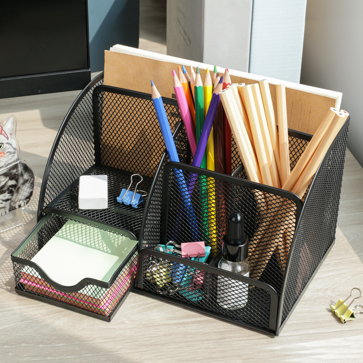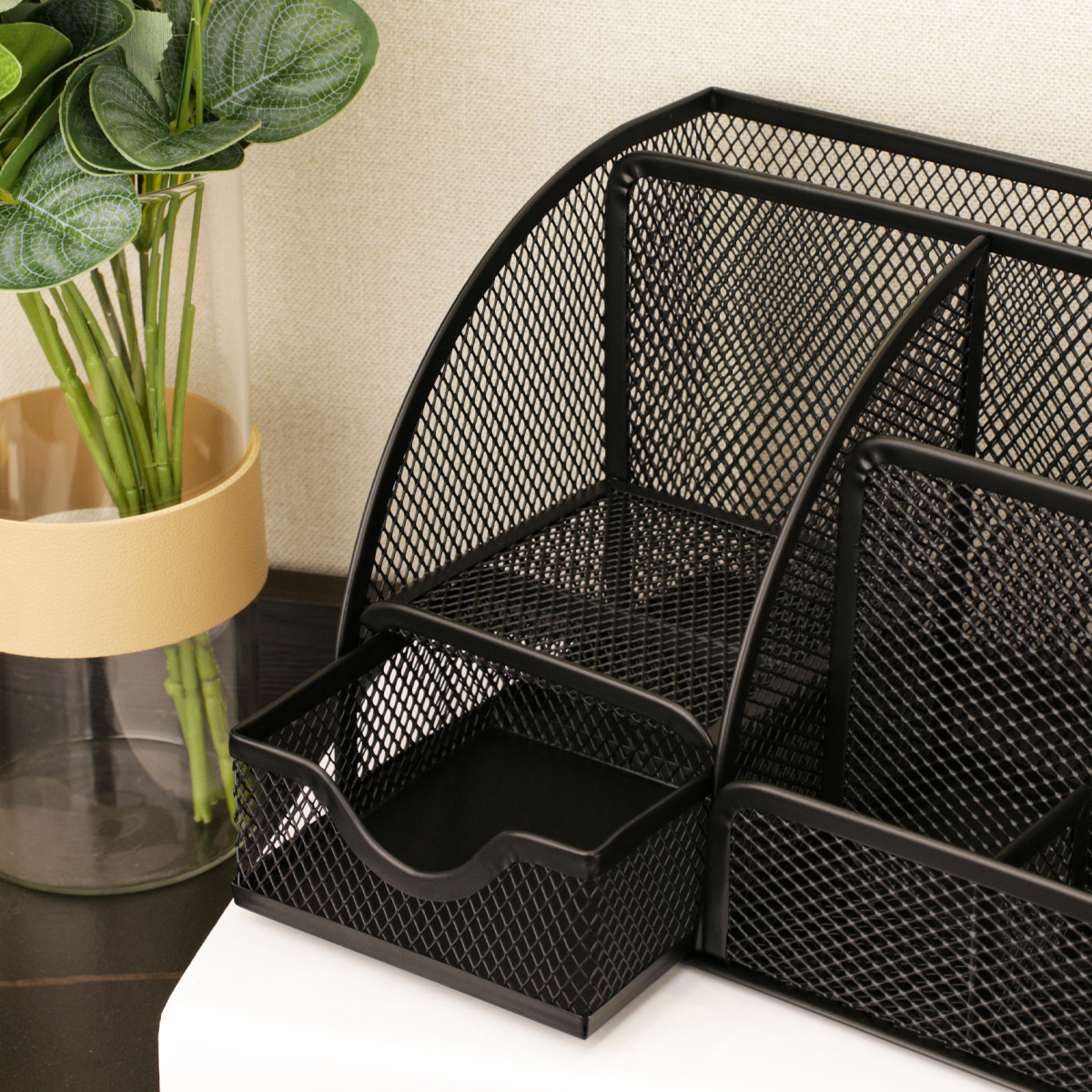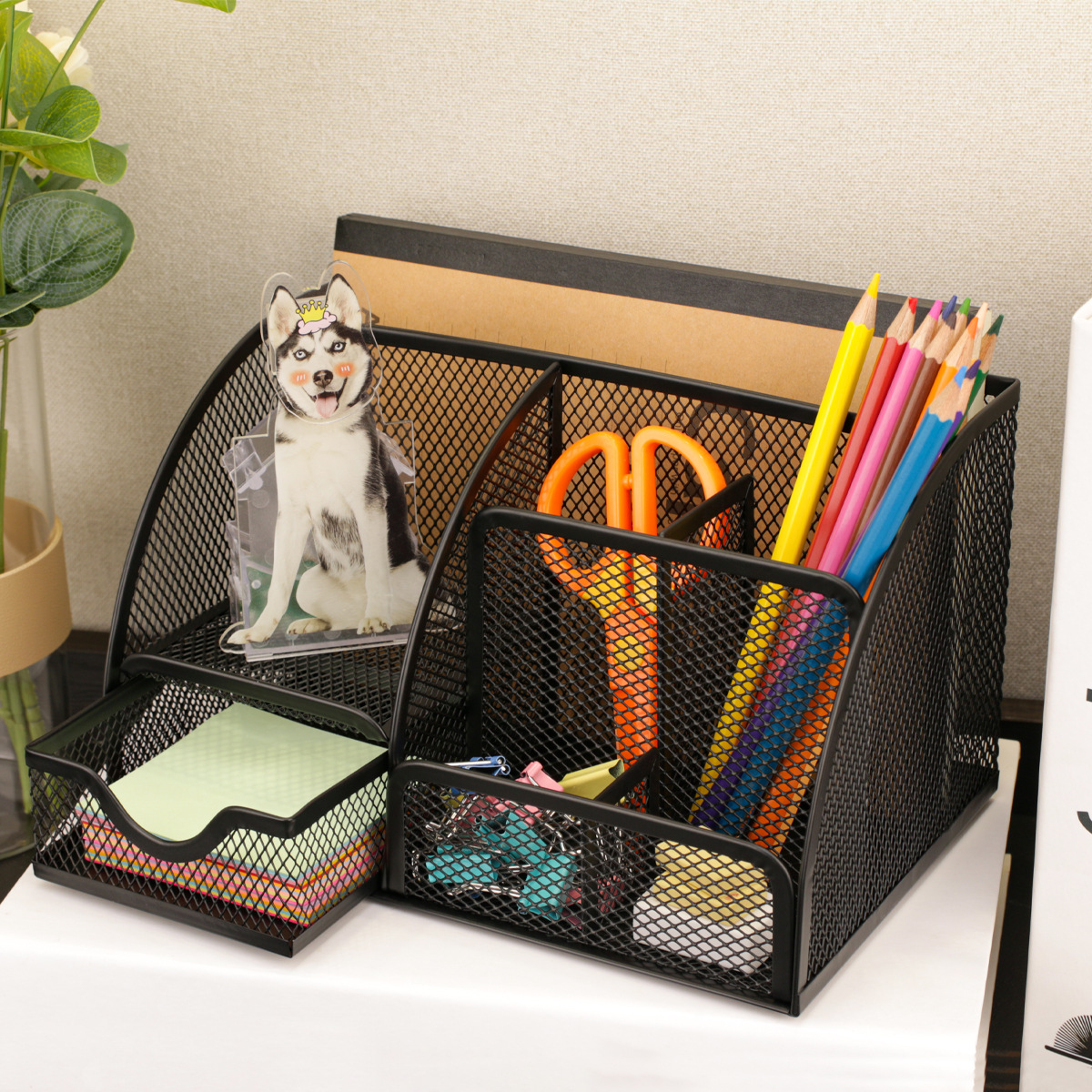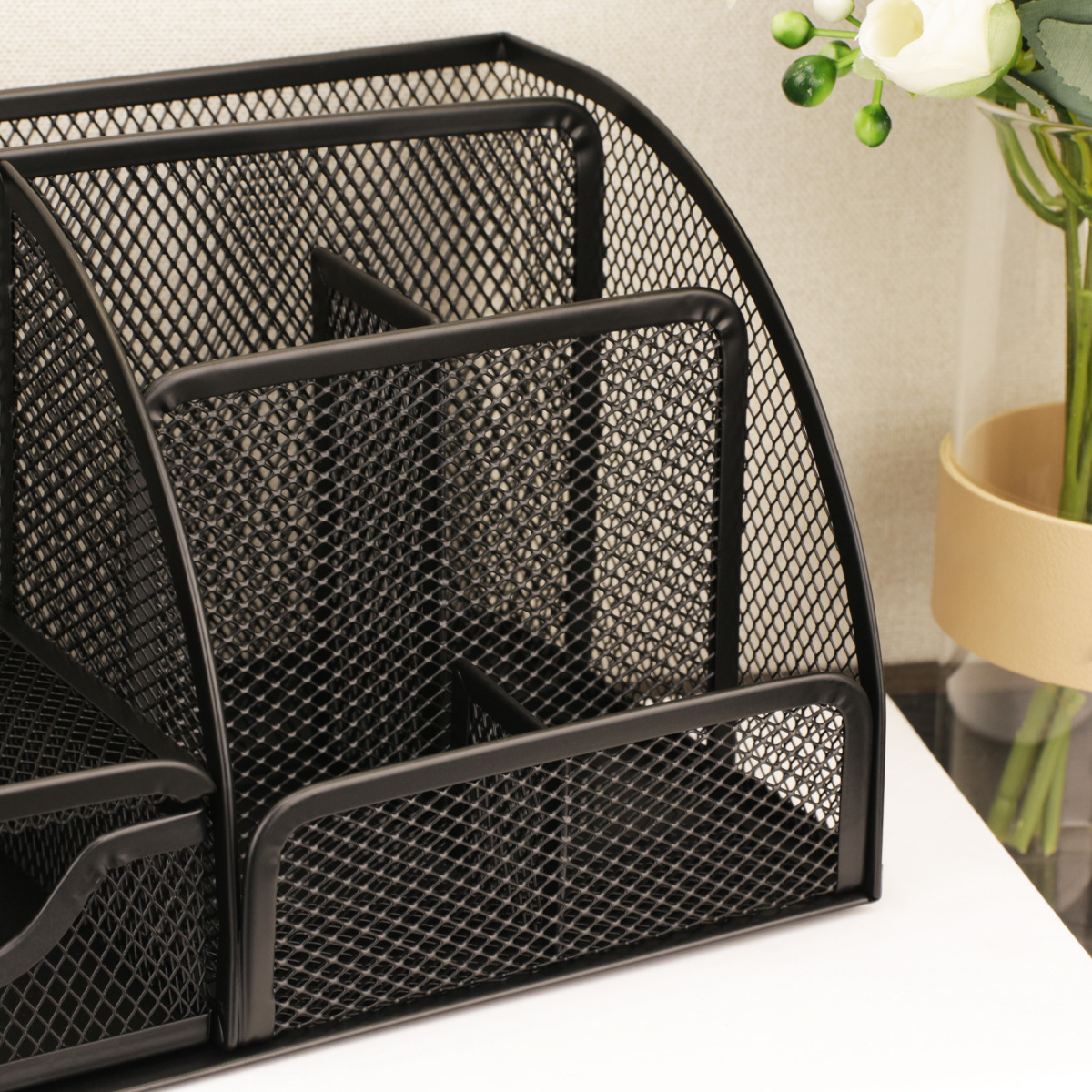 黑色金属创意网格笔筒多功能7格抽屉式分格收纳整理器桌面文具收