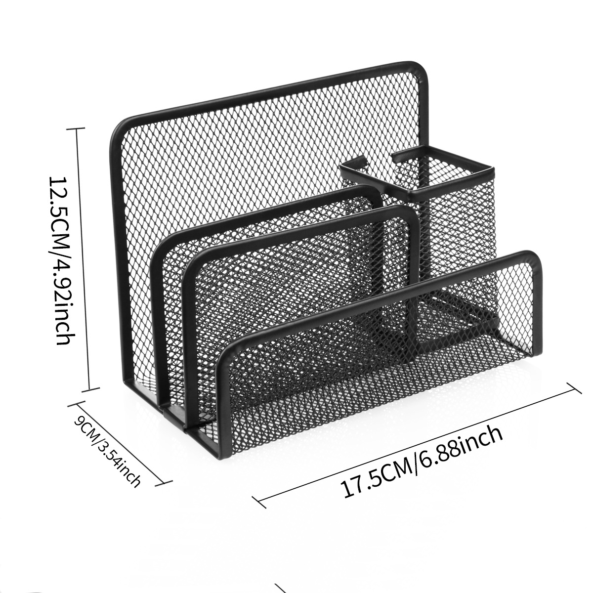 黑色金属网格书信格简约多功能分格收纳整理器创意桌面笔筒